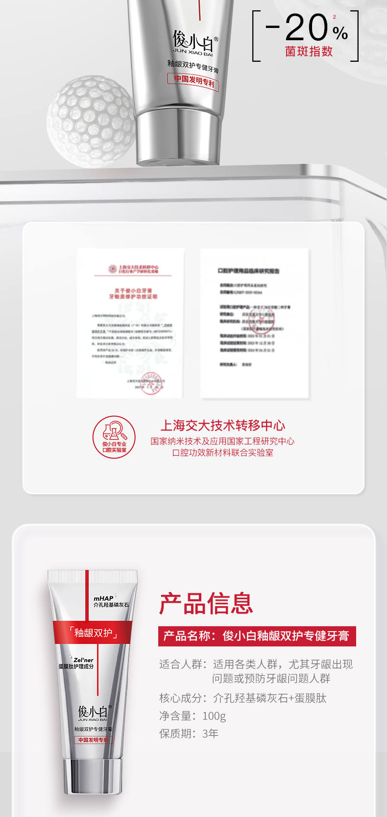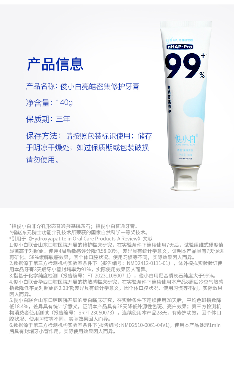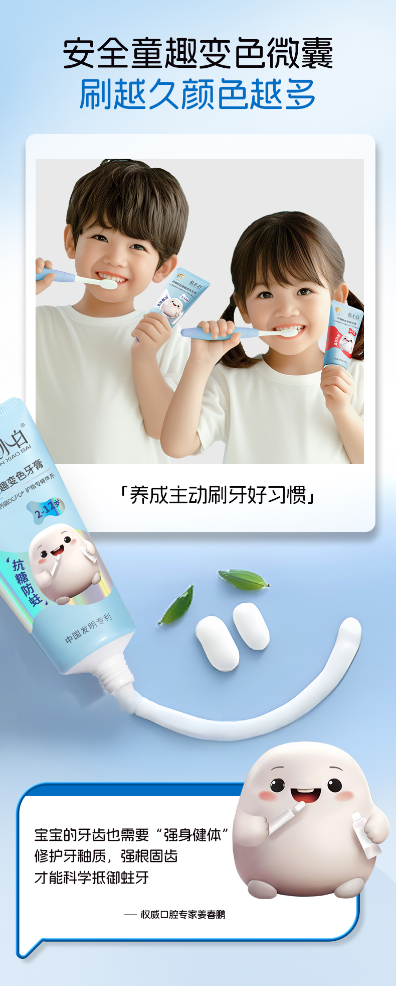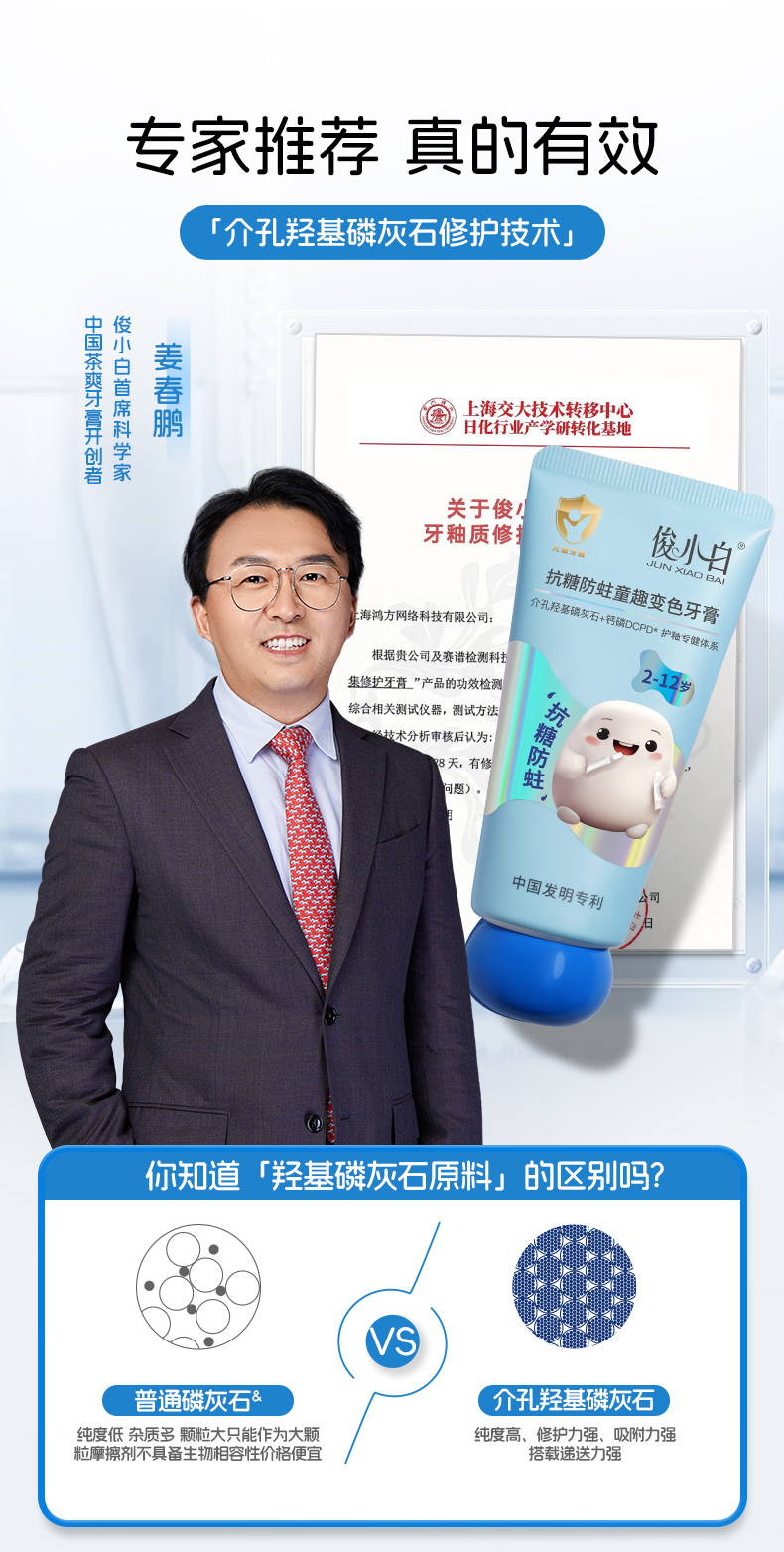 俊小白密集修护牙膏/釉龈双护专健牙膏/儿童抗糖防蛀童趣牙膏 (2-12岁换牙期)