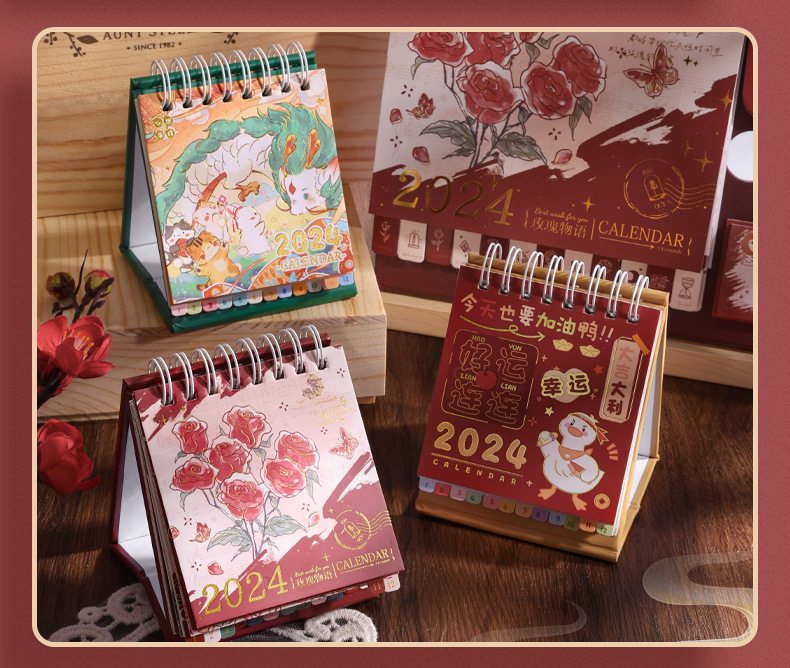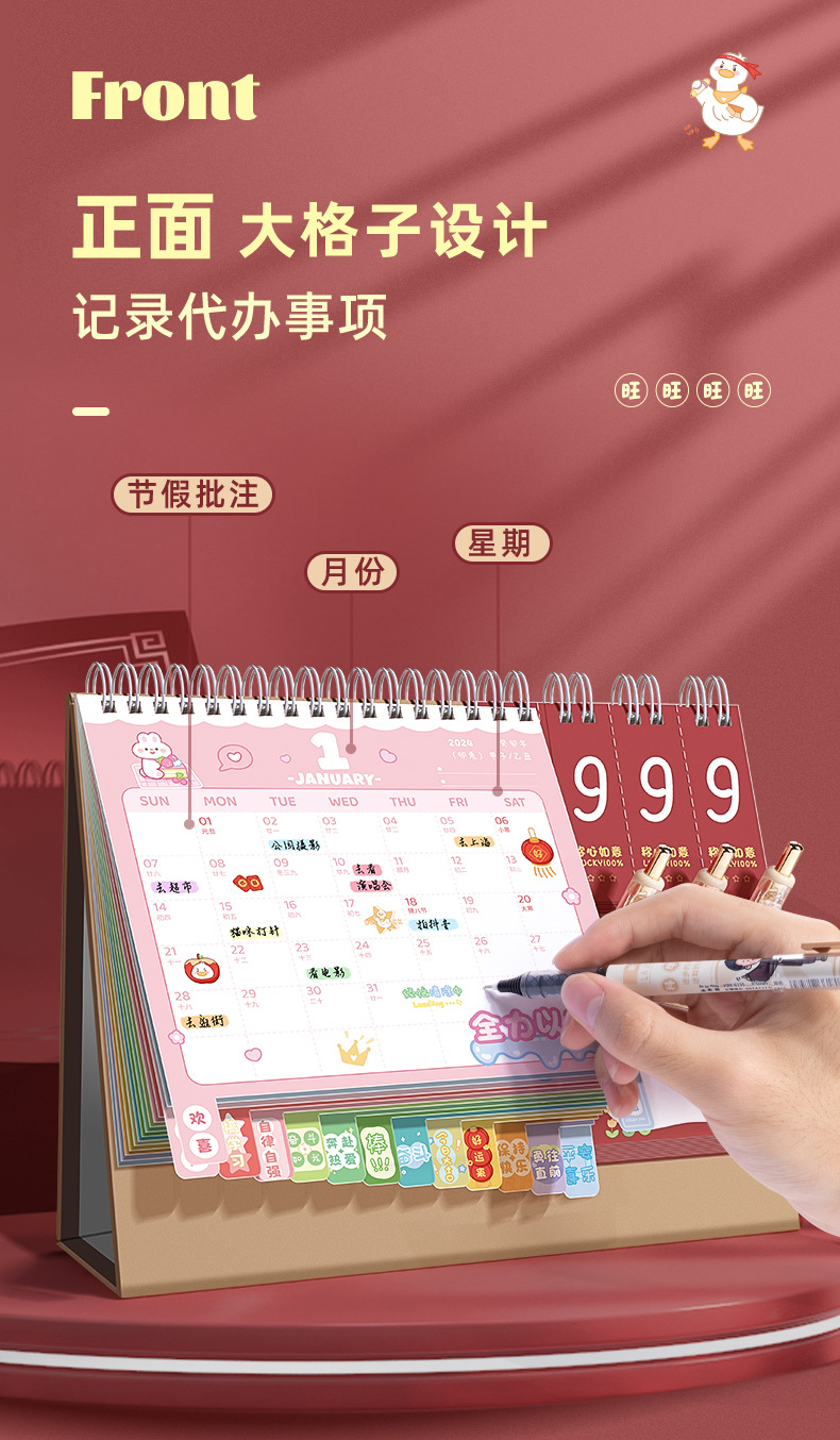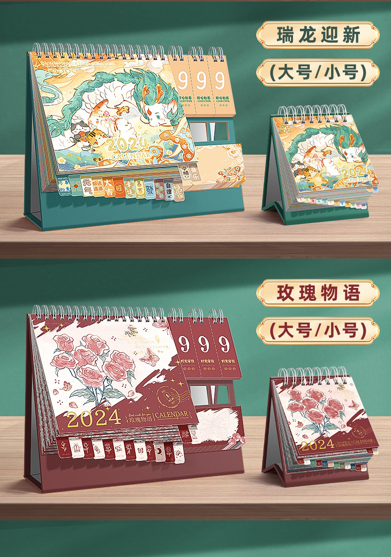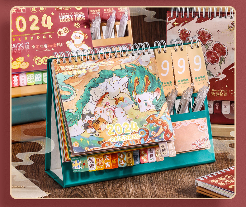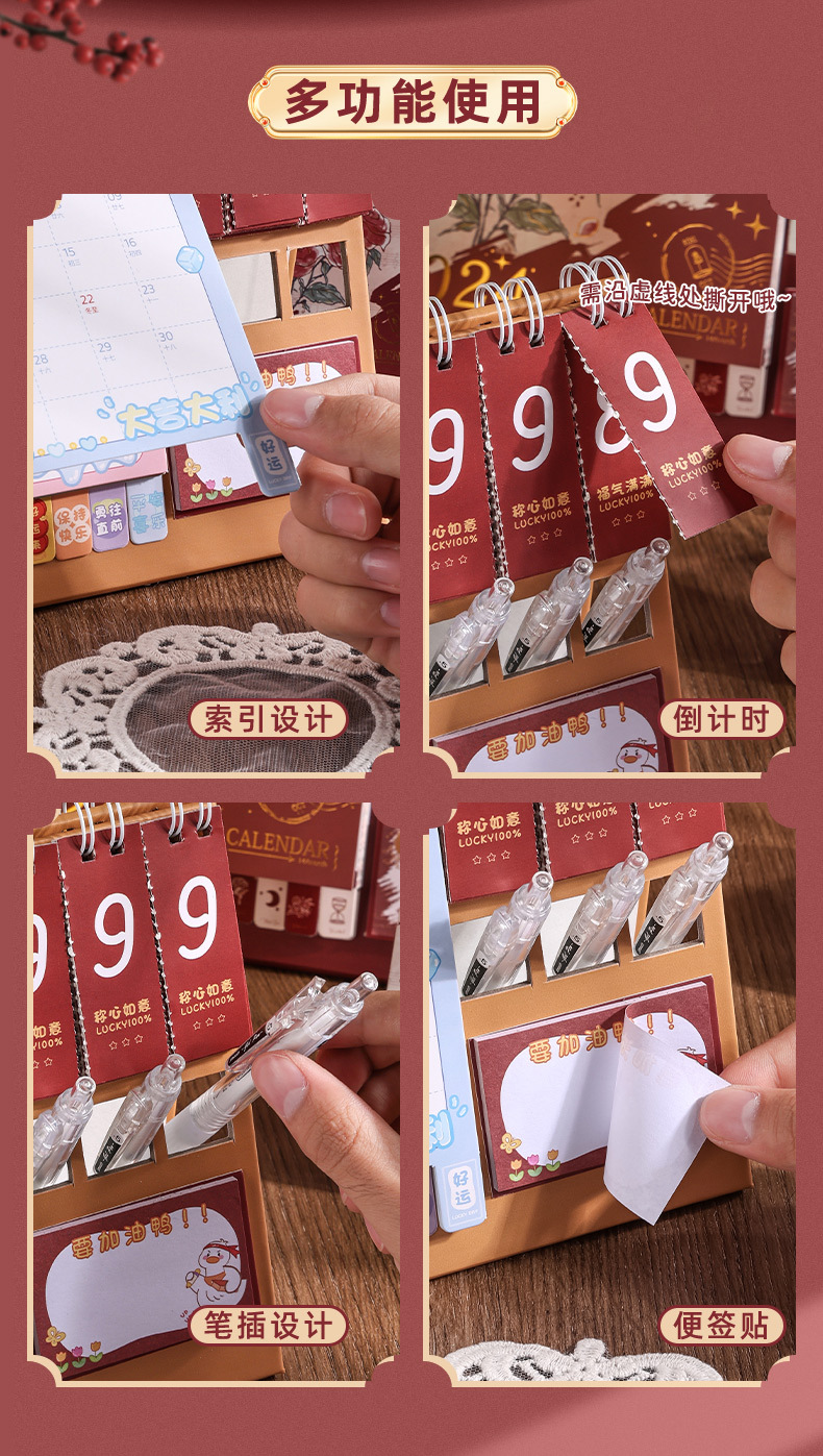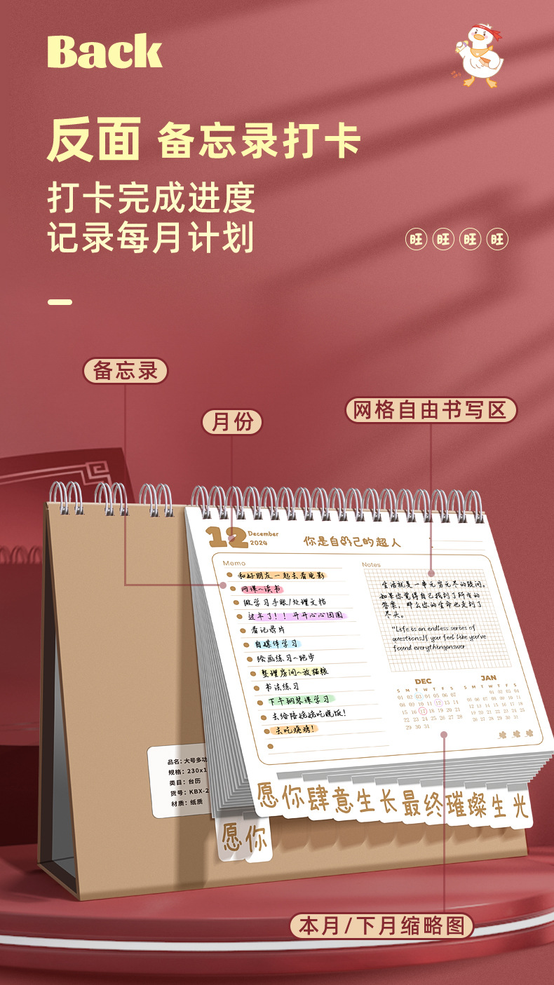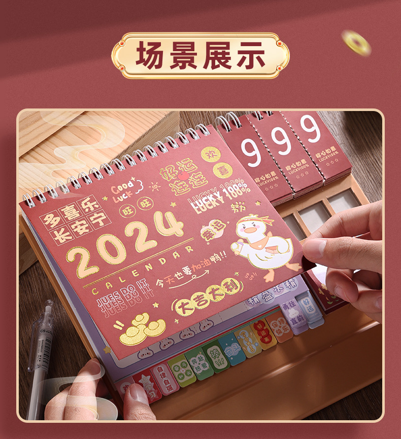 「多功能台历!9.9元包邮」2024年日历新款台历桌面月历计划本工作打卡创意家居饰品自律龙年提示牌