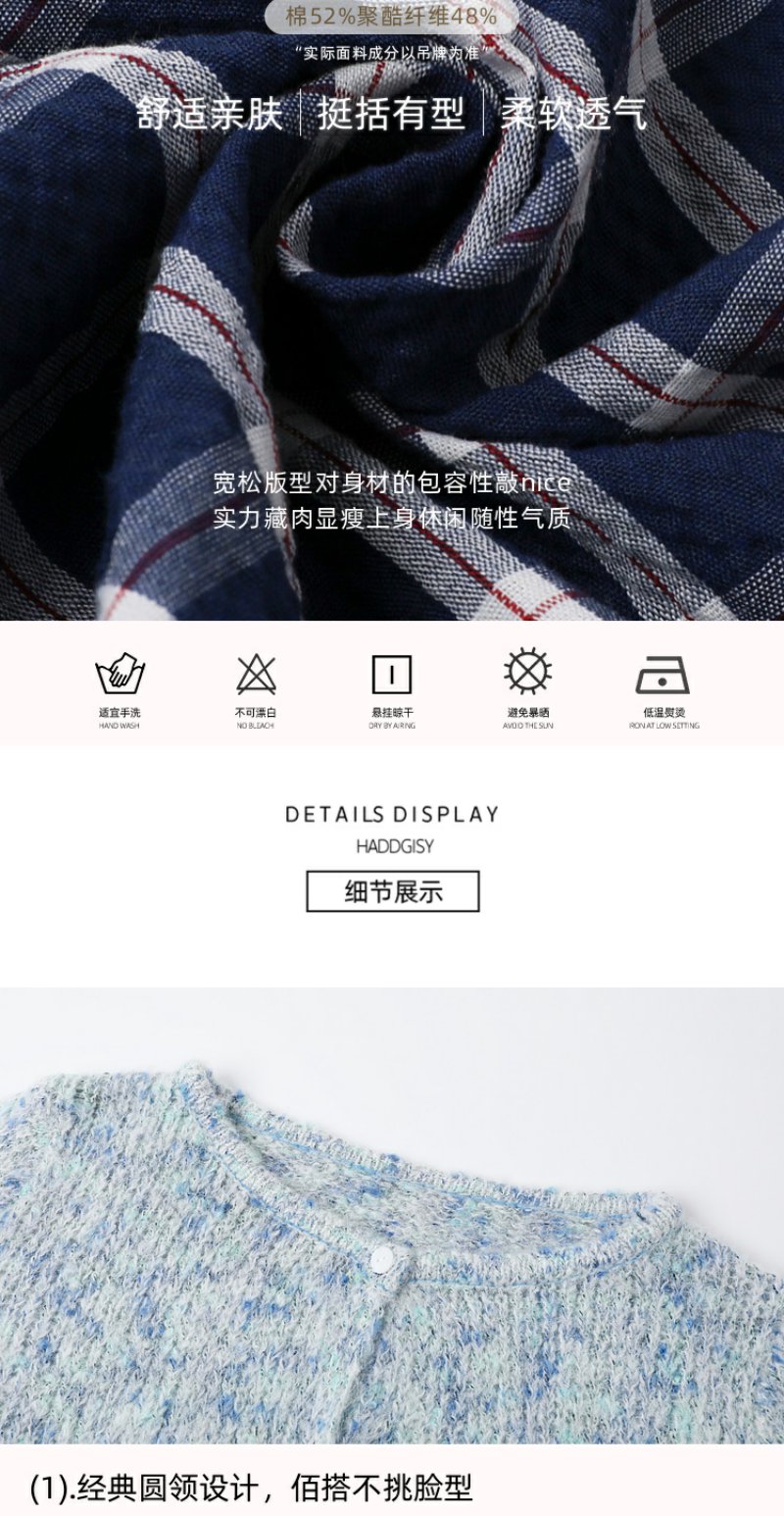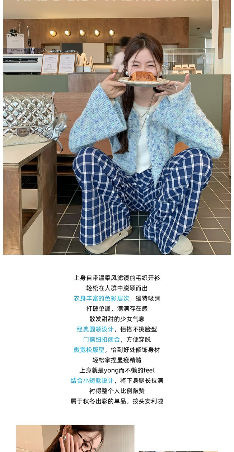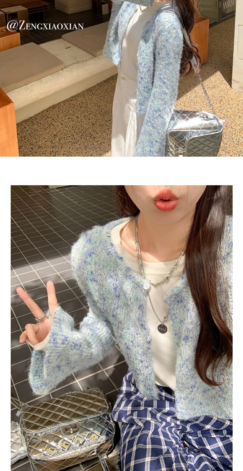 <曾小咸推荐> 甜美百搭蓝色短款毛织开衫