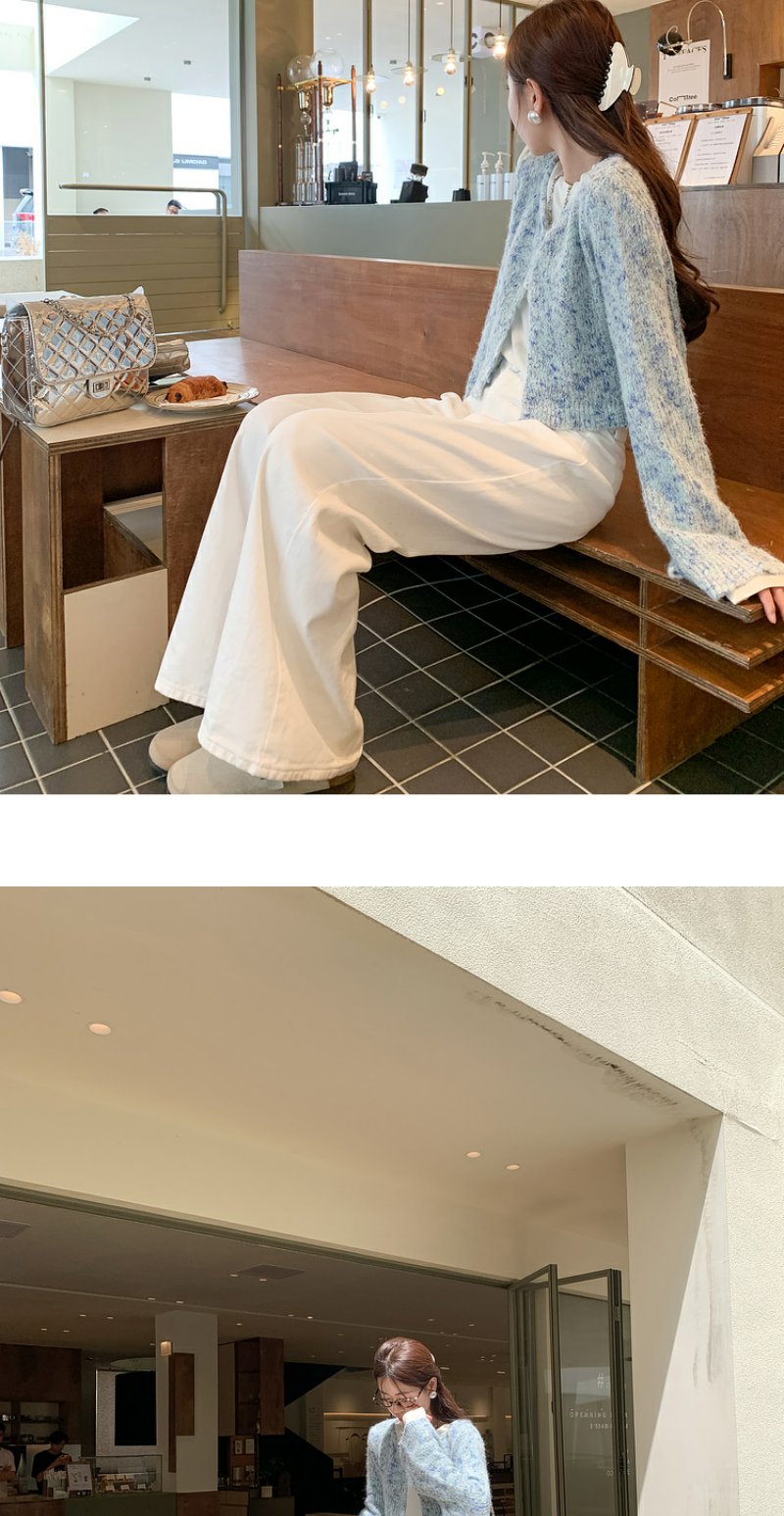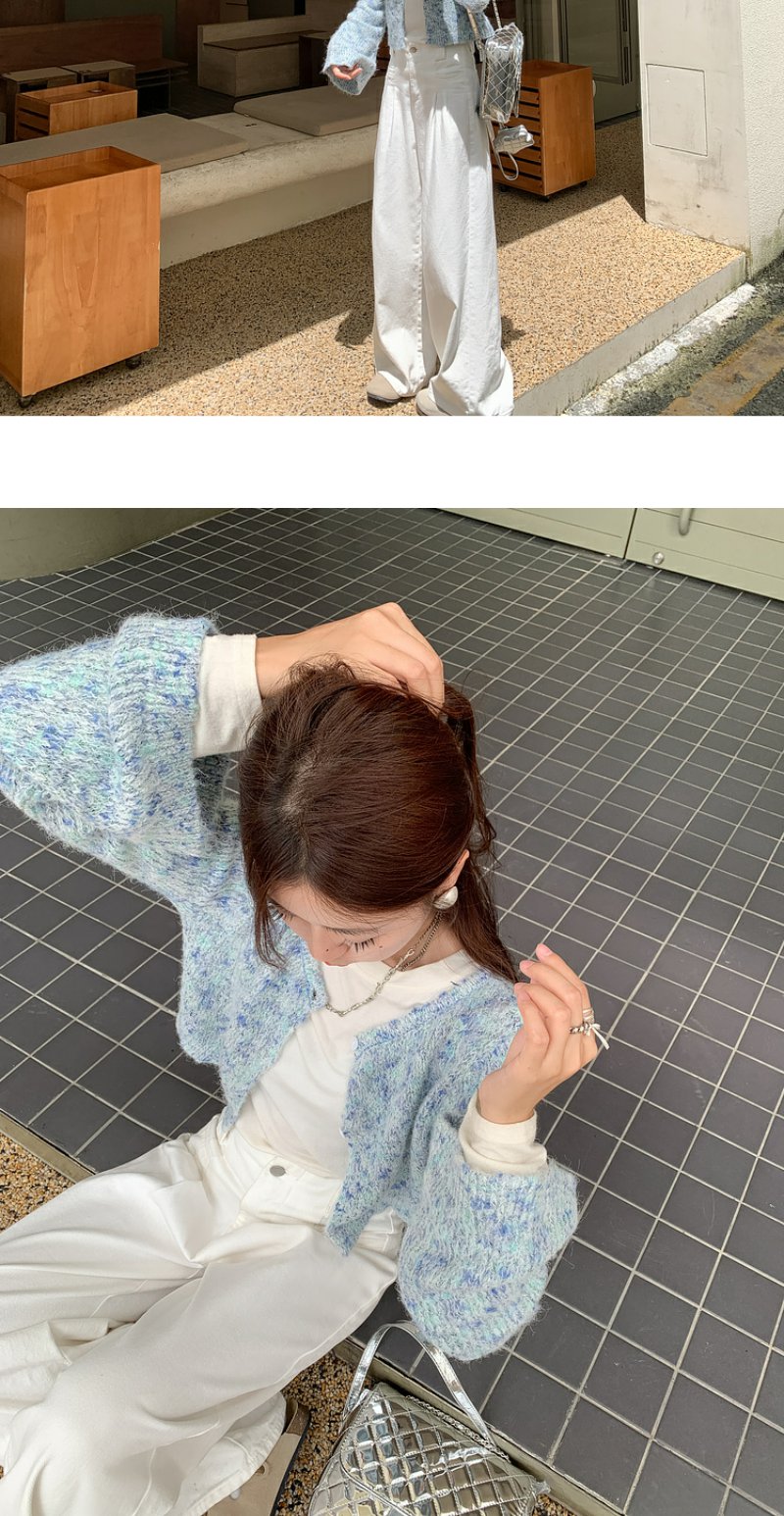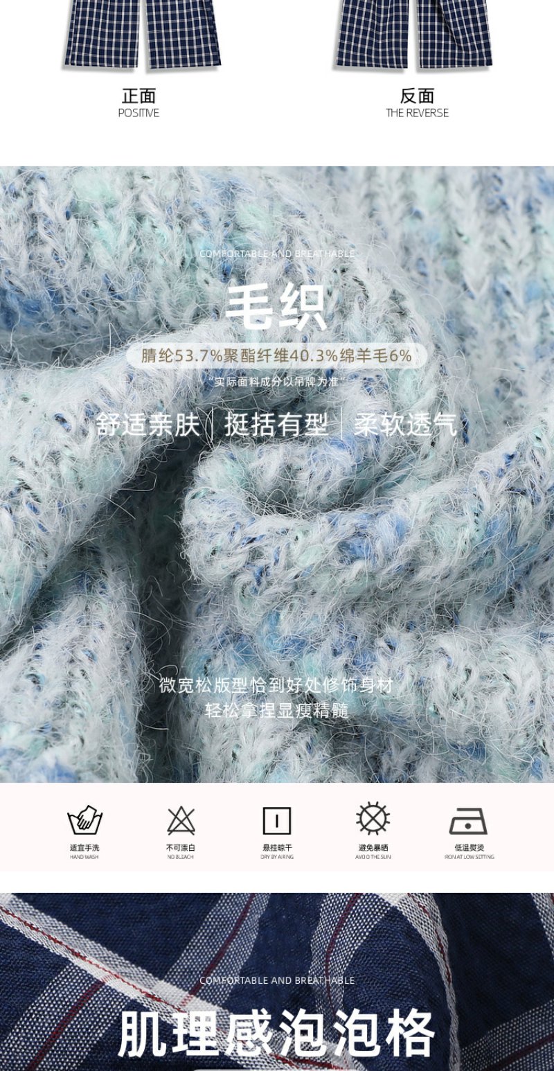 <曾小咸推荐> 甜美百搭蓝色短款毛织开衫