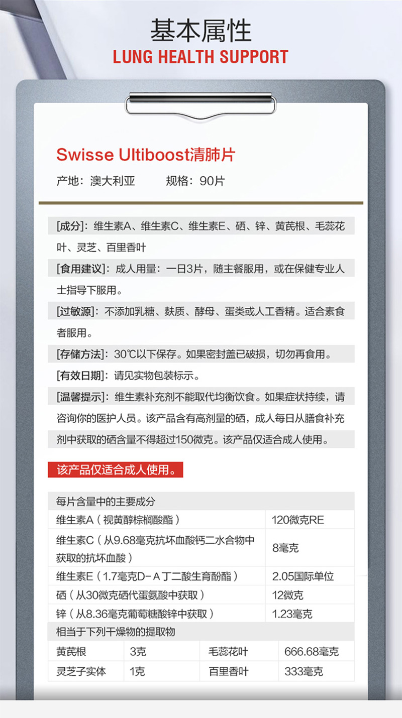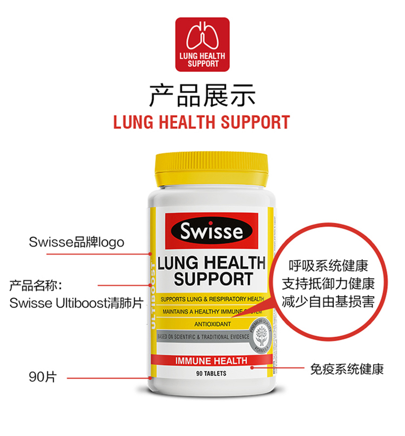 澳洲Swisse 小绿叶养肺润肺清肺片90粒