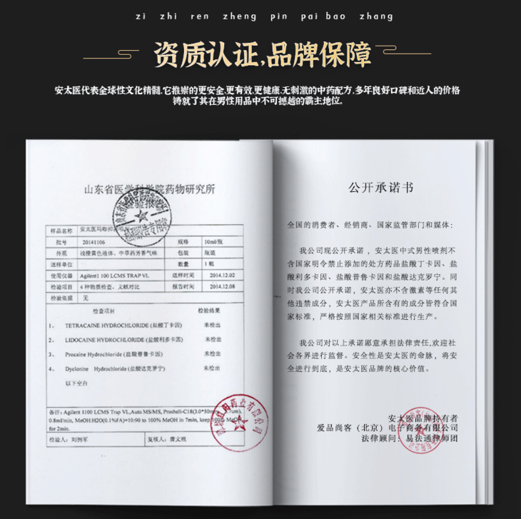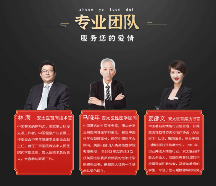 - 安太医是国内知名的中式两性健康品牌。安太医旗下产品有男用延时喷剂、延时湿巾、次抛女性快感液、玻尿酸原液润滑液、阳顶天中式男士养护膏、润滑液系列等,纯中药成分提取,不含麻醉剂,不伤小DD,无酒精无刺激!