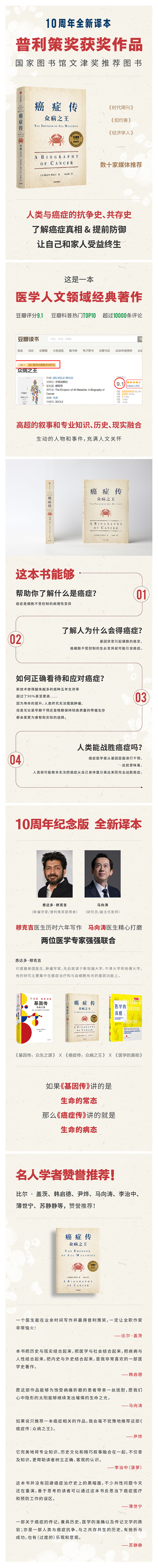 穆克吉医生历时六年写作,《基因传》译者马向涛医生多年翻译打磨,两位医学专家强强联合。