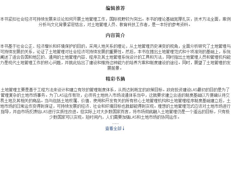 《土地管理与可持续发展》([澳]伊恩·威廉森,斯蒂格·埃尼马克,[澳]祖德·华莱士,阿巴斯·拉贾比法尔德)