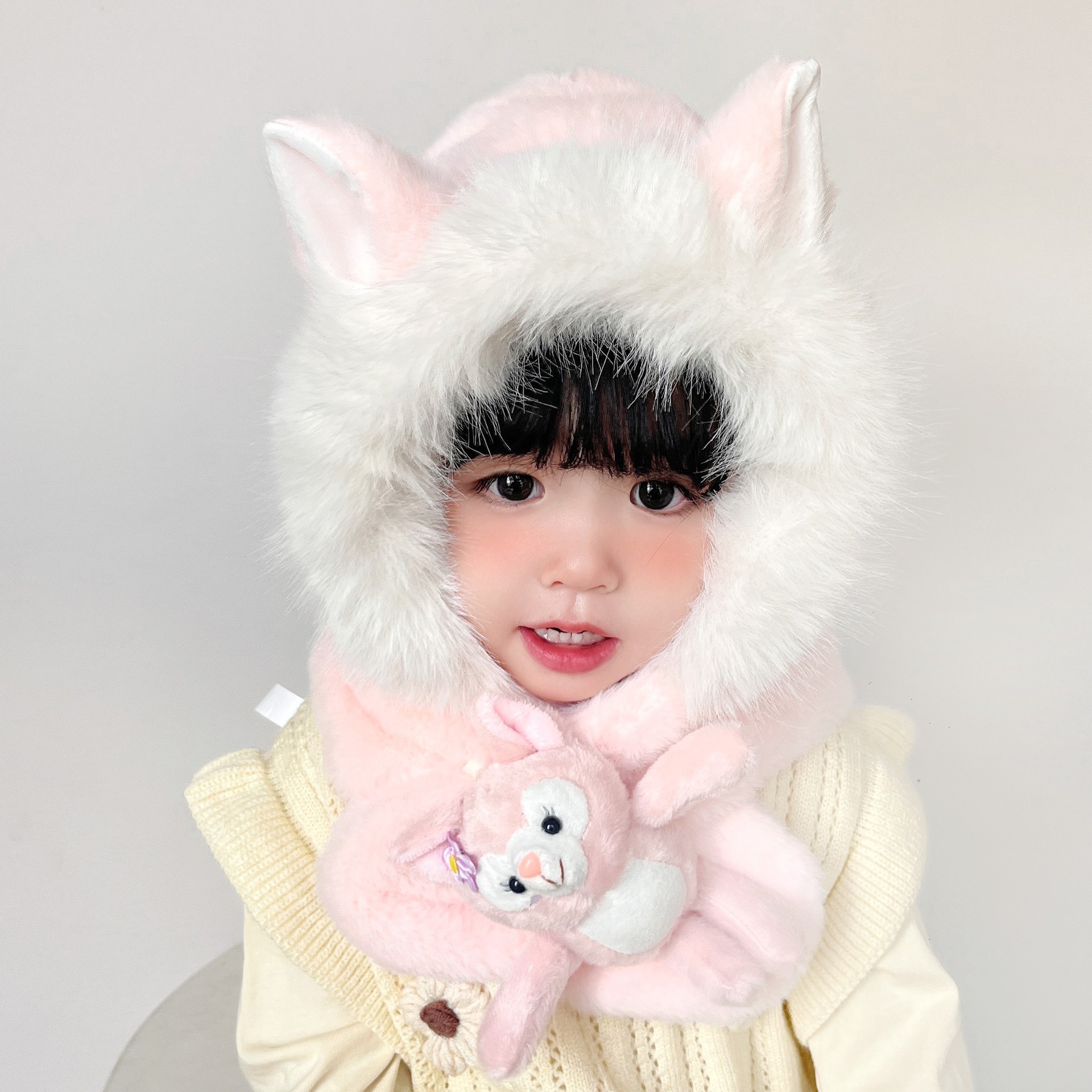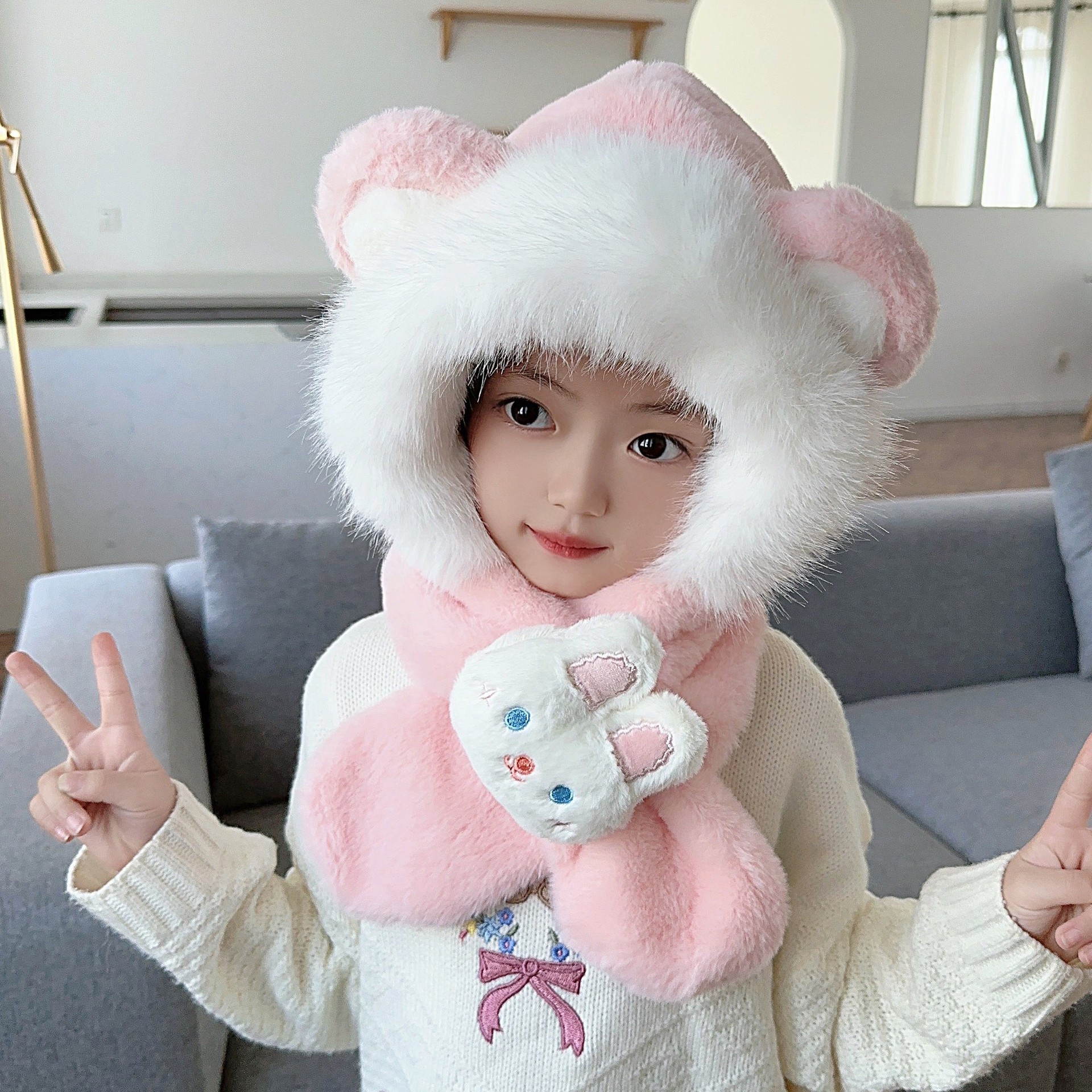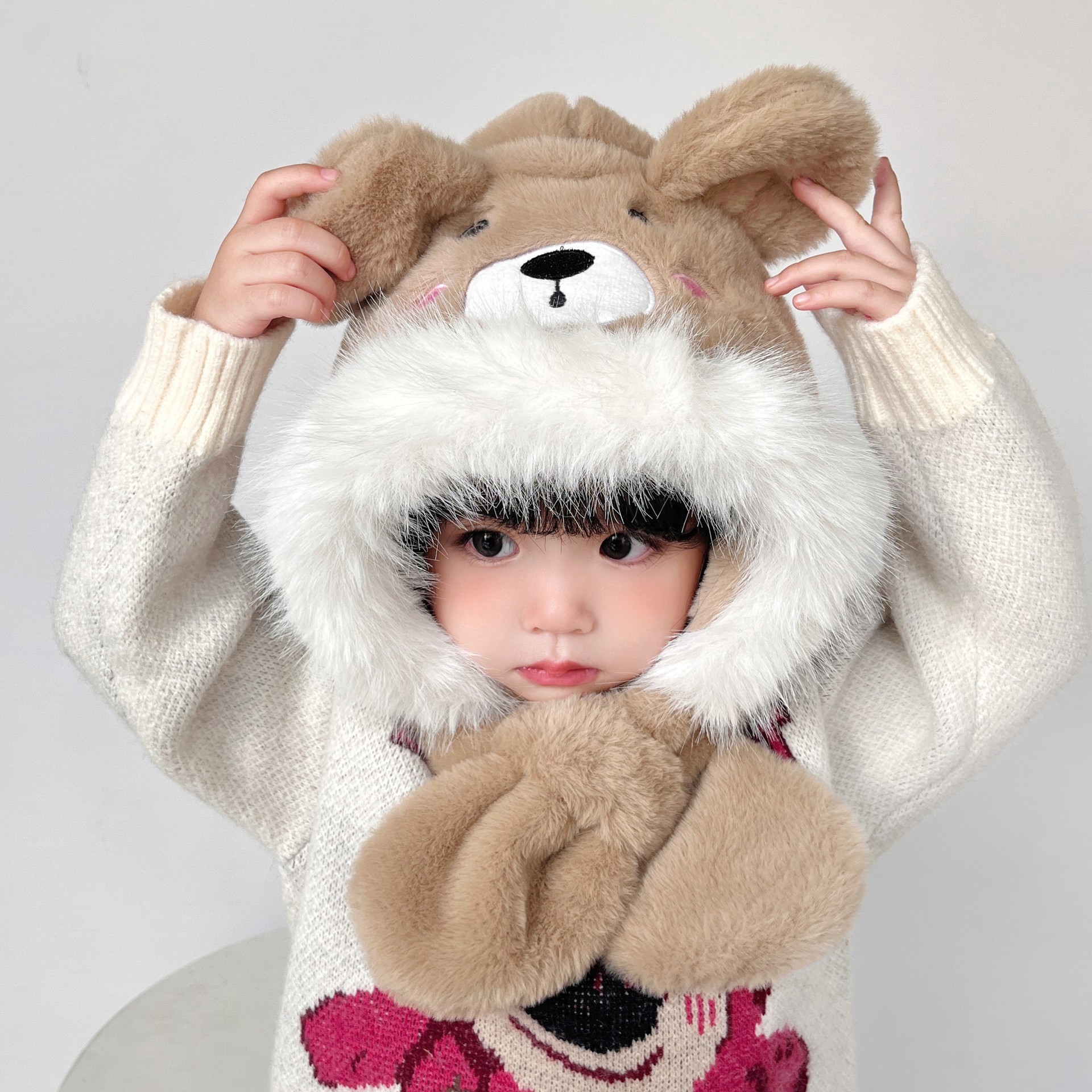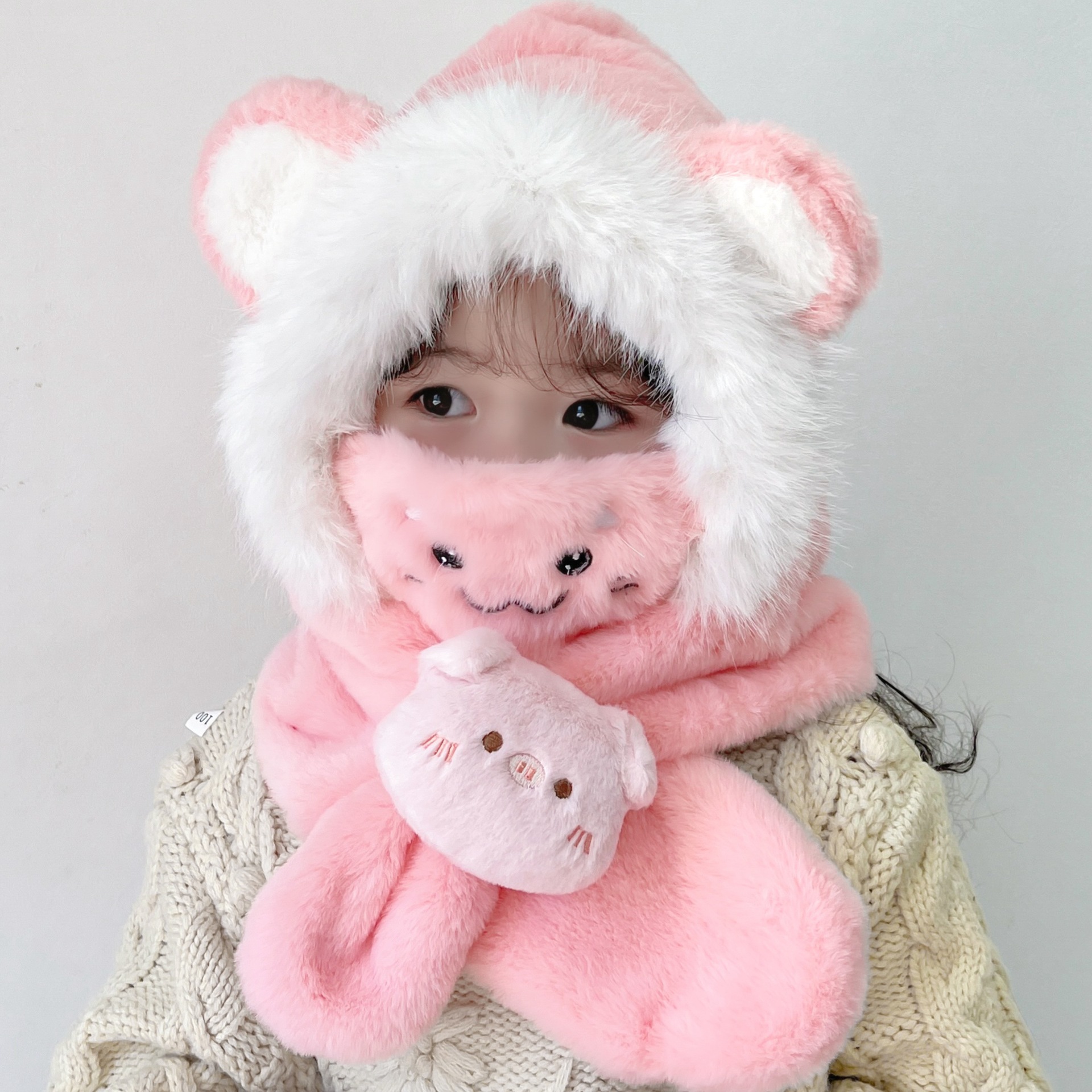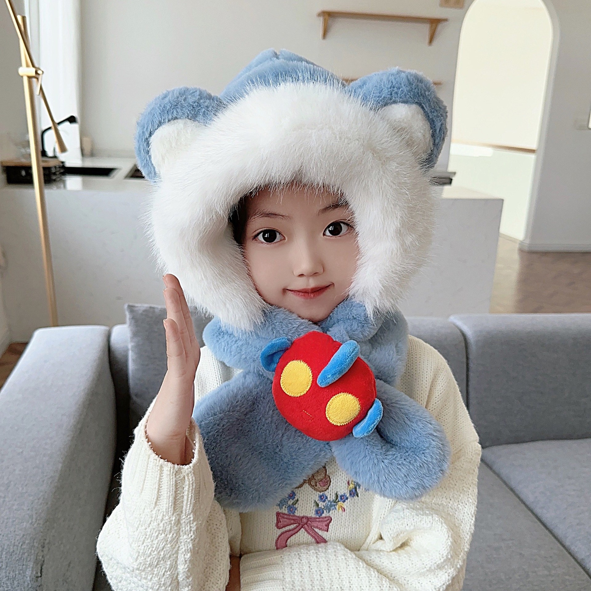 【儿童帽子围巾一体围脖,防风保暖,加绒护耳】1-10岁儿童帽子围巾一体围脖 秋冬季加绒宝宝护耳帽 保暖男女童毛绒帽爆款-QQ