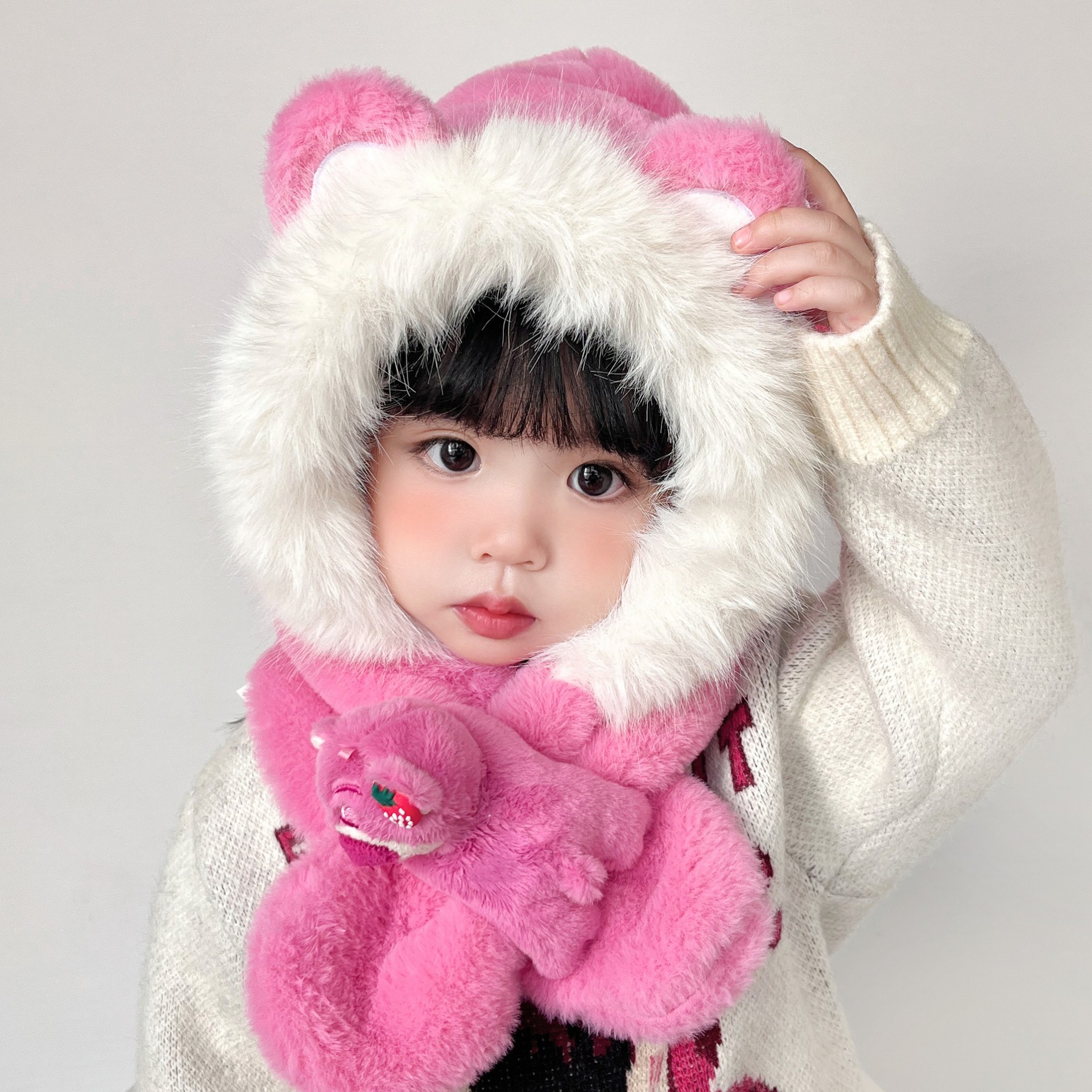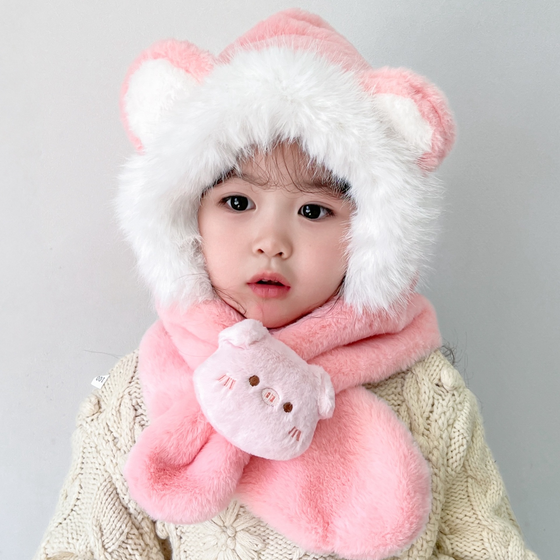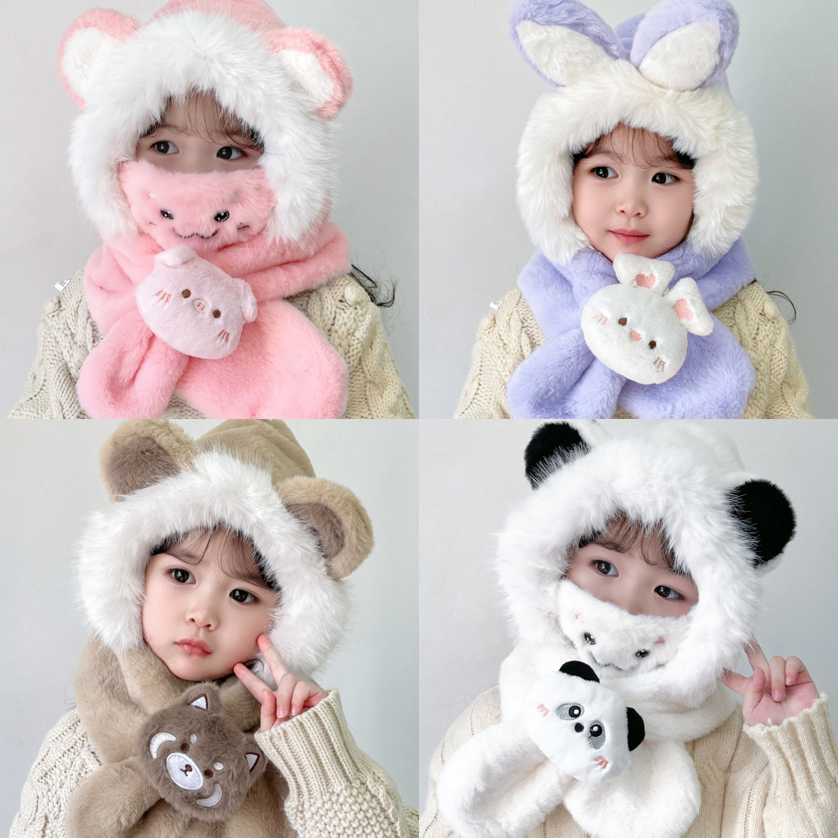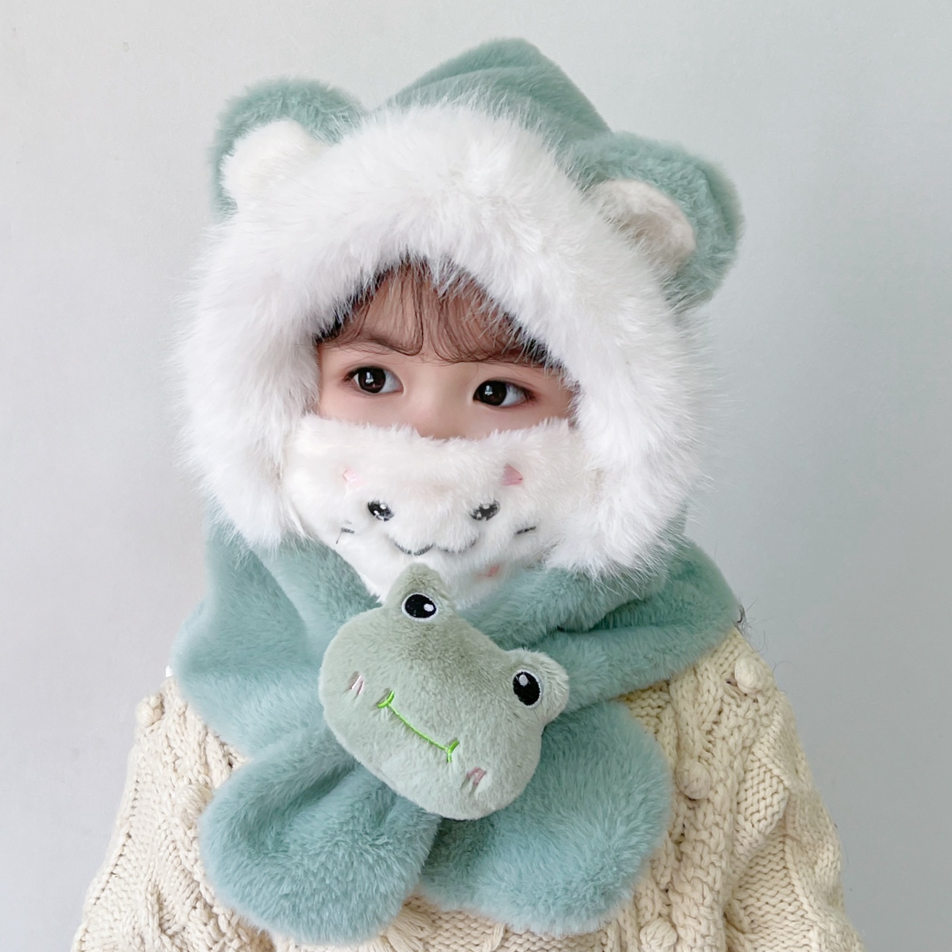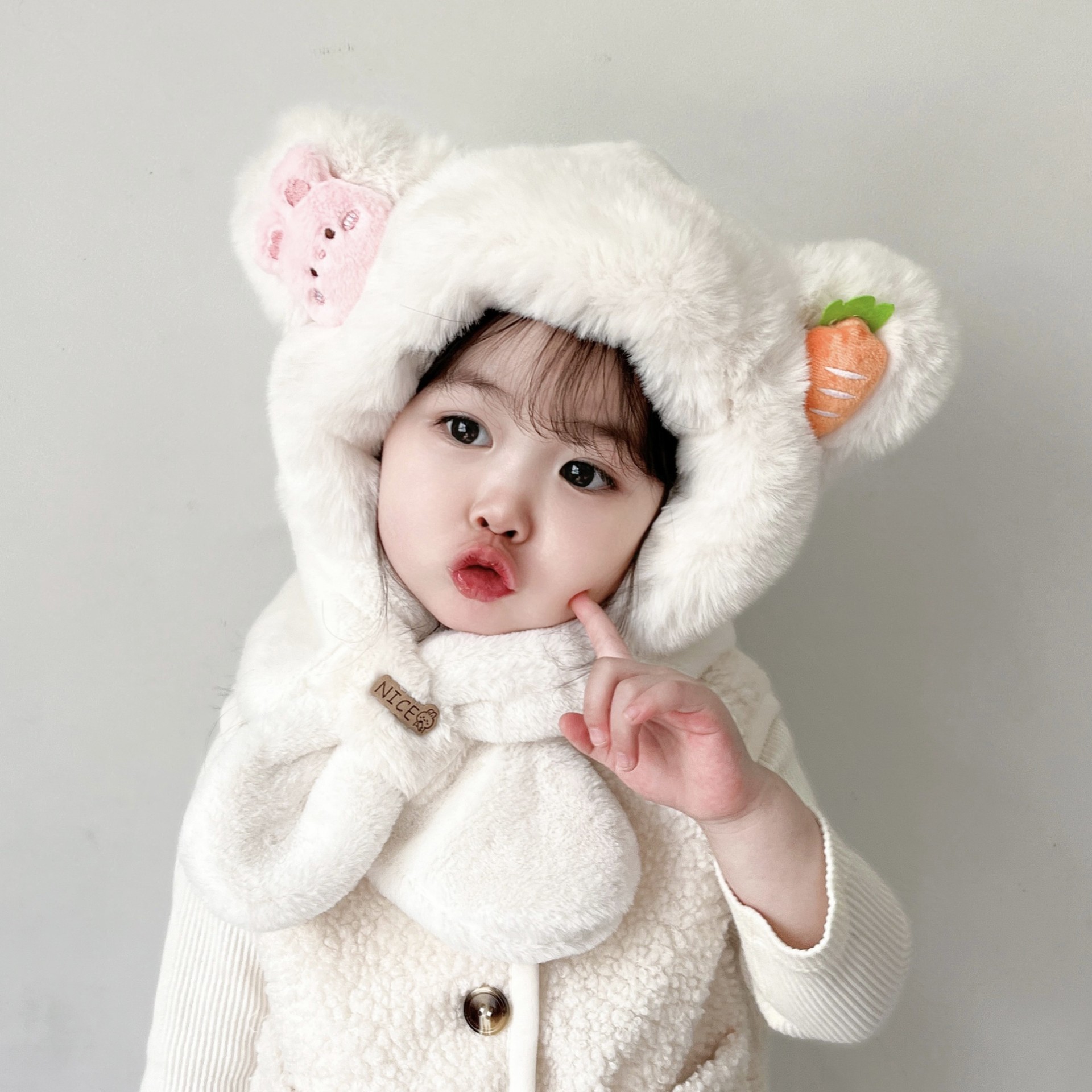 【儿童帽子围巾一体围脖,防风保暖,加绒护耳】1-10岁儿童帽子围巾一体围脖 秋冬季加绒宝宝护耳帽 保暖男女童毛绒帽爆款-QQ