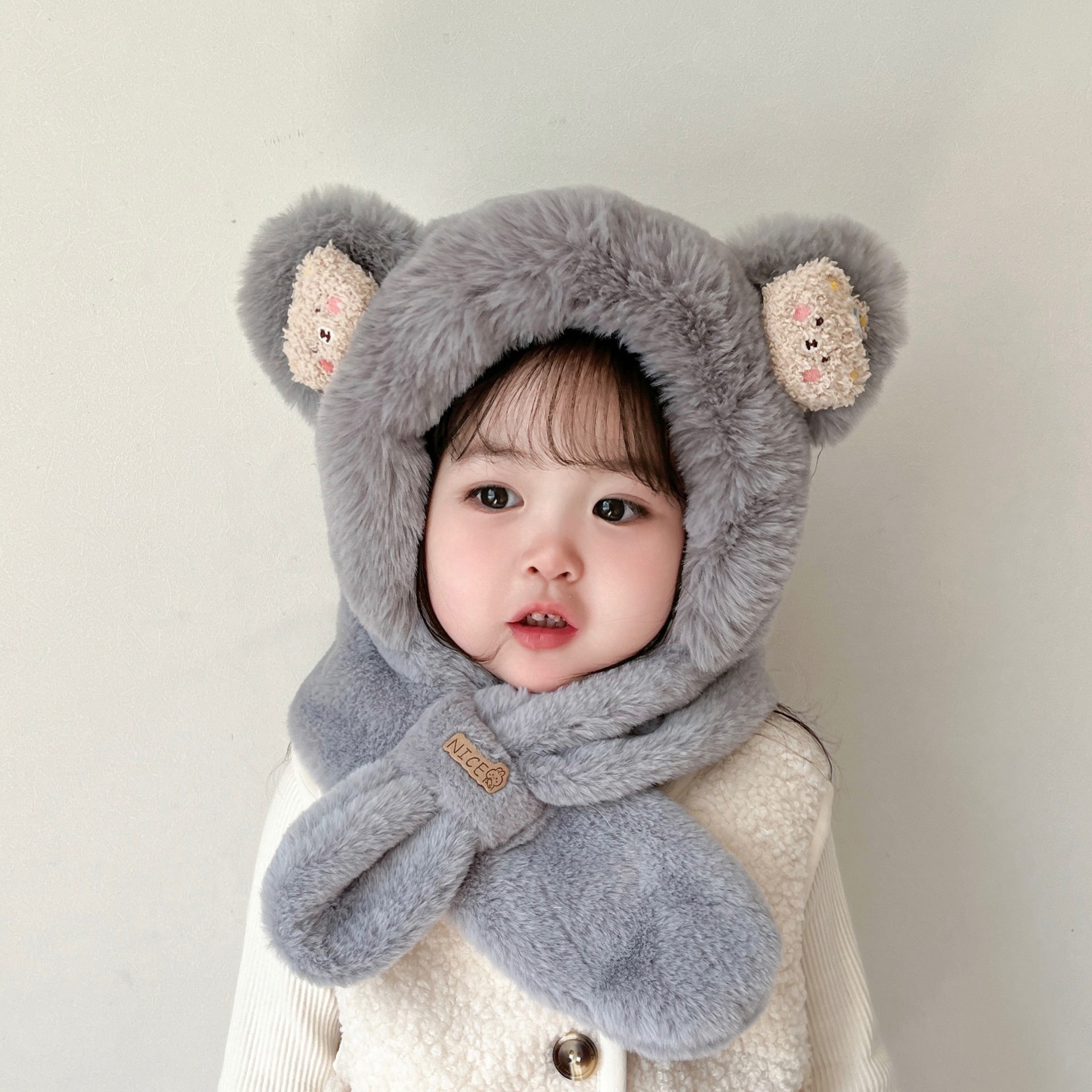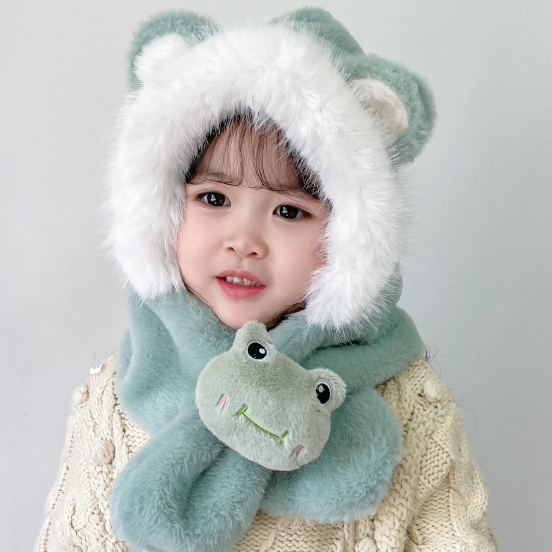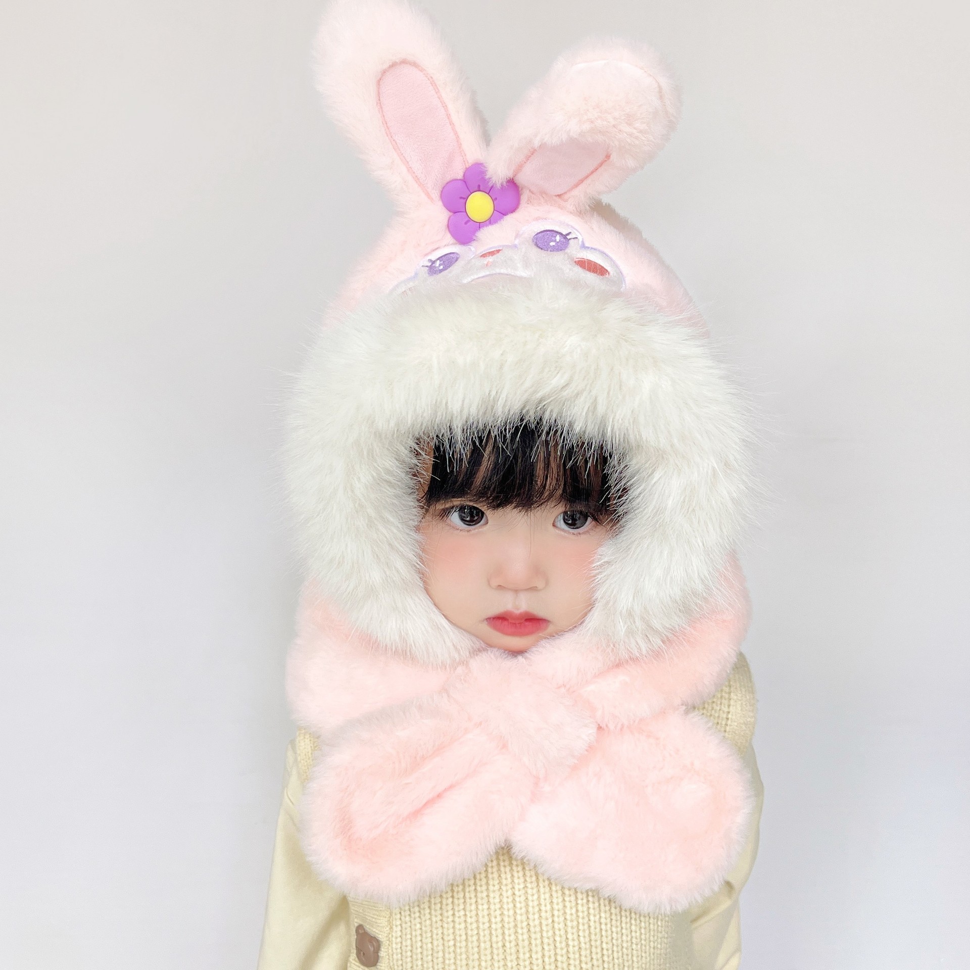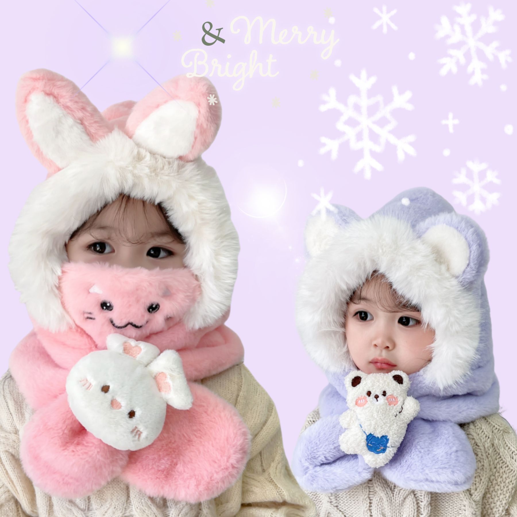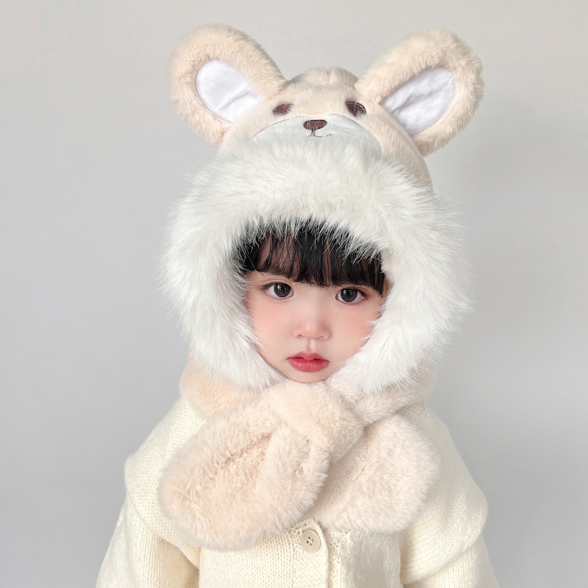 【儿童帽子围巾一体围脖,防风保暖,加绒护耳】1-10岁儿童帽子围巾一体围脖 秋冬季加绒宝宝护耳帽 保暖男女童毛绒帽爆款-QQ