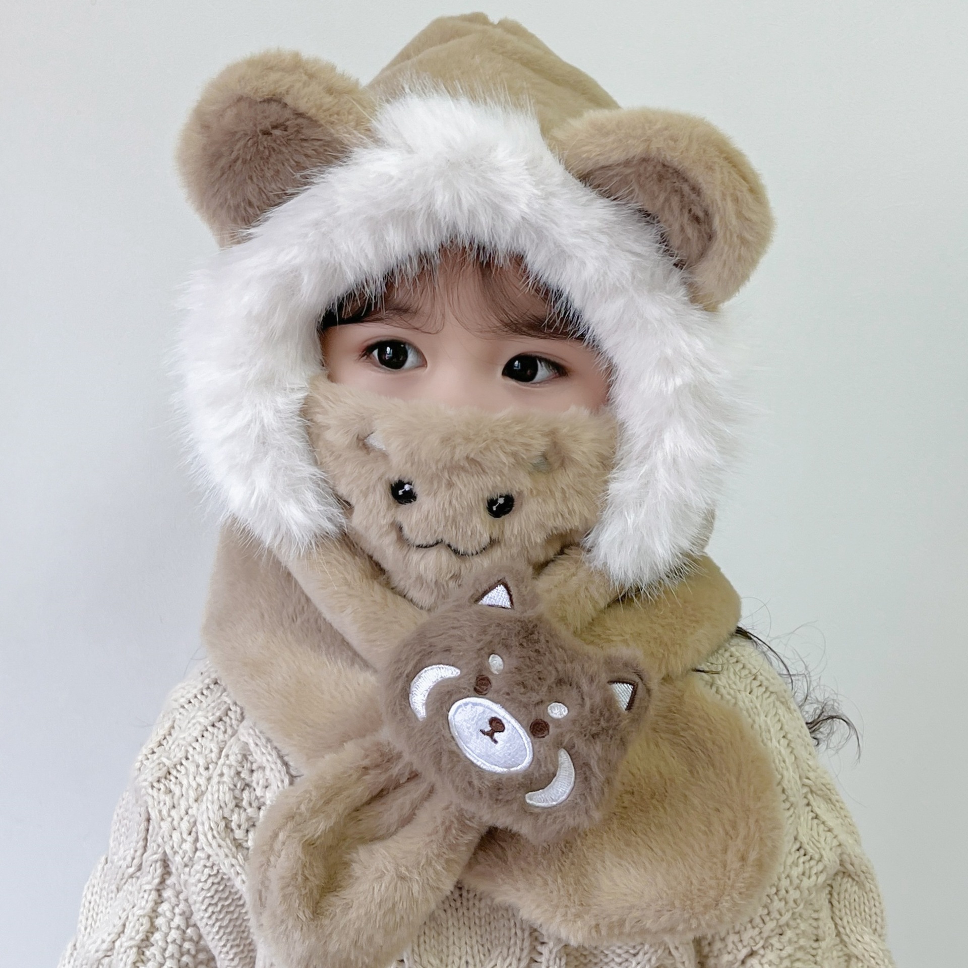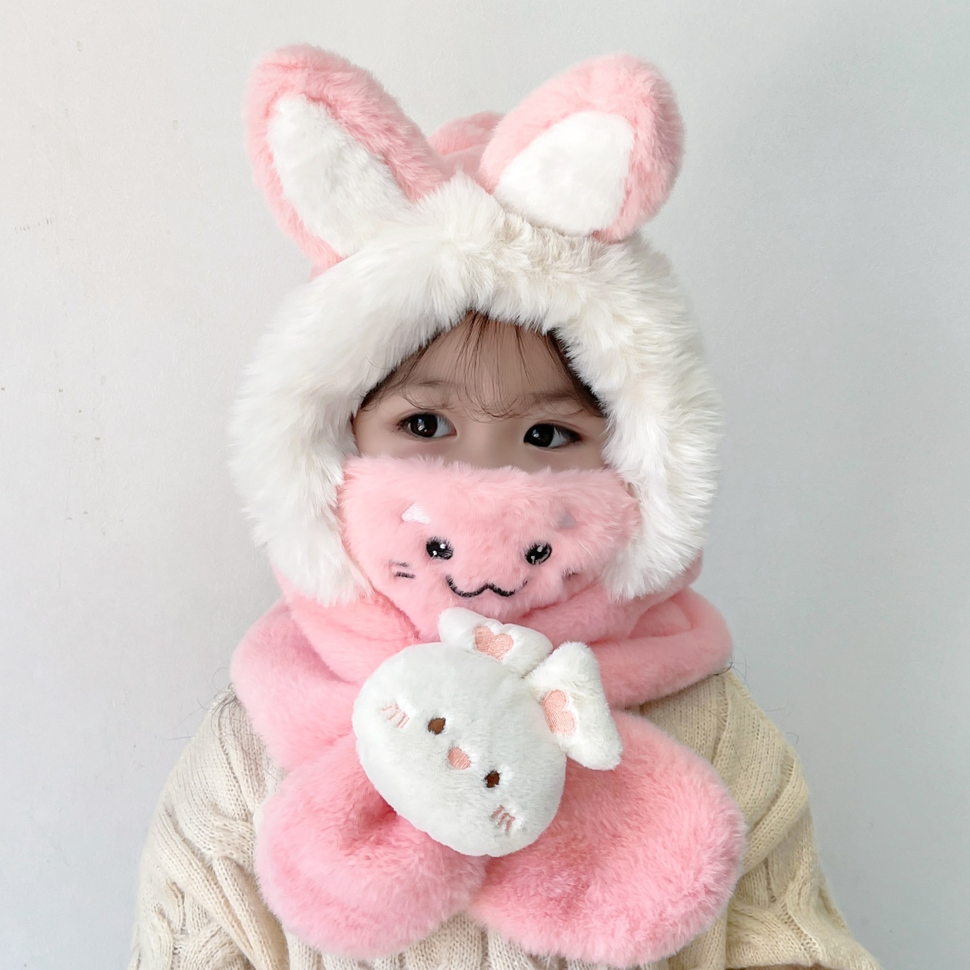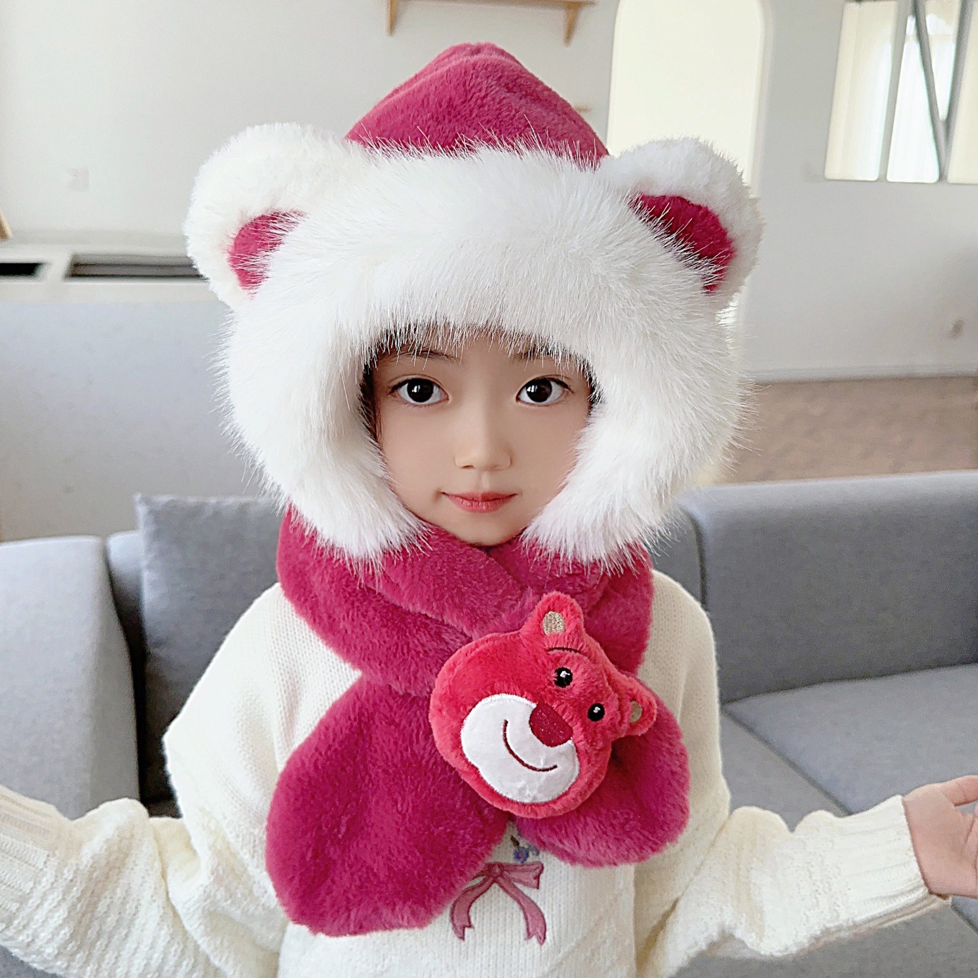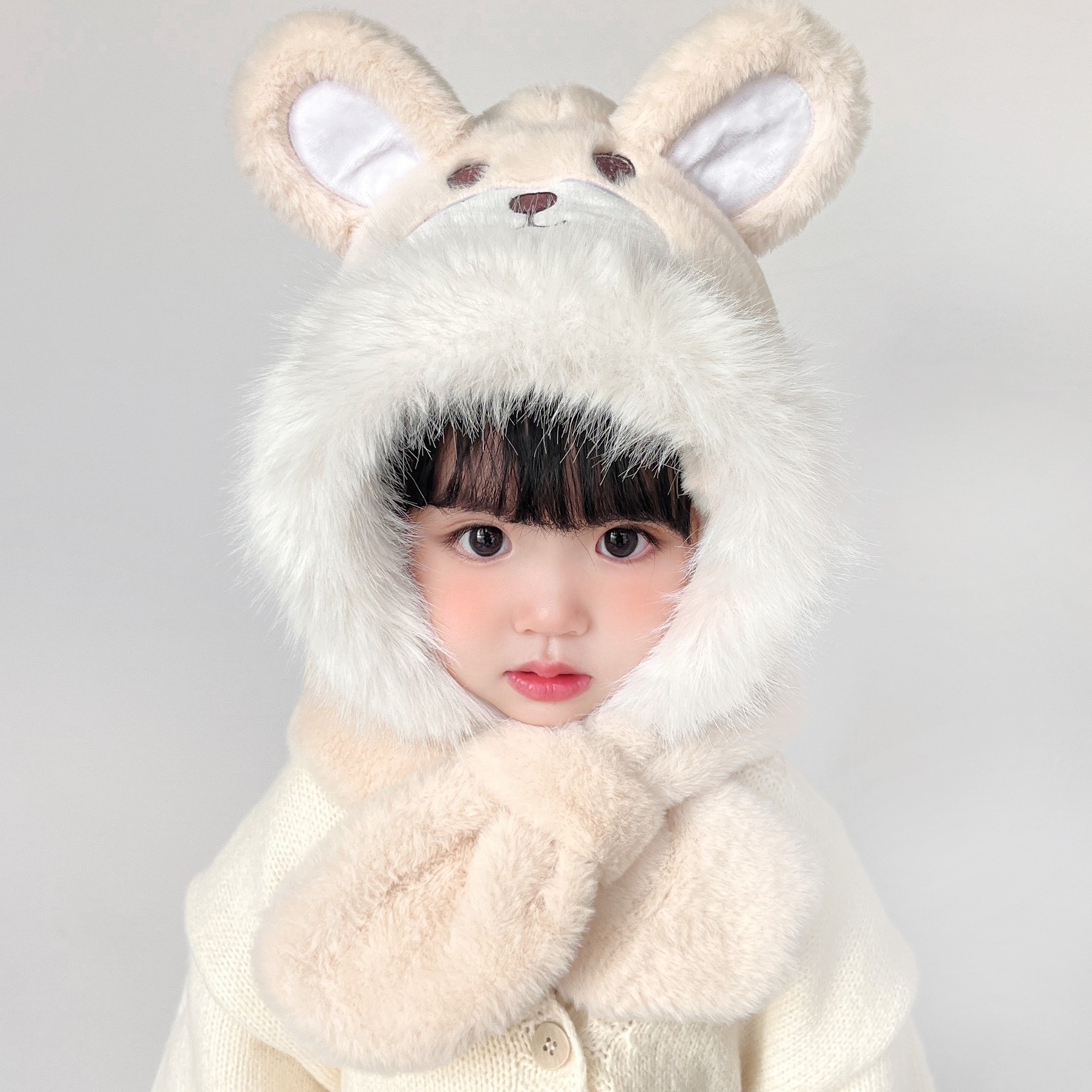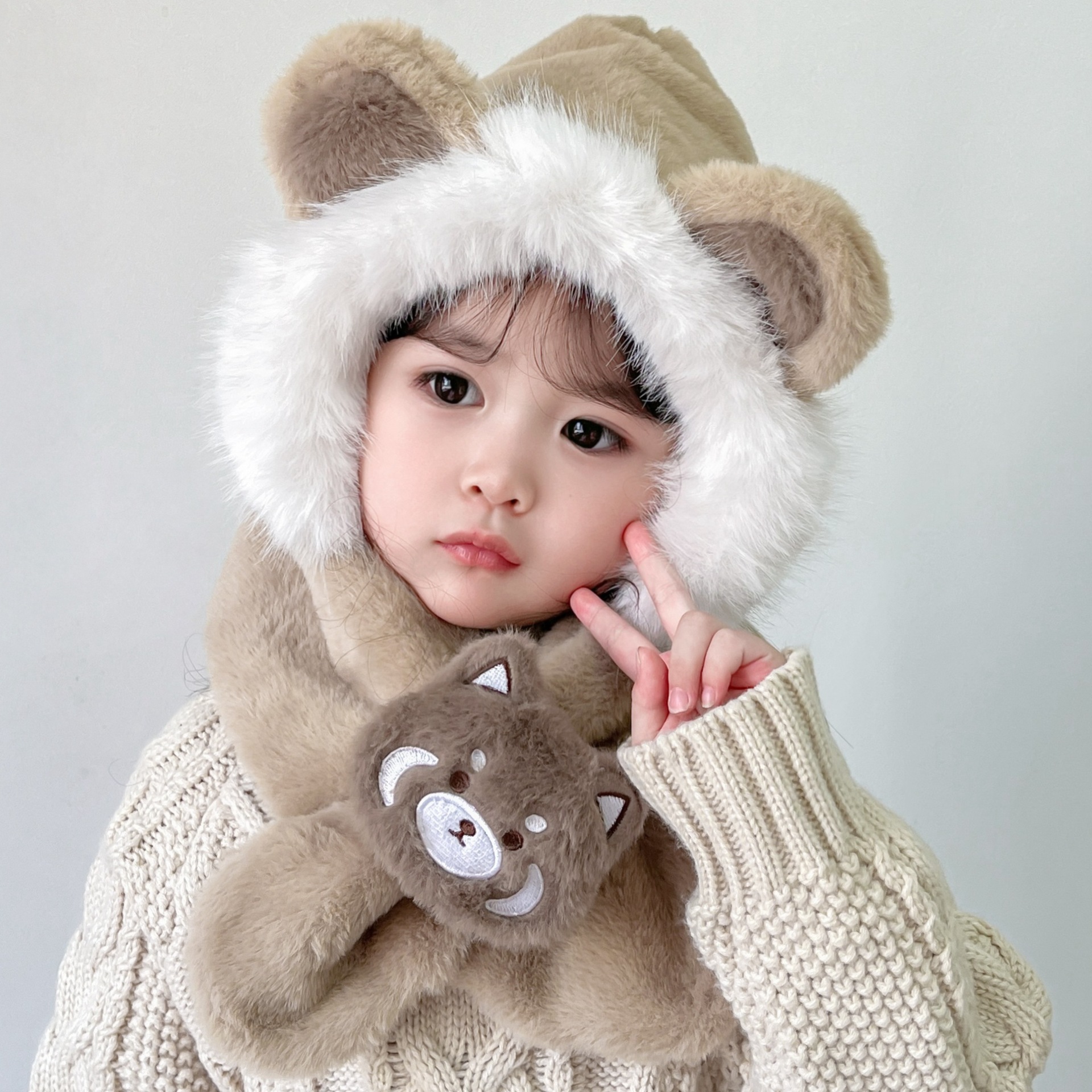 【儿童帽子围巾一体围脖,防风保暖,加绒护耳】1-10岁儿童帽子围巾一体围脖 秋冬季加绒宝宝护耳帽 保暖男女童毛绒帽爆款-QQ