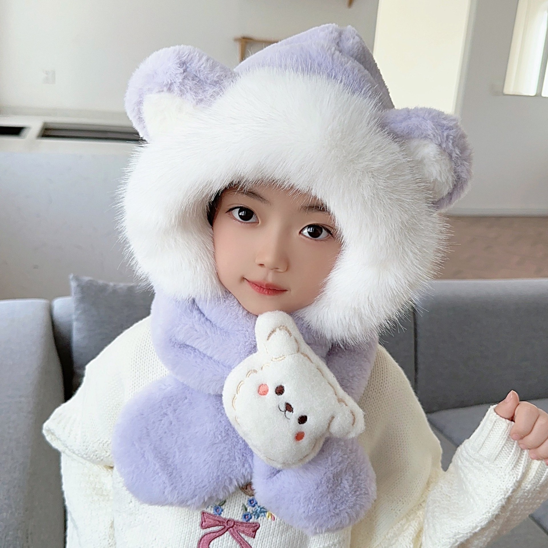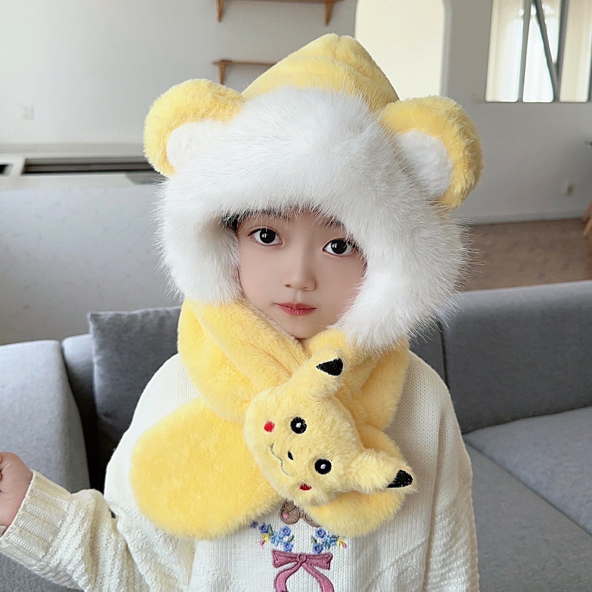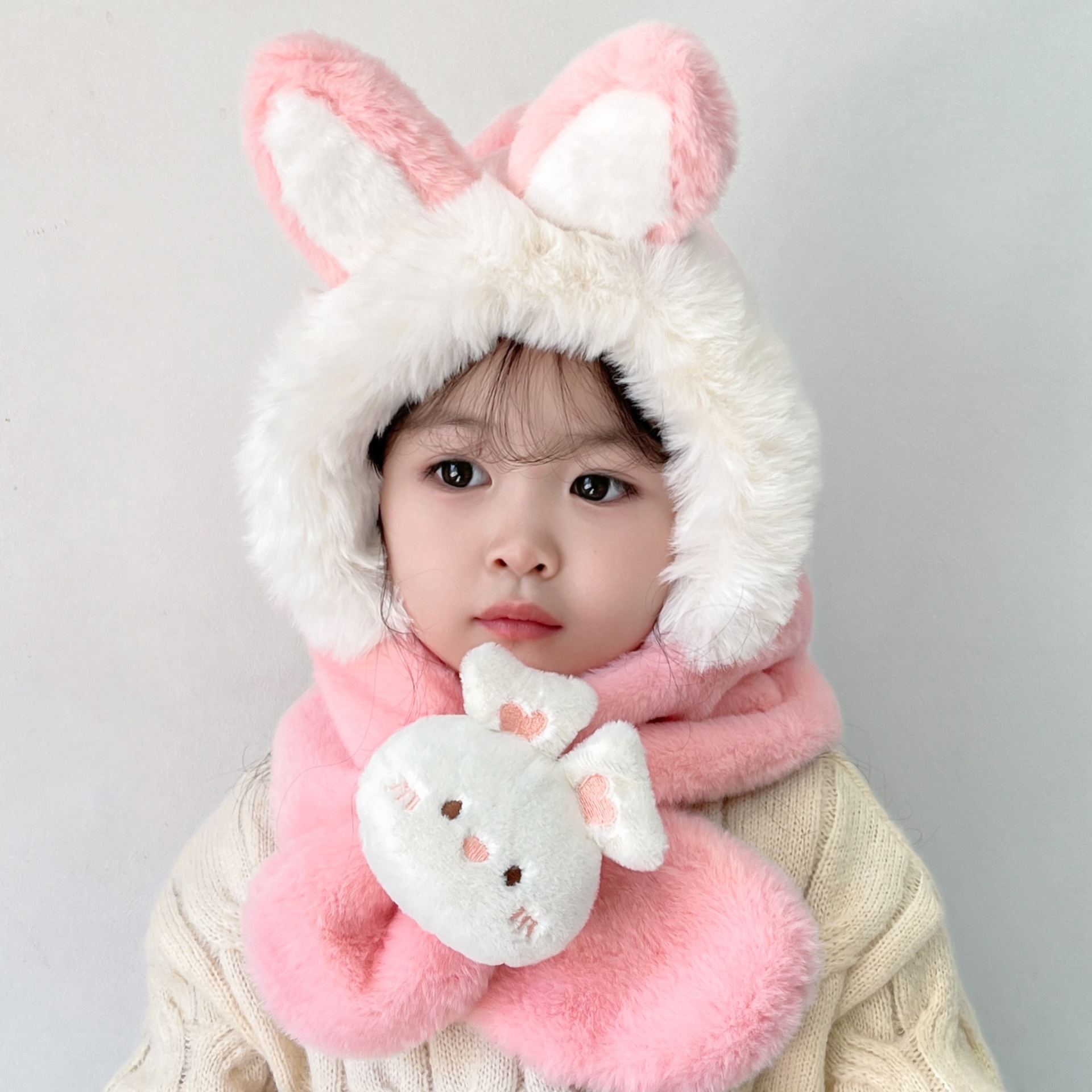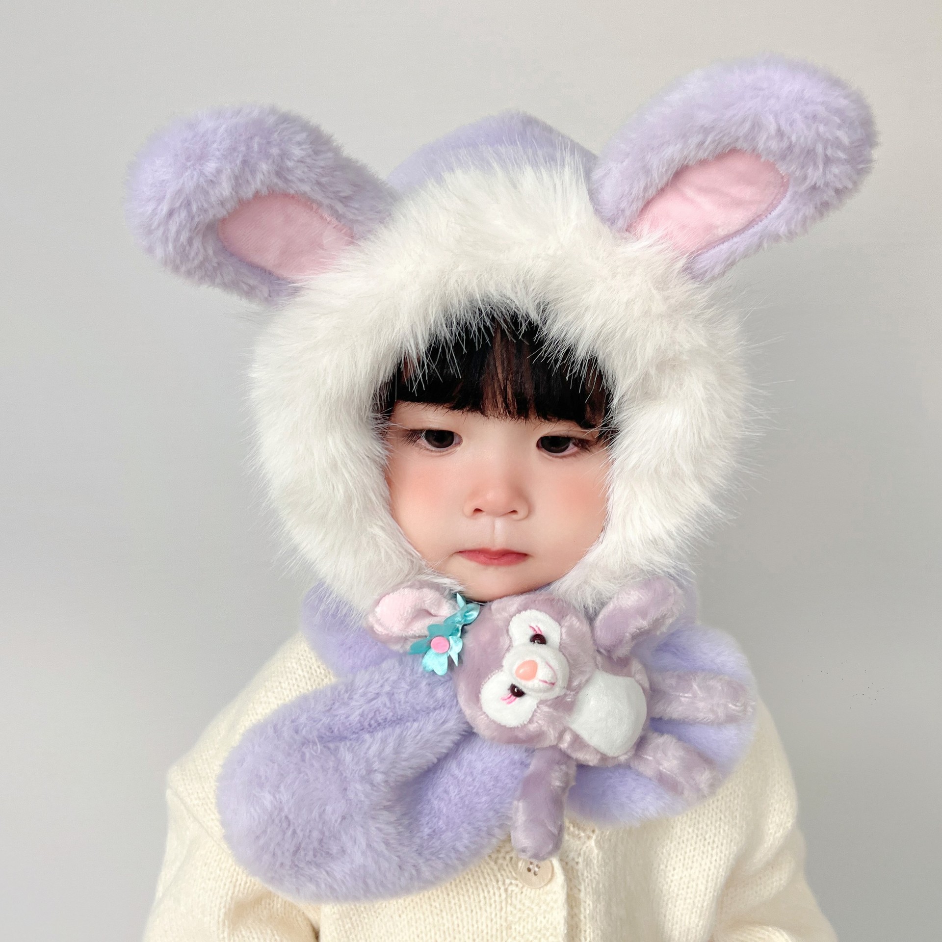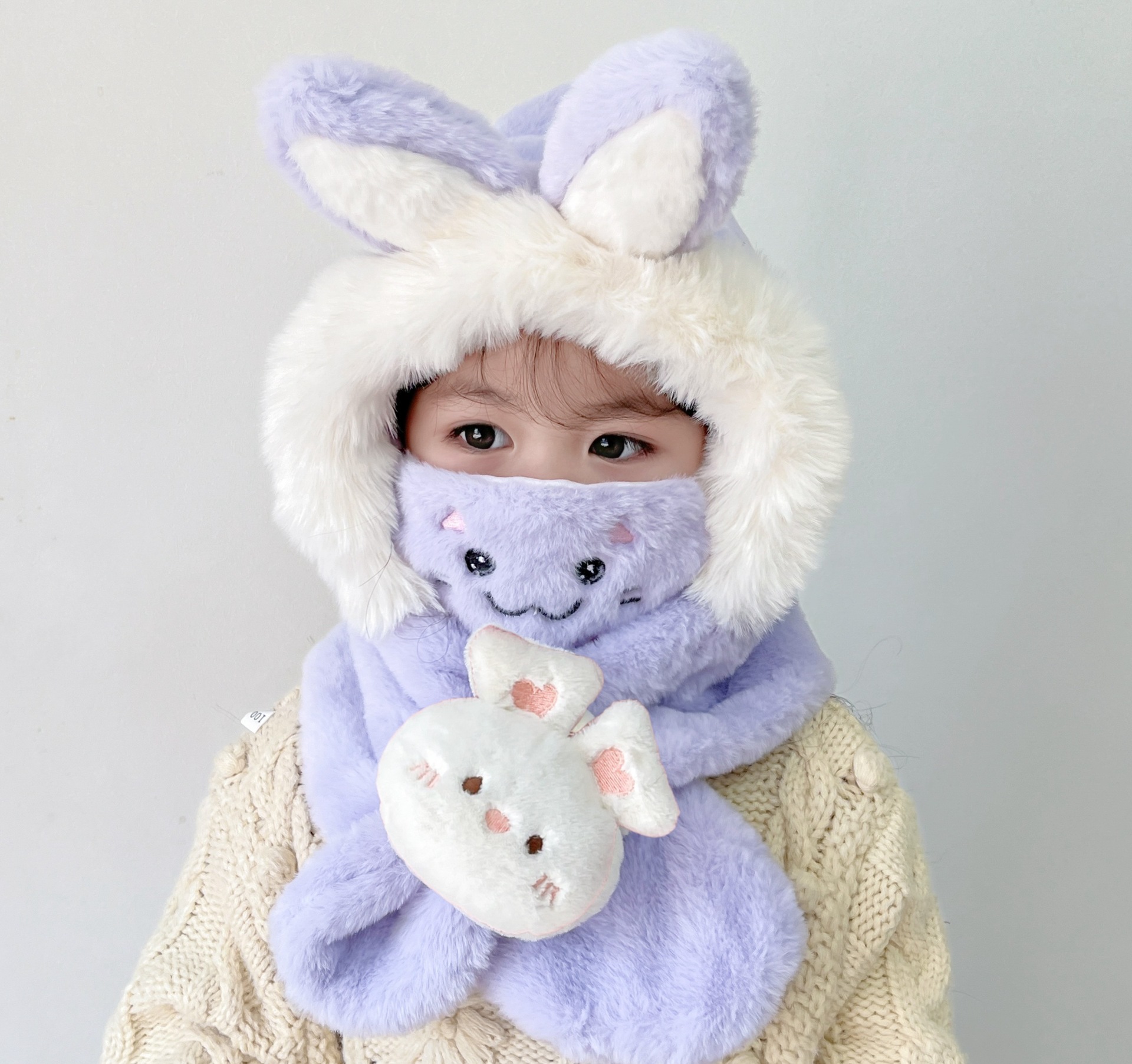【儿童帽子围巾一体围脖,防风保暖,加绒护耳】1-10岁儿童帽子围巾一体围脖 秋冬季加绒宝宝护耳帽 保暖男女童毛绒帽爆款-QQ