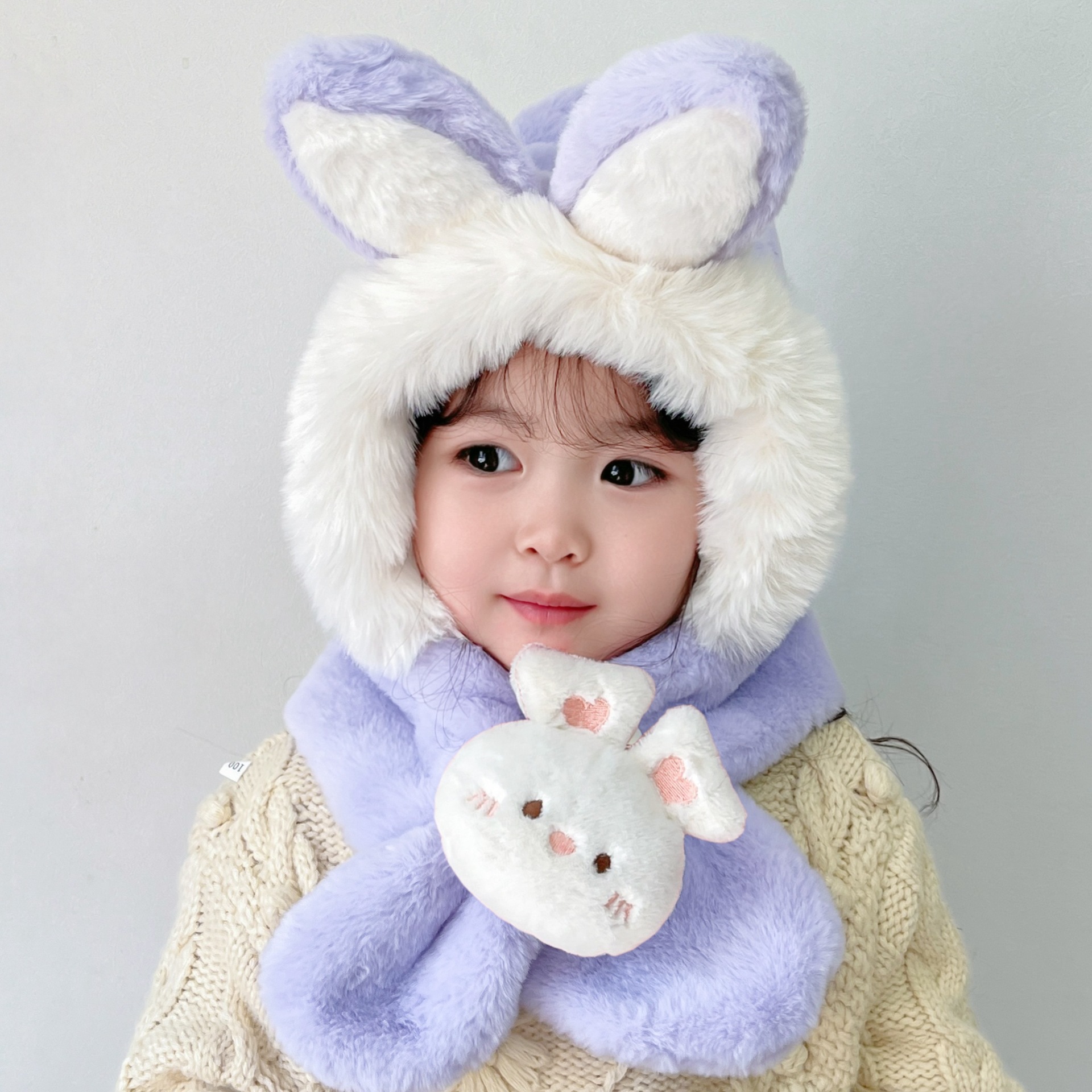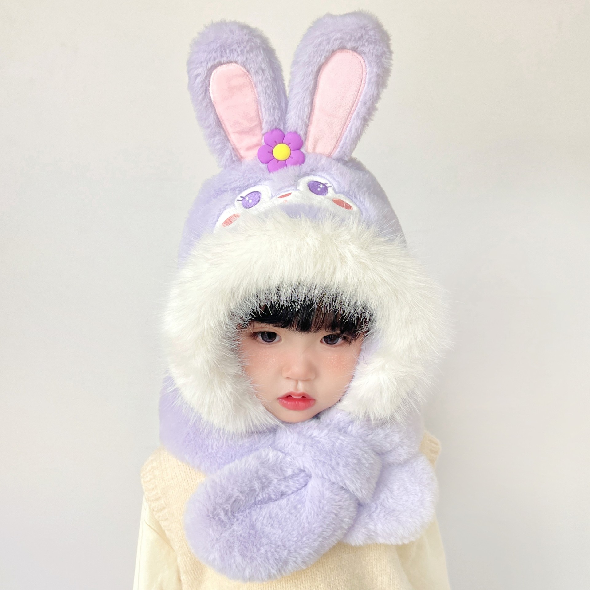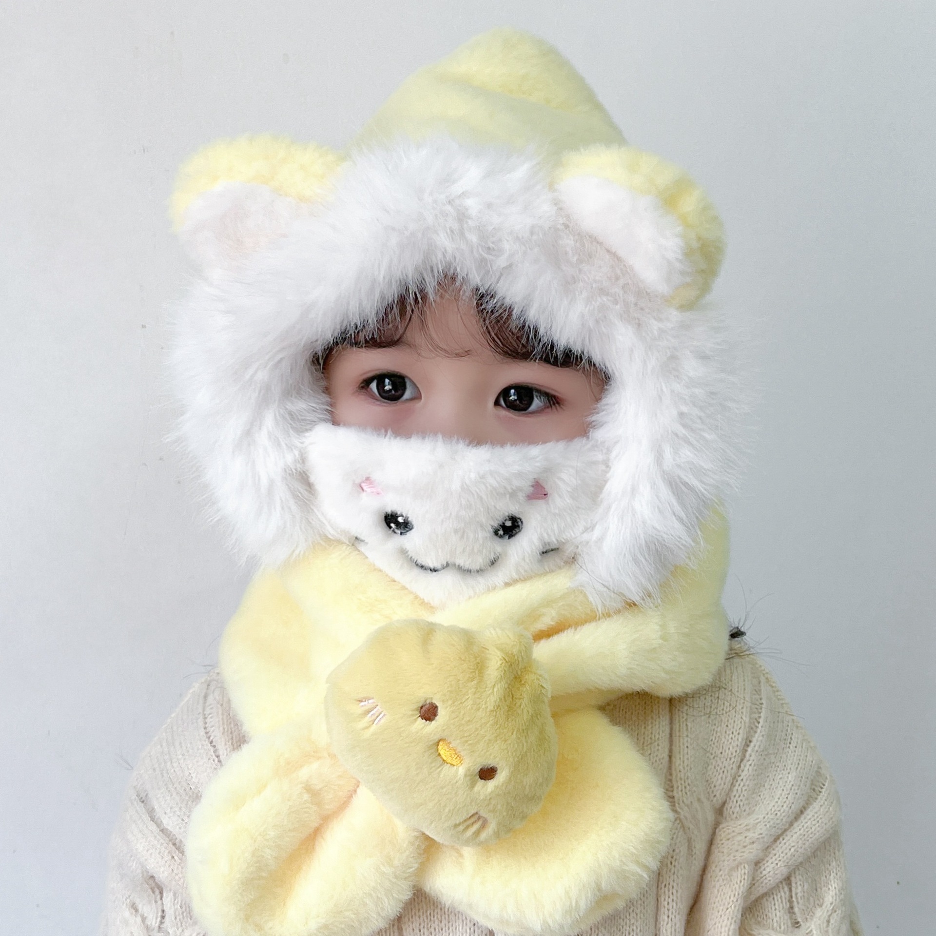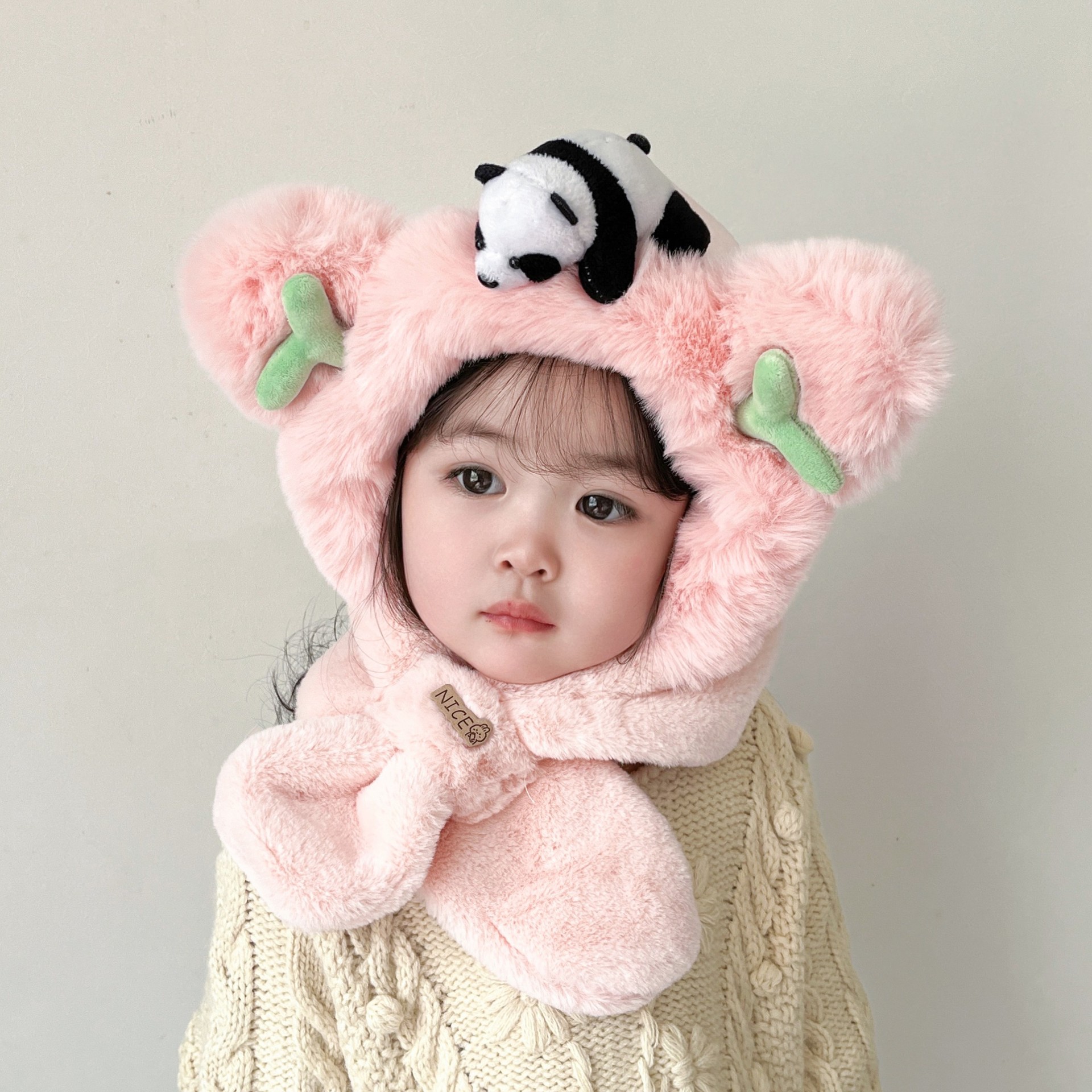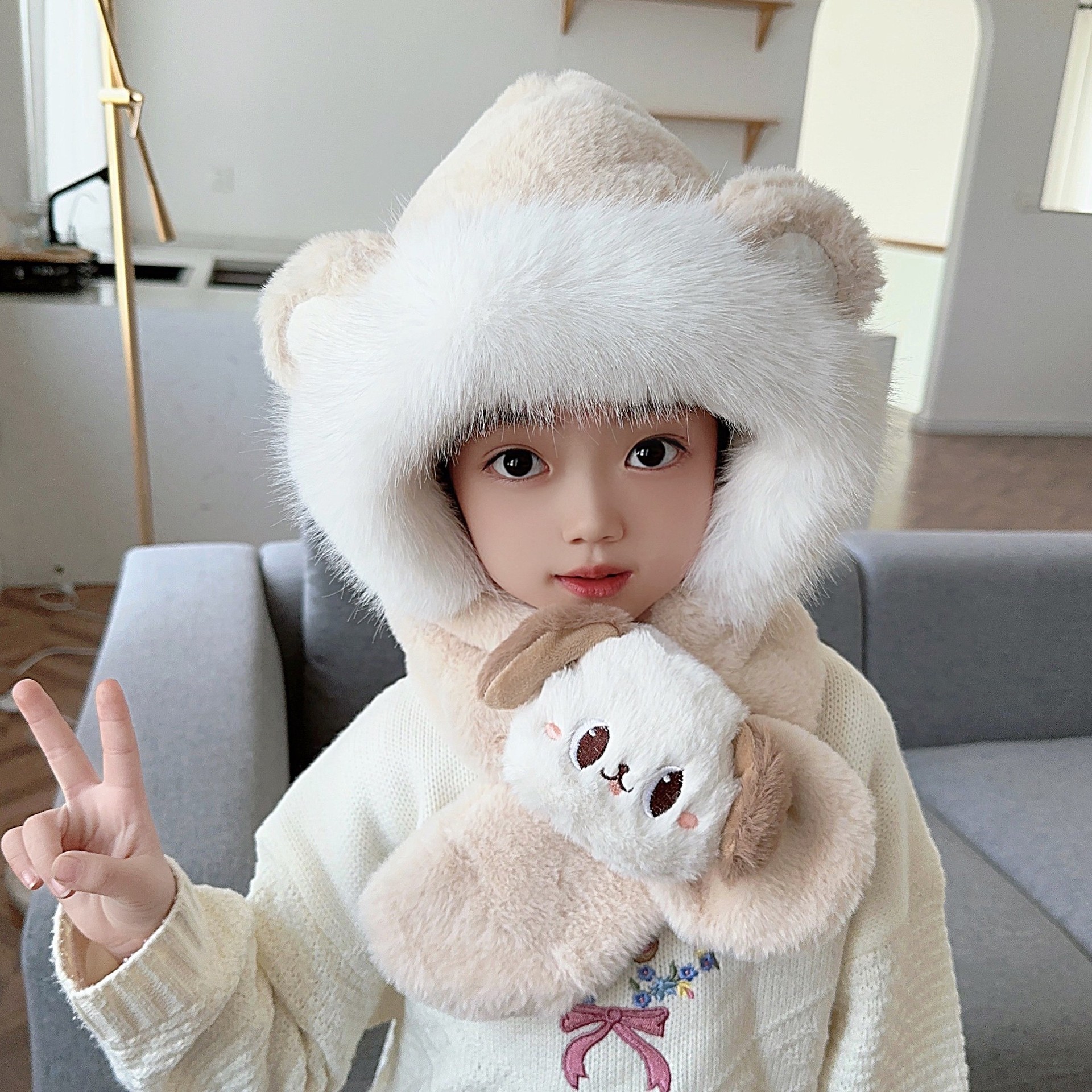 【儿童帽子围巾一体围脖,防风保暖,加绒护耳】1-10岁儿童帽子围巾一体围脖 秋冬季加绒宝宝护耳帽 保暖男女童毛绒帽爆款-QQ