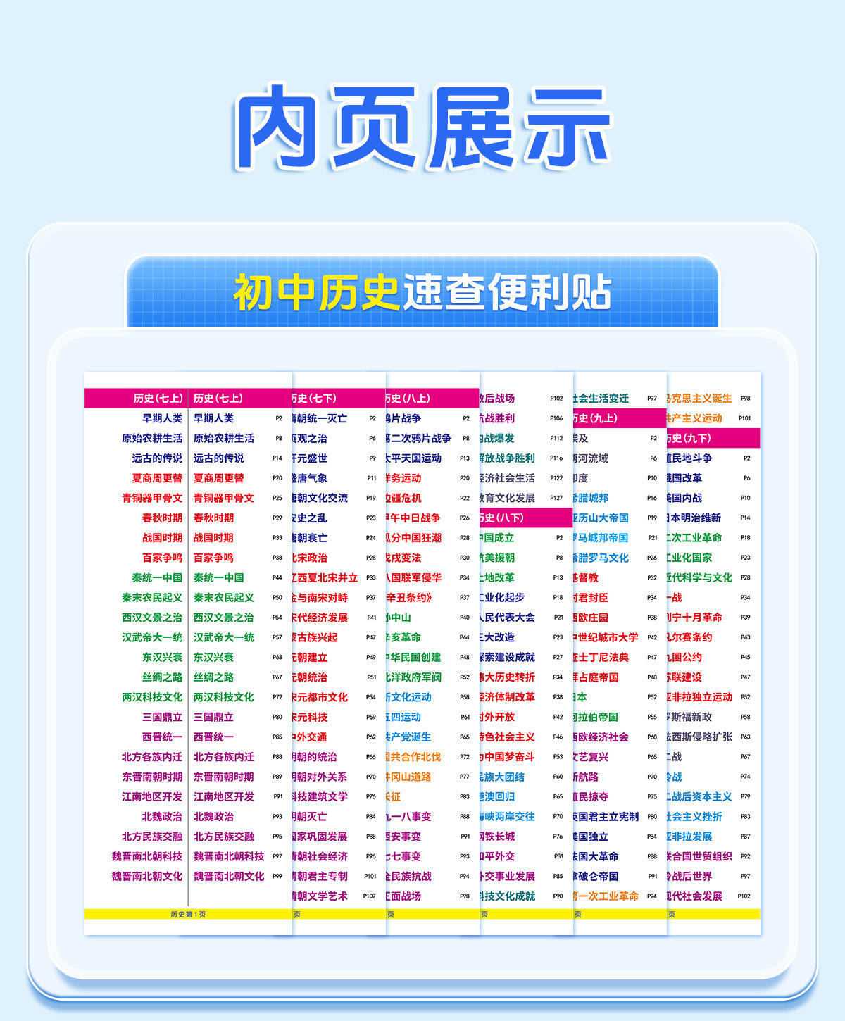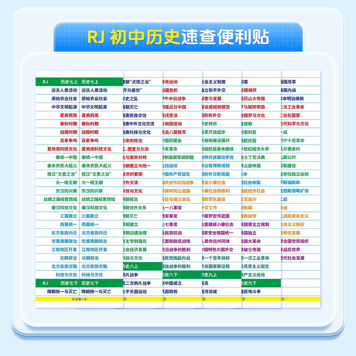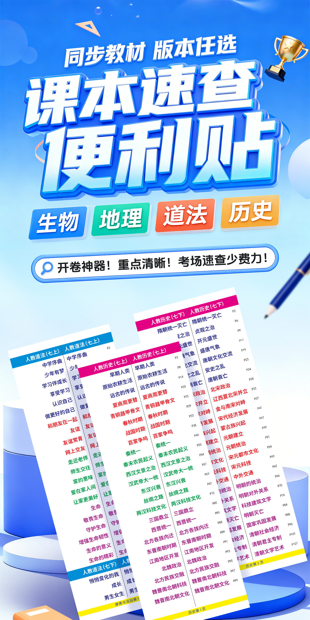 7-9年级【速查便利贴】2026新版同步道法历史开卷考试快速查找目录检索不干胶贴纸生物地理初中小四门便利贴發