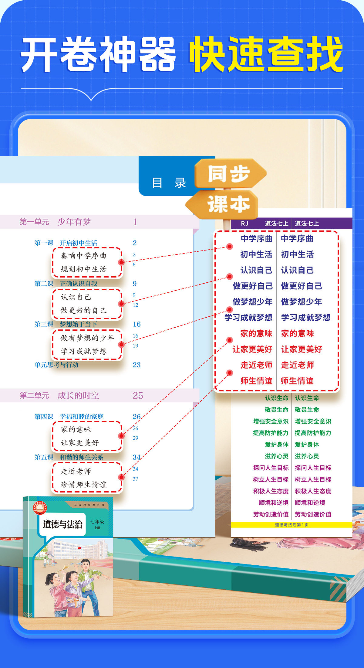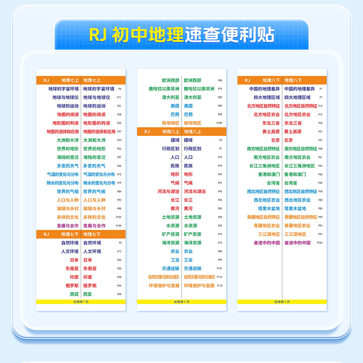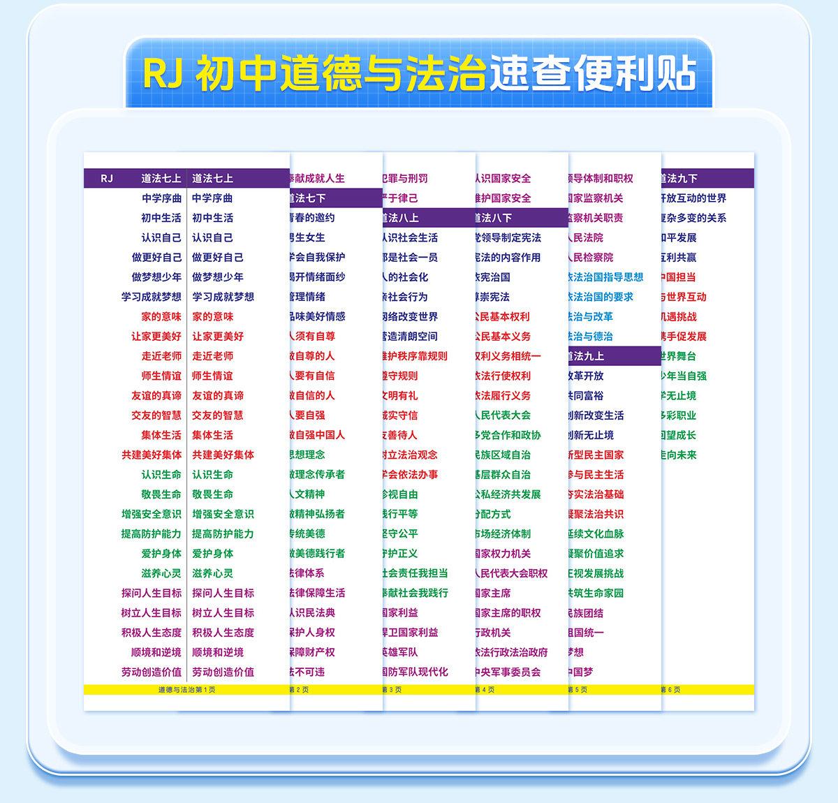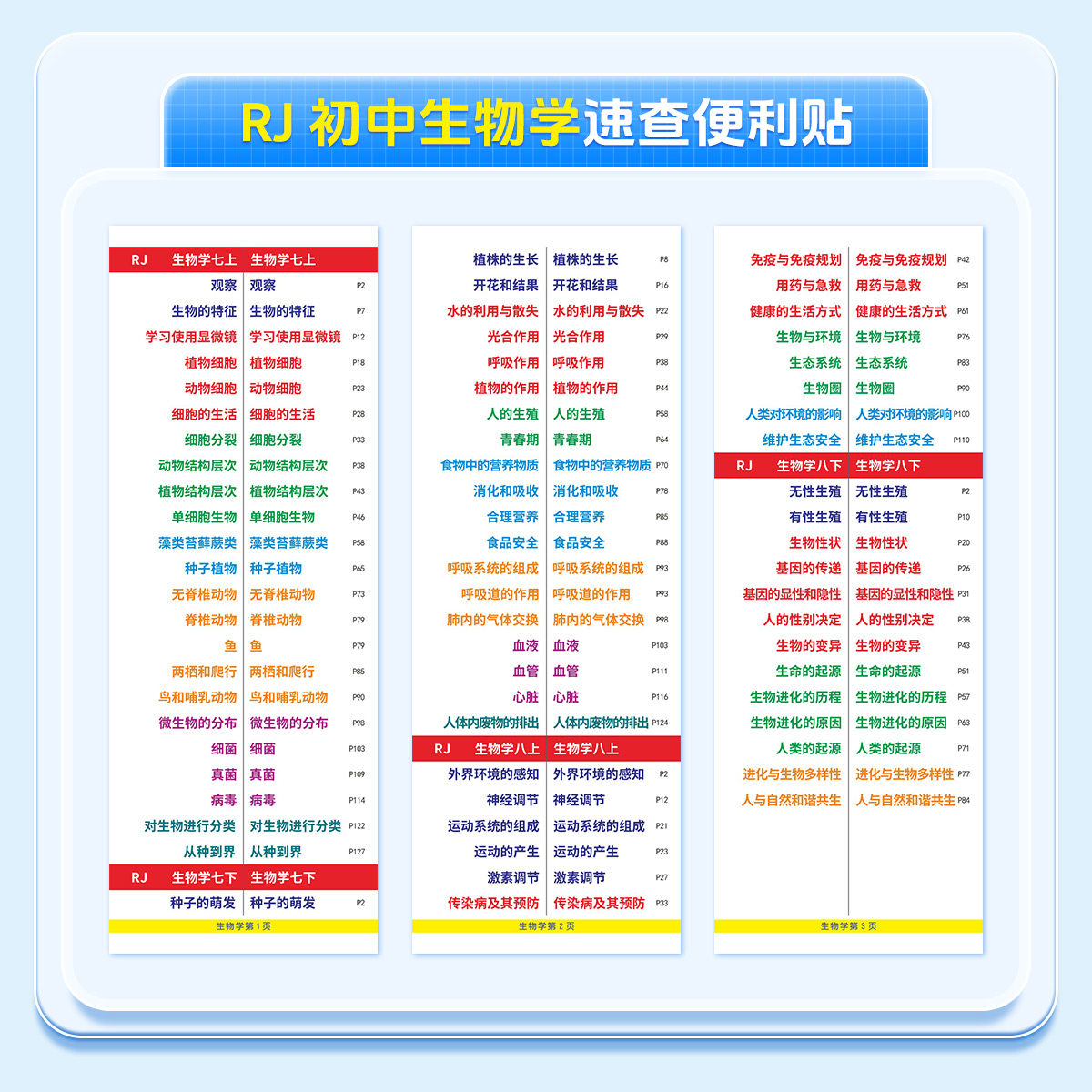 7-9年级【速查便利贴】2026新版同步道法历史开卷考试快速查找目录检索不干胶贴纸生物地理初中小四门便利贴發