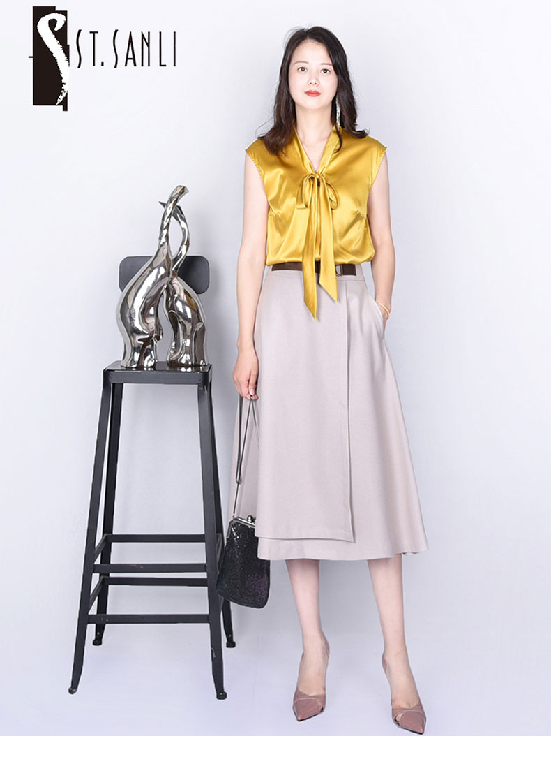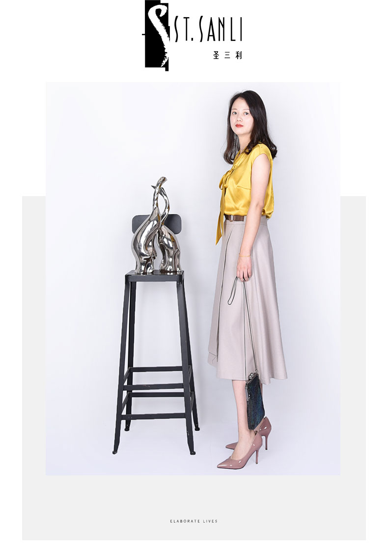 圣三利女装春秋季纯色气质优雅半身裙SL121B08
