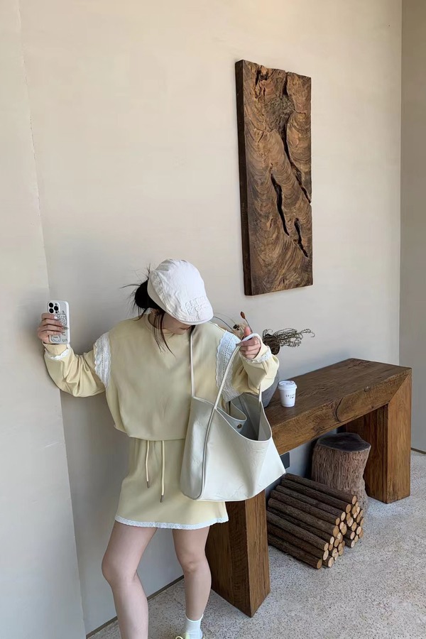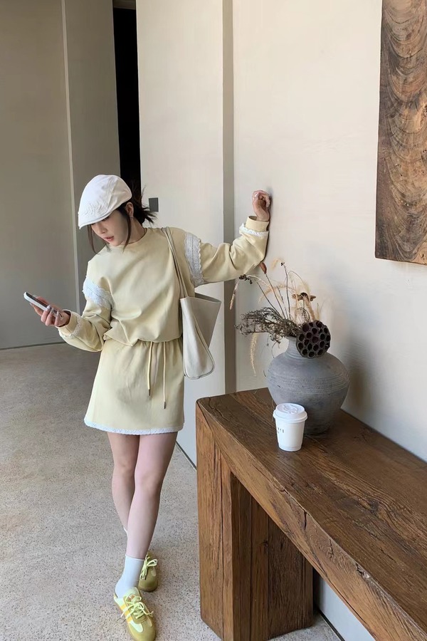 HAYES 撞色蕾丝拼接运动休闲抽绳短裙套装 22111
