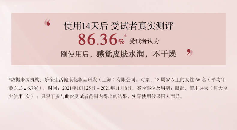 天气丹花献眼霜蕴含山参、鹿茸等天气丹系列核心成分,协同明星护肤成分神经酰胺,蕴含丰富的浓缩营养成分,针对眼周肌肤松弛失弹、粗糙干燥、黯然无光等问题,为眼周肌肤补充丰富营养与水润光,给予眼周肌肤多方位滋养呵护,紧致眼廓,上扬眼周,令双眸重现细腻、弹润、富有光泽的年轻肌态~