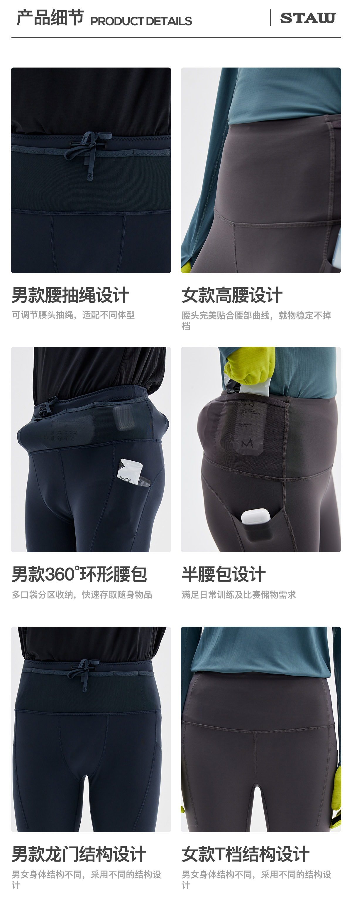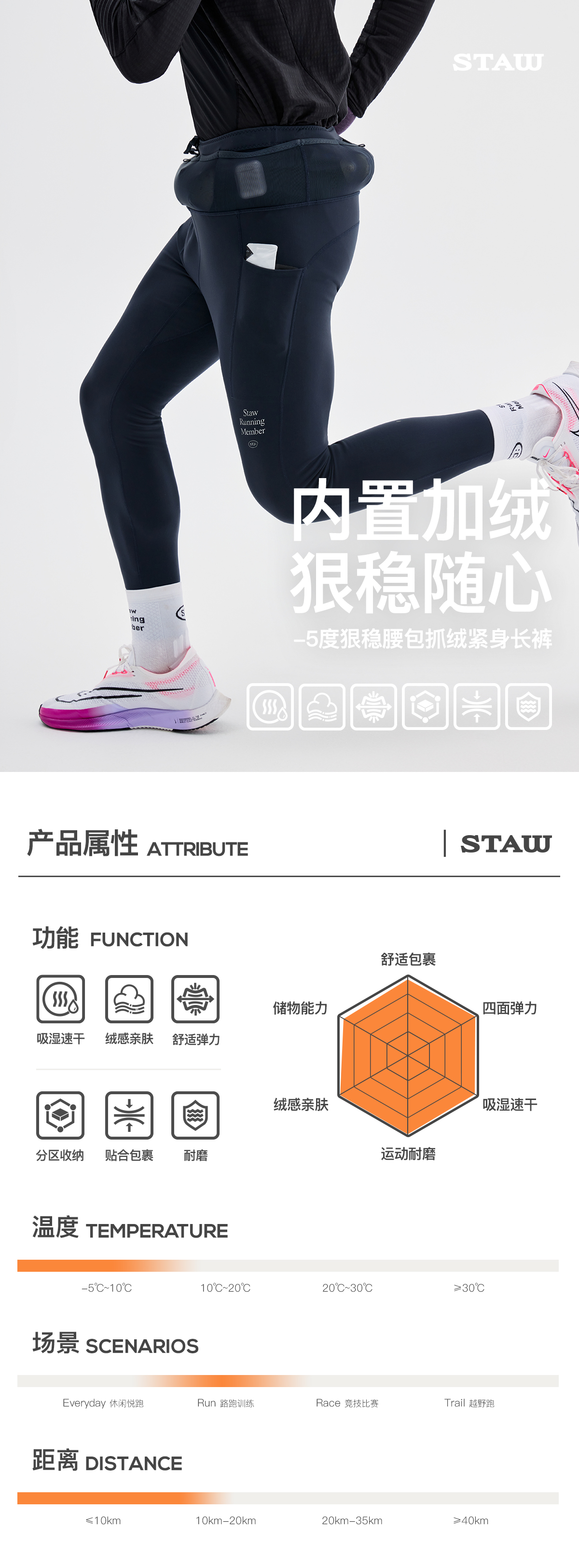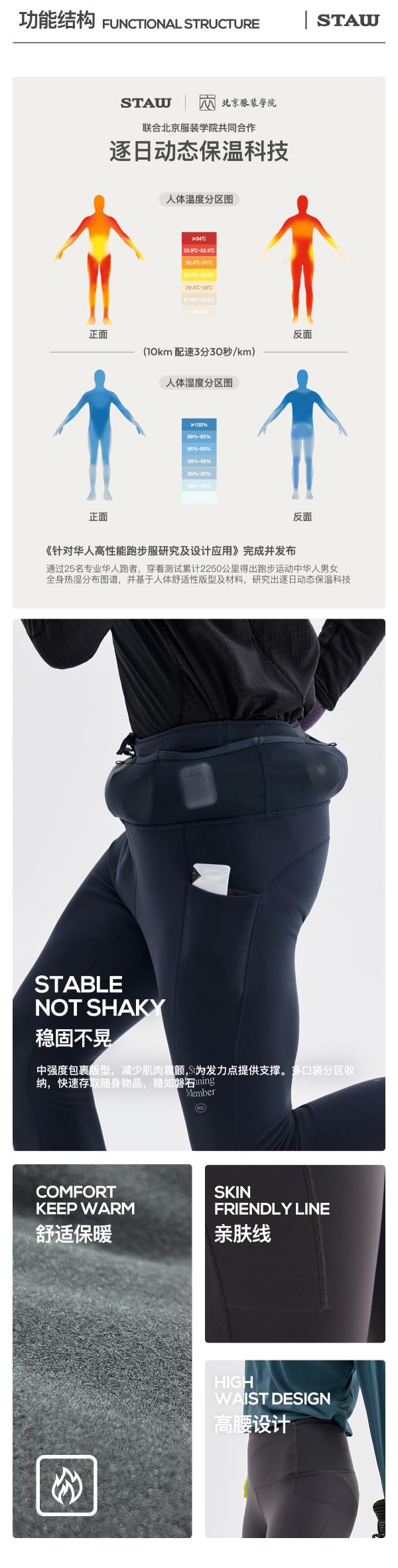 STAW世拓-5度狠稳腰包抓绒紧身长裤厚绒保暖跑步运动瑜伽加绒裤子