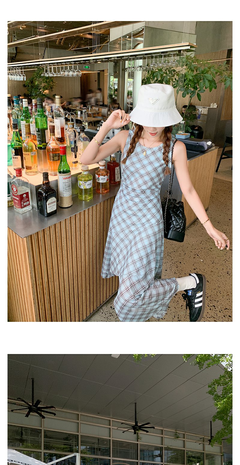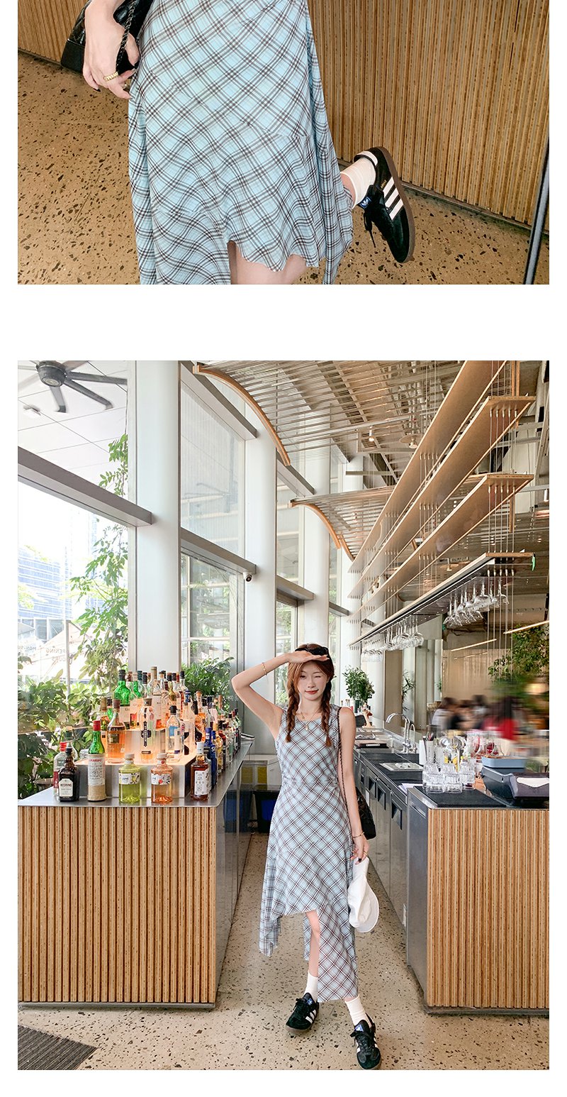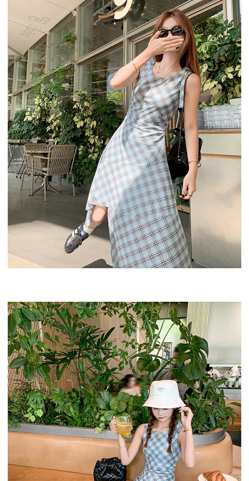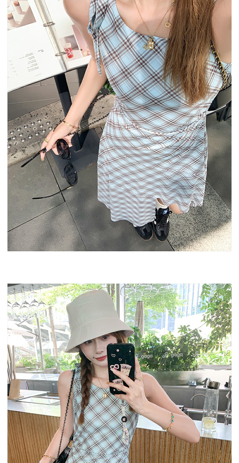 <曾小咸推荐>韩系蓝格纹无袖背心连衣裙