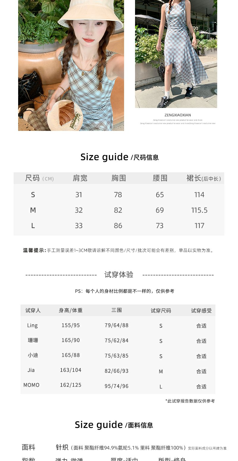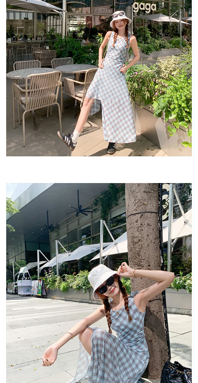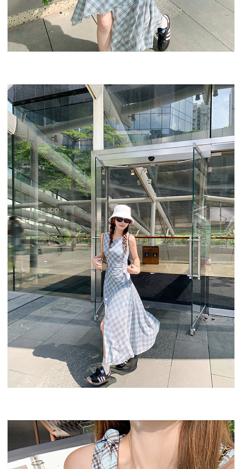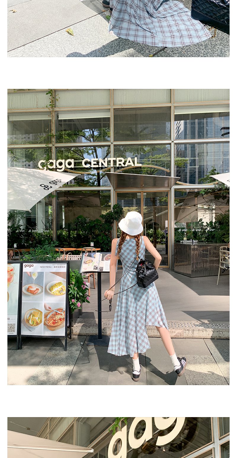 <曾小咸推荐>韩系蓝格纹无袖背心连衣裙