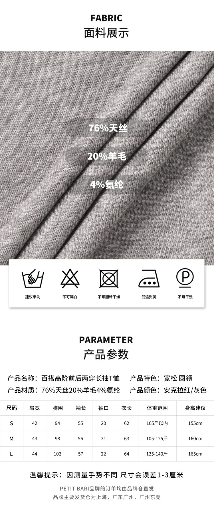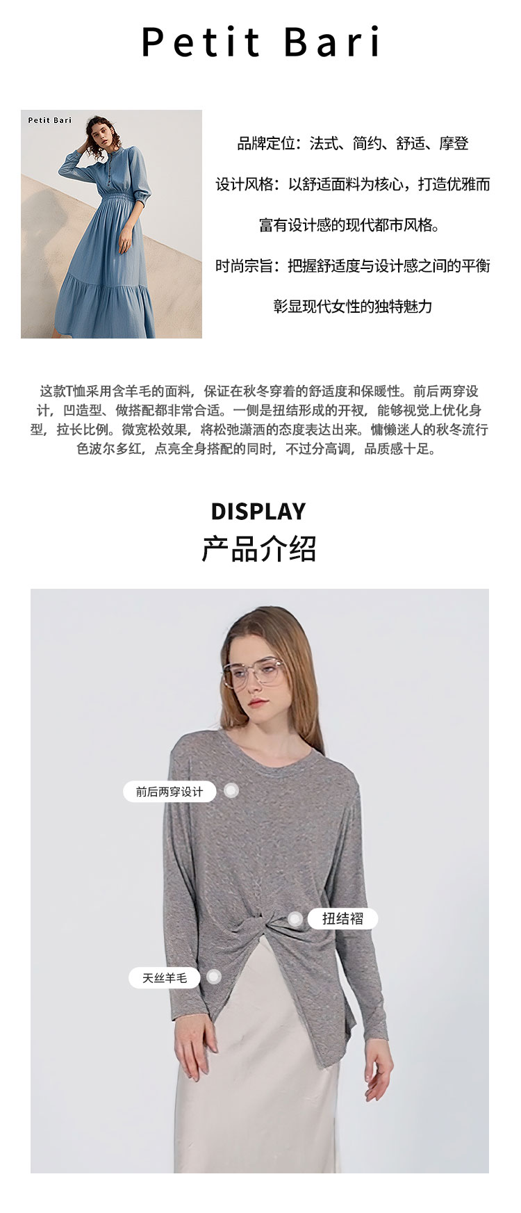 【2件9折】【Petit Bari】(多色)百搭高阶前后两穿长袖T恤