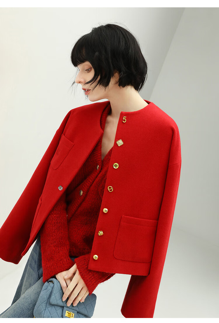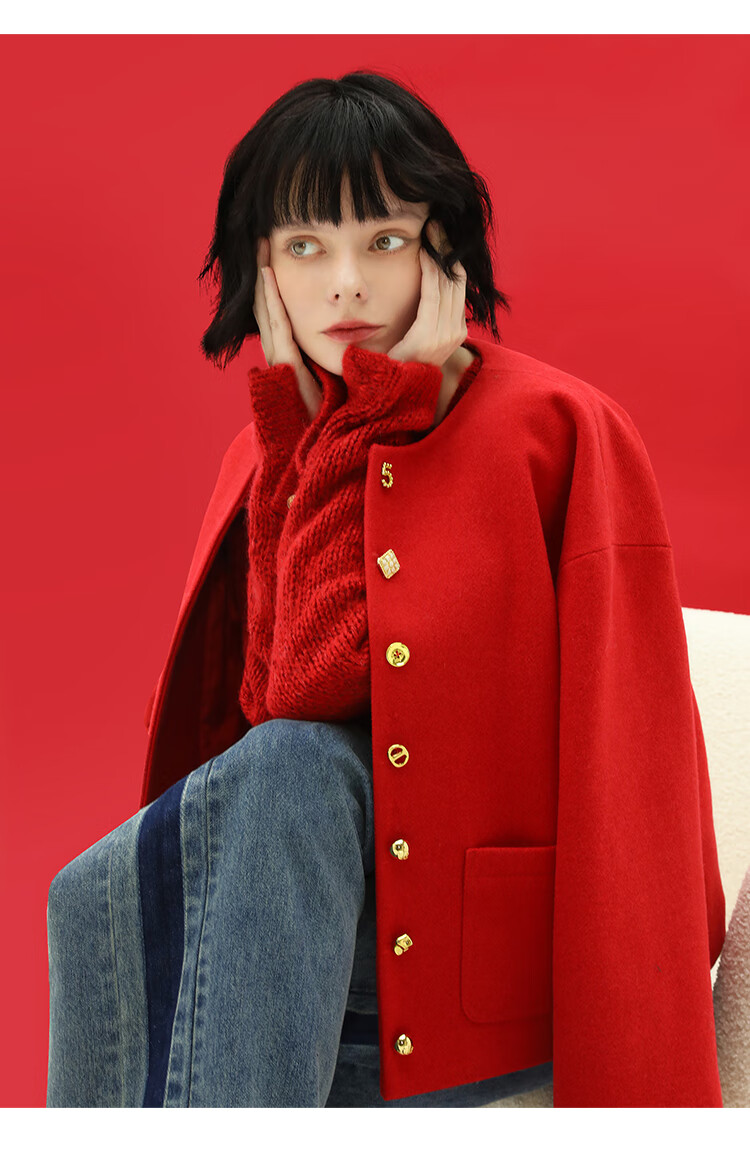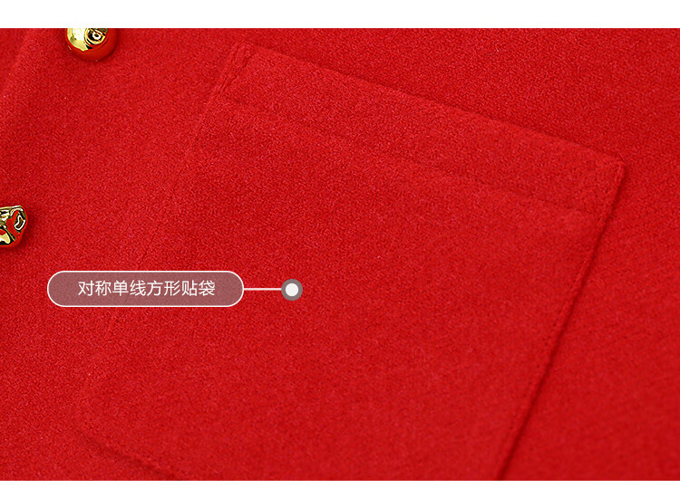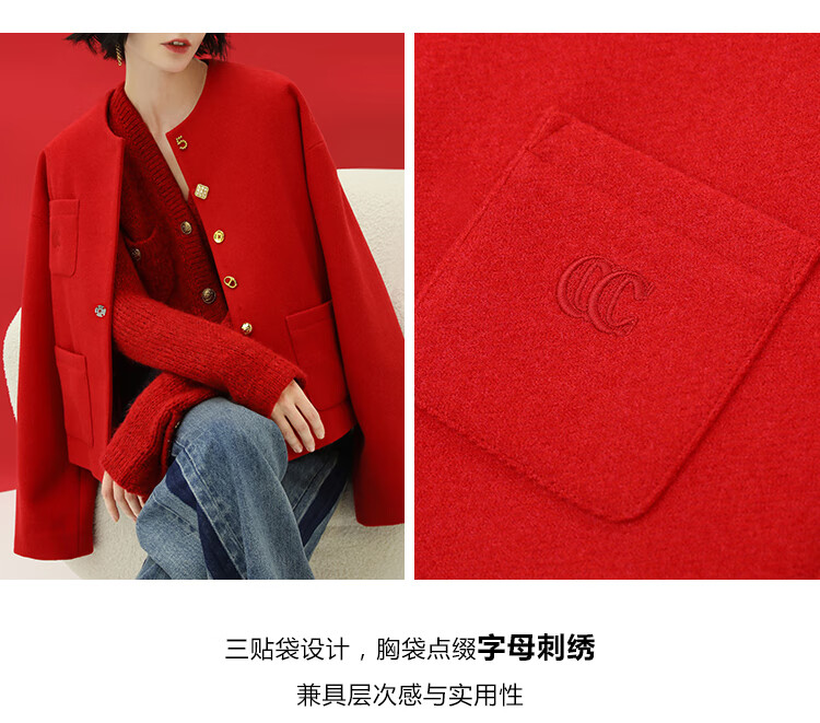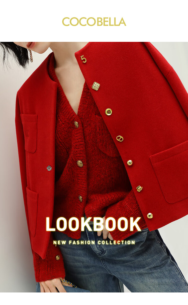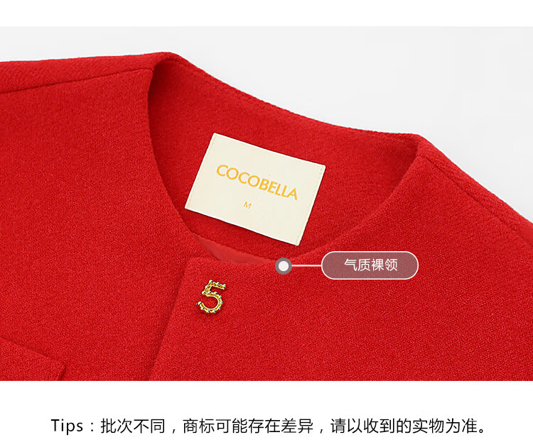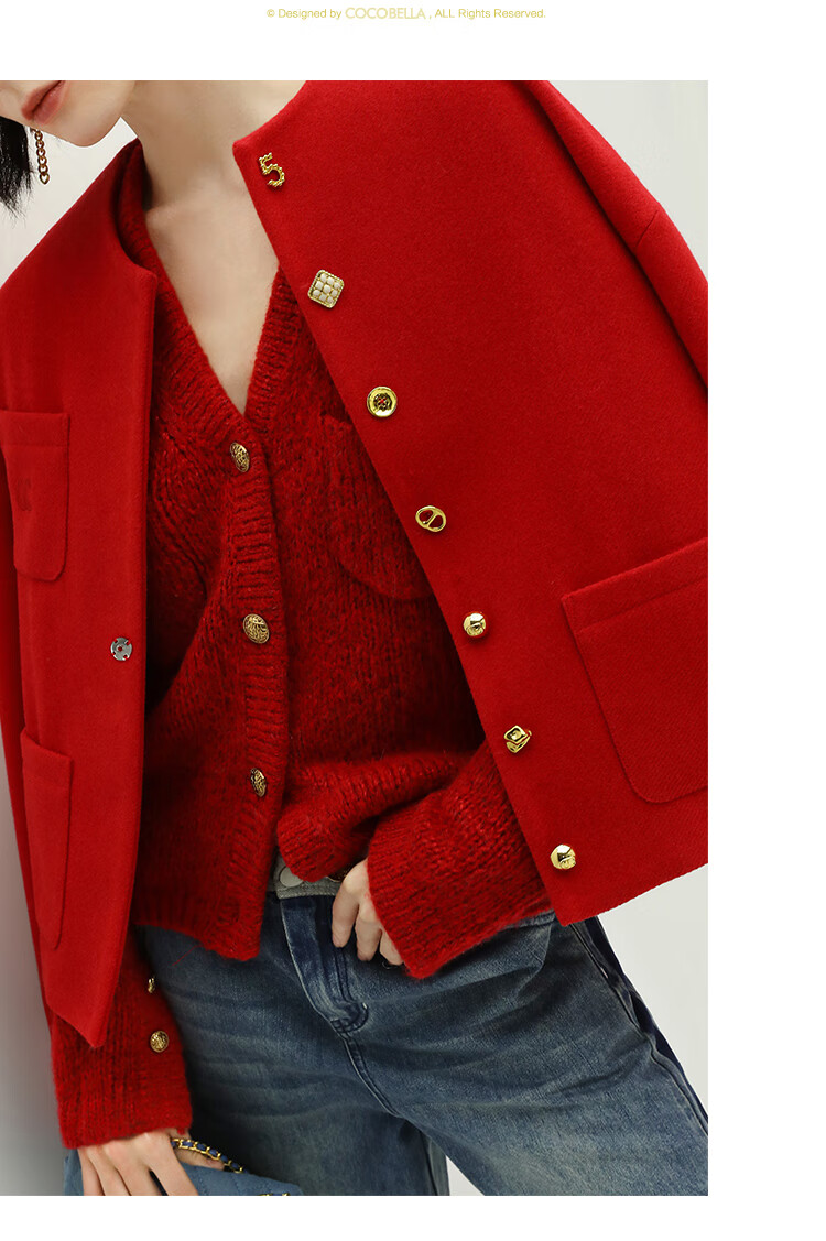 【有赞】COCOBELLA新年红轻奢小香风毛呢外套女刺绣金属扣短外套SC69