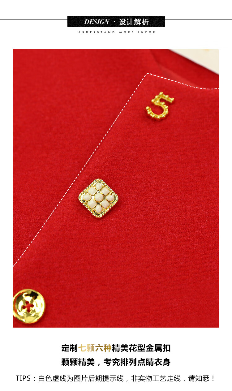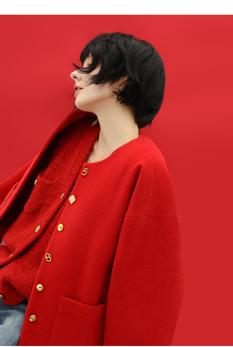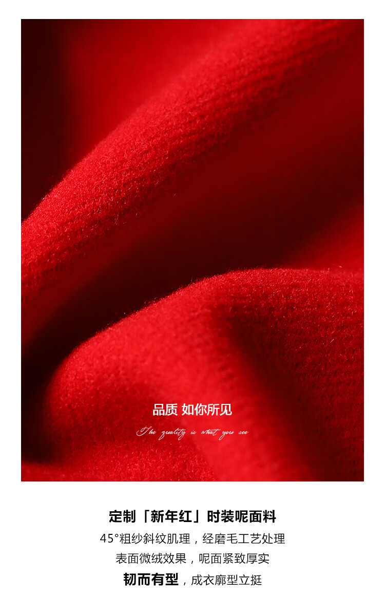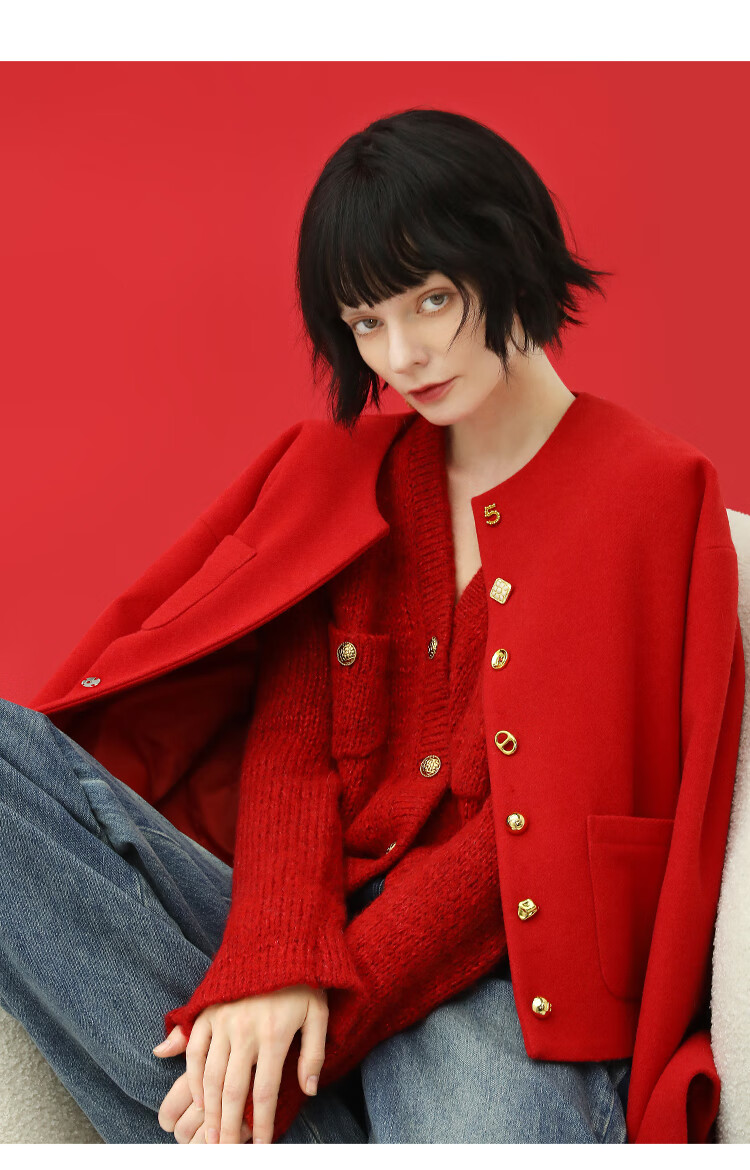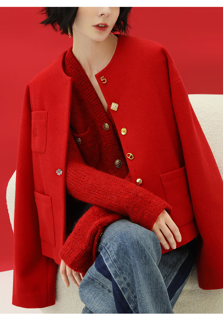 【有赞】COCOBELLA新年红轻奢小香风毛呢外套女刺绣金属扣短外套SC69