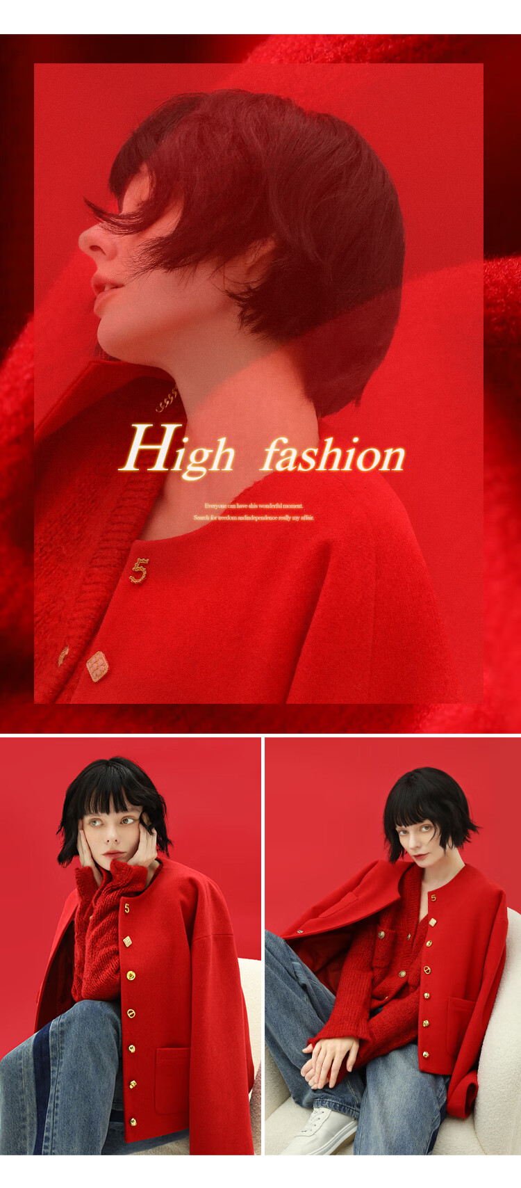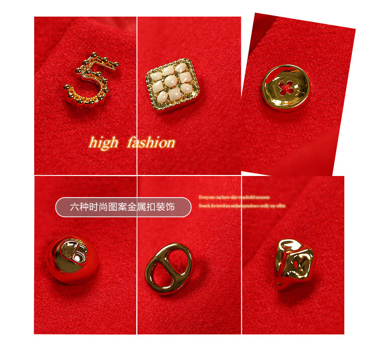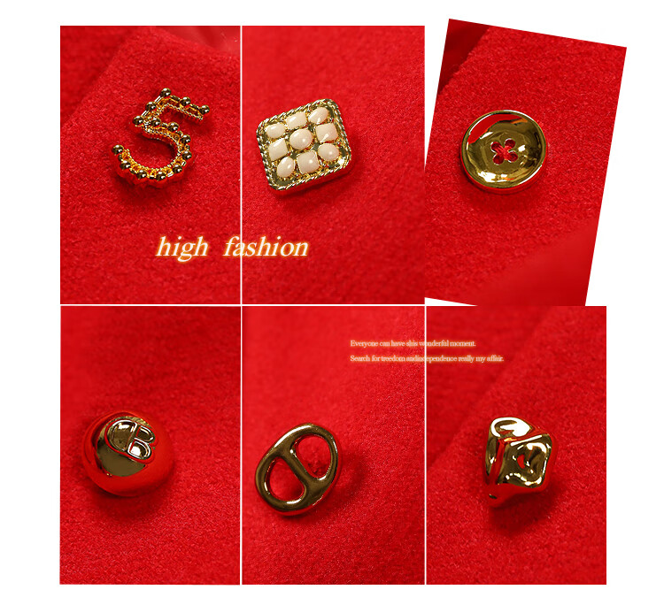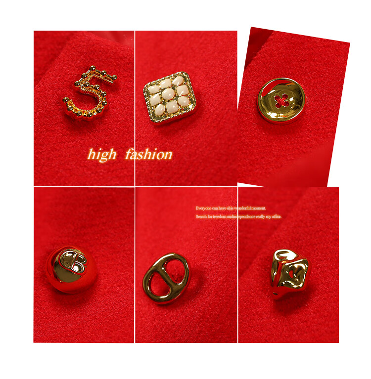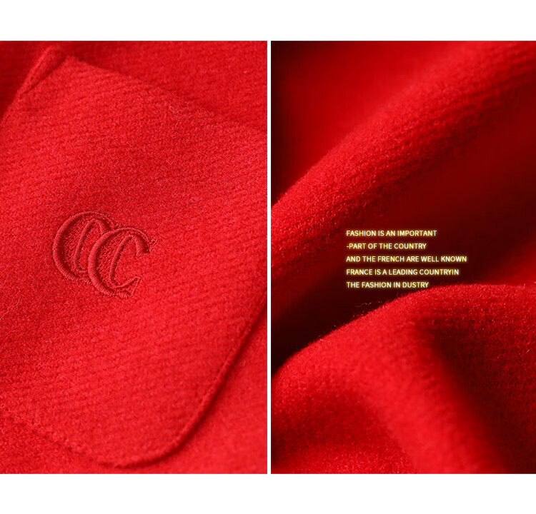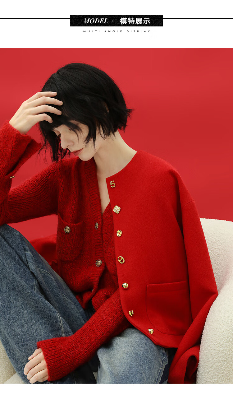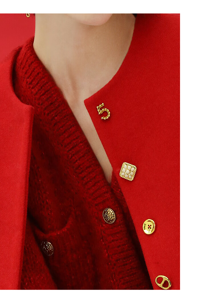 【有赞】COCOBELLA新年红轻奢小香风毛呢外套女刺绣金属扣短外套SC69