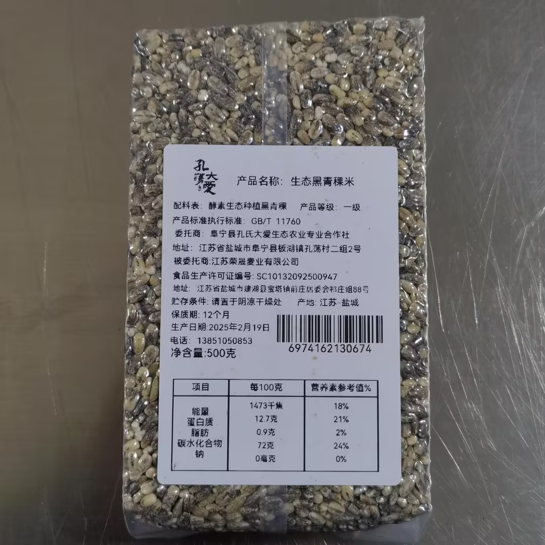 黑青稞米,产自江苏鱼米诗书之乡阜宁县孔子后裔村落孔荡大爱村,是青稞中的稀有黑色品种。其颗粒饱满均匀,色泽深邃如墨玉,散发着独特的谷物清香。得益于阳光雨露、寒冬霜打、昼夜温差、日照充足的自然环境,黑青稞米积累了丰富的营养物质。