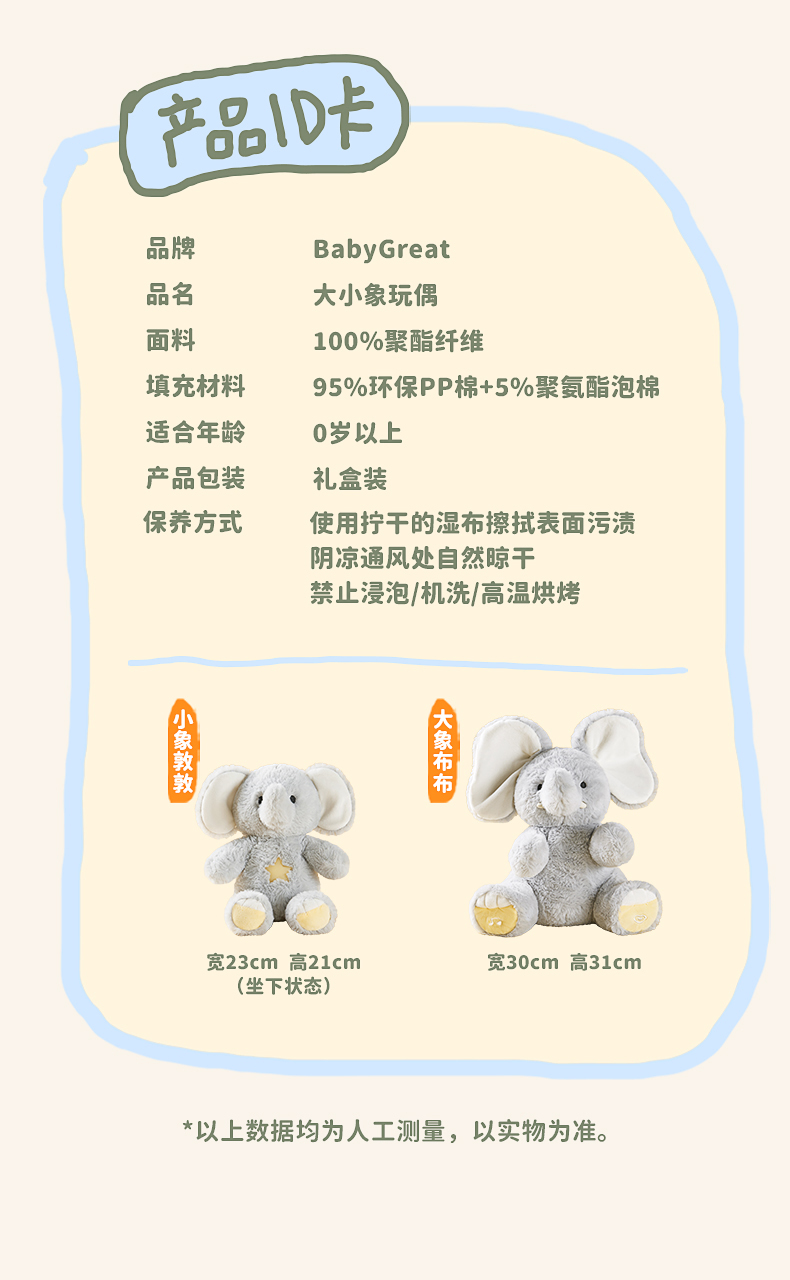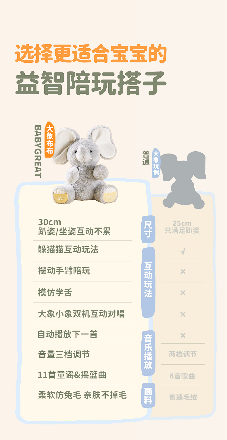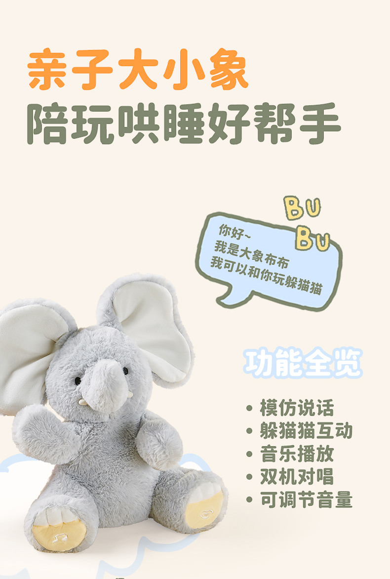 【BG】BABYGREAT大小象玩偶躲猫猫玩具宝宝抬头训练安抚玩偶圣诞新年礼物