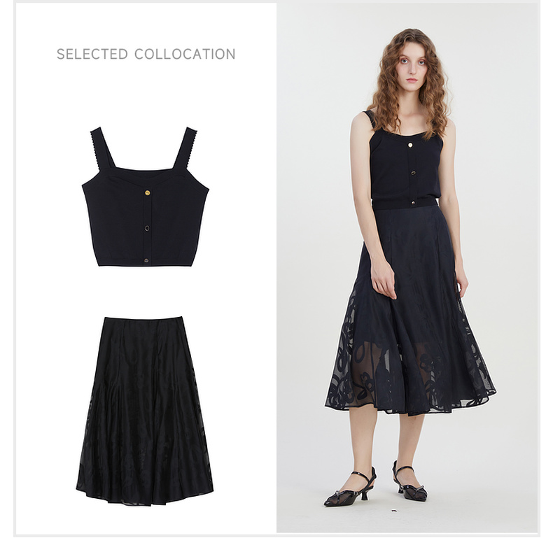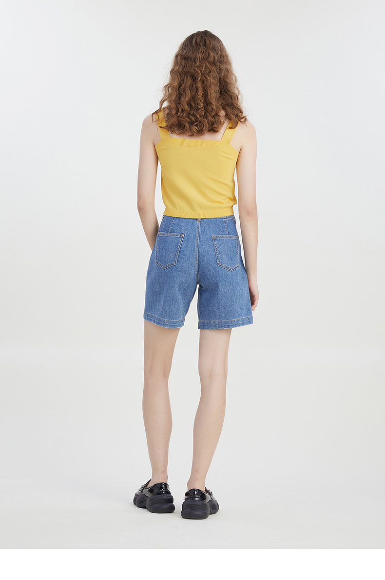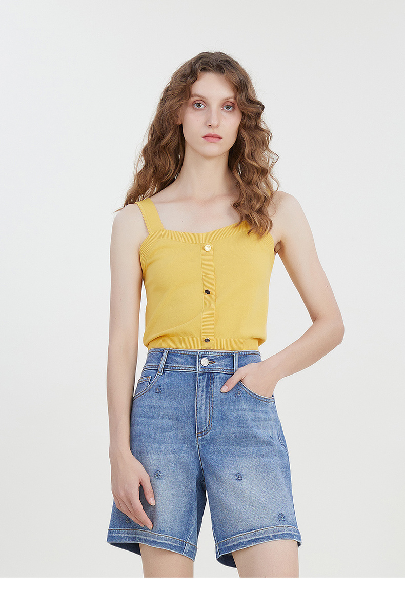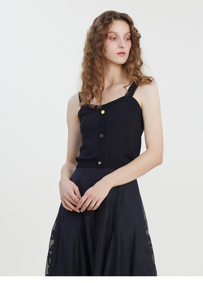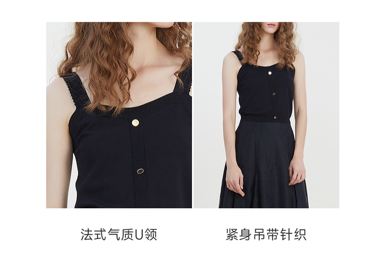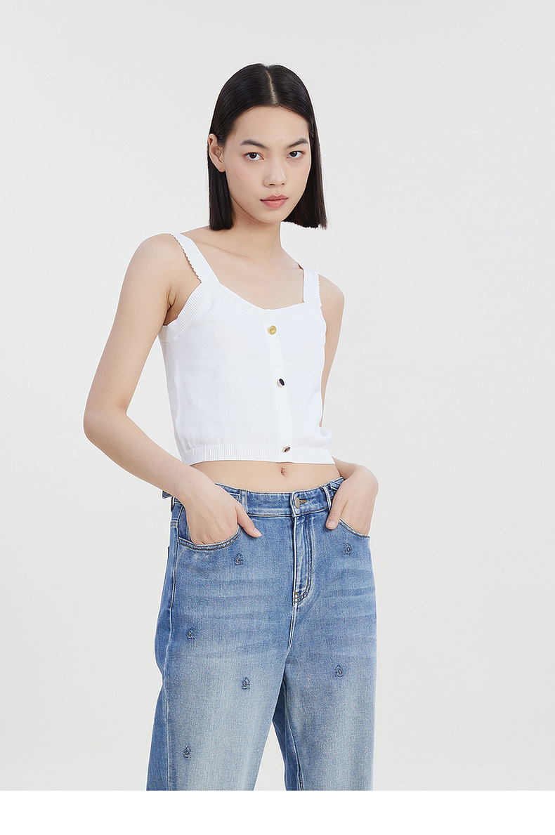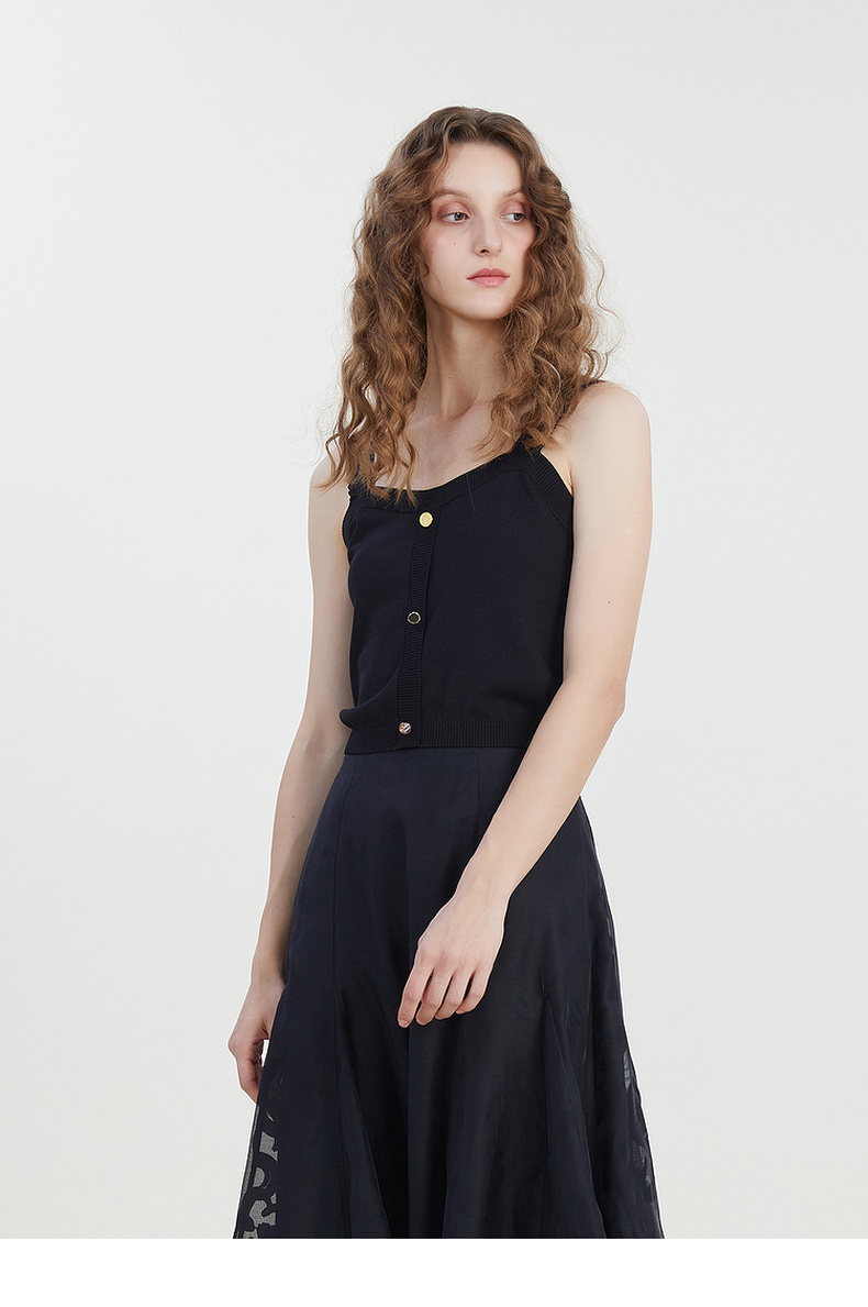 谜底2023夏新款针织衫背心女时尚百搭纯色吊带短款上衣232MZ0877