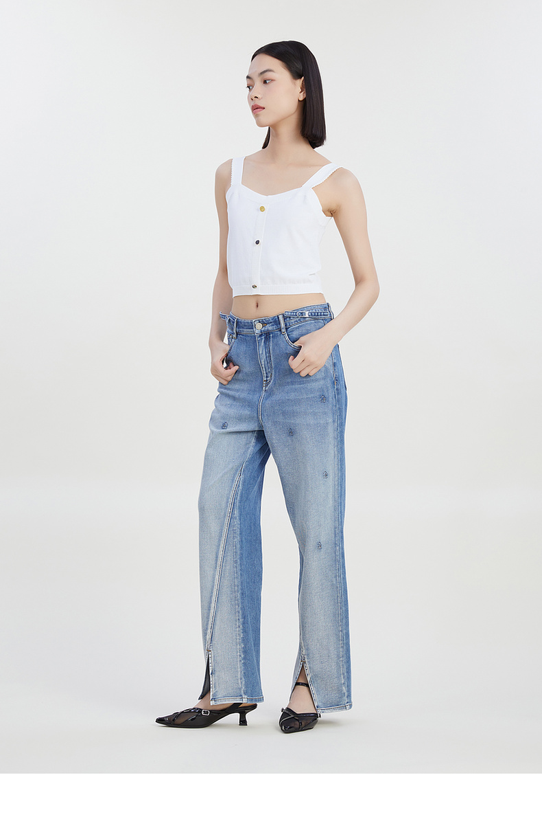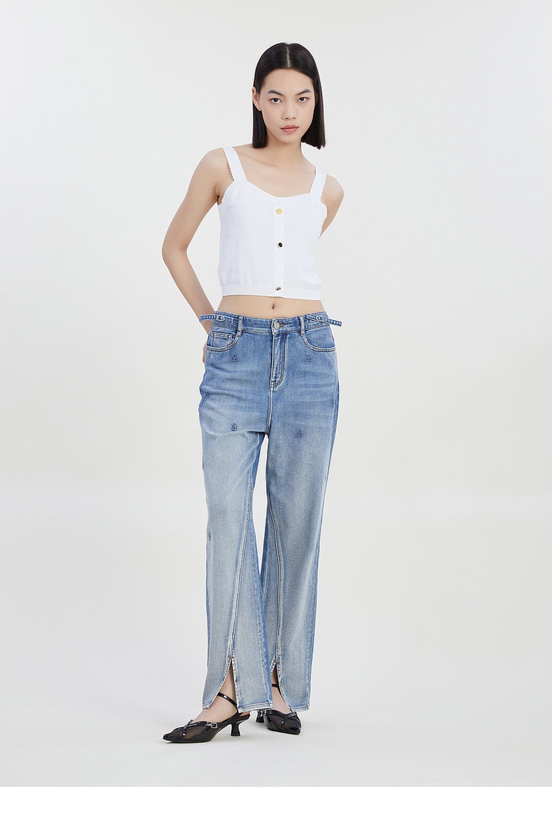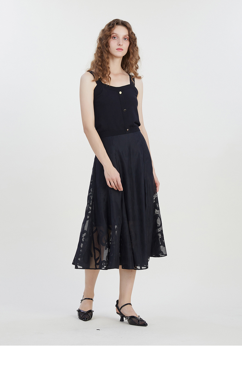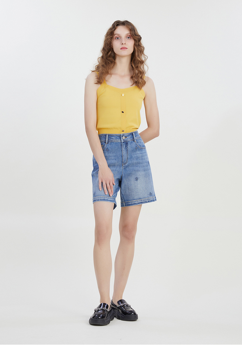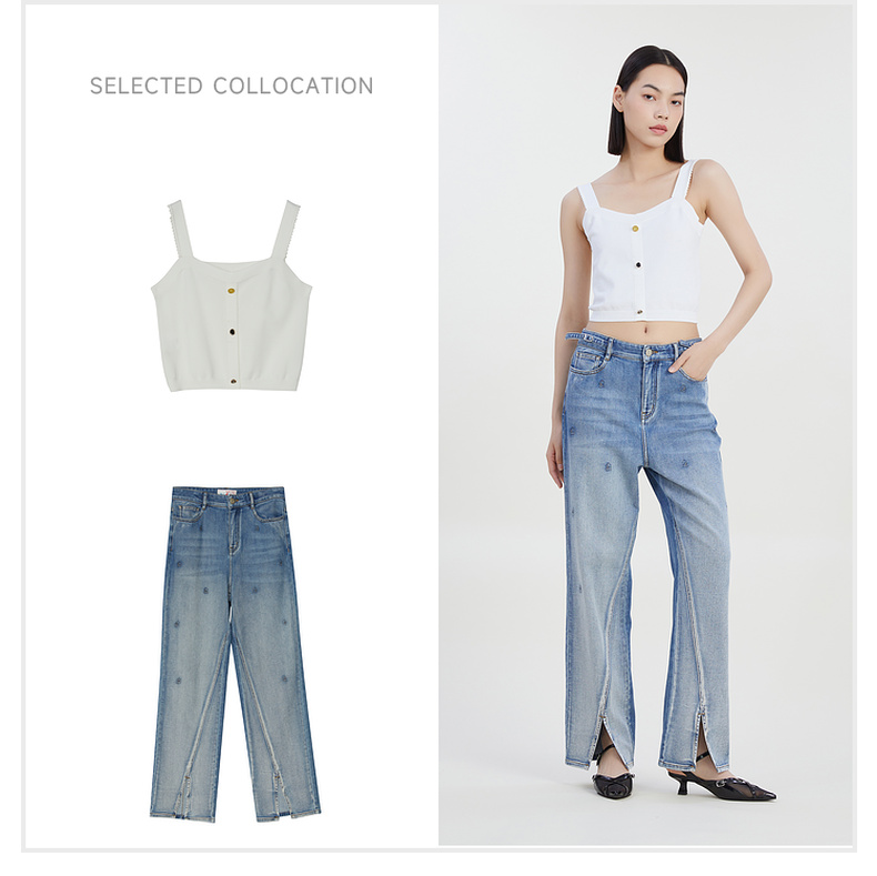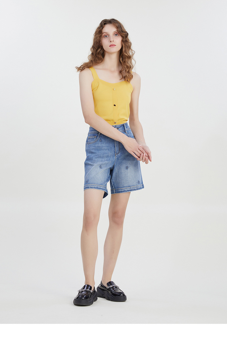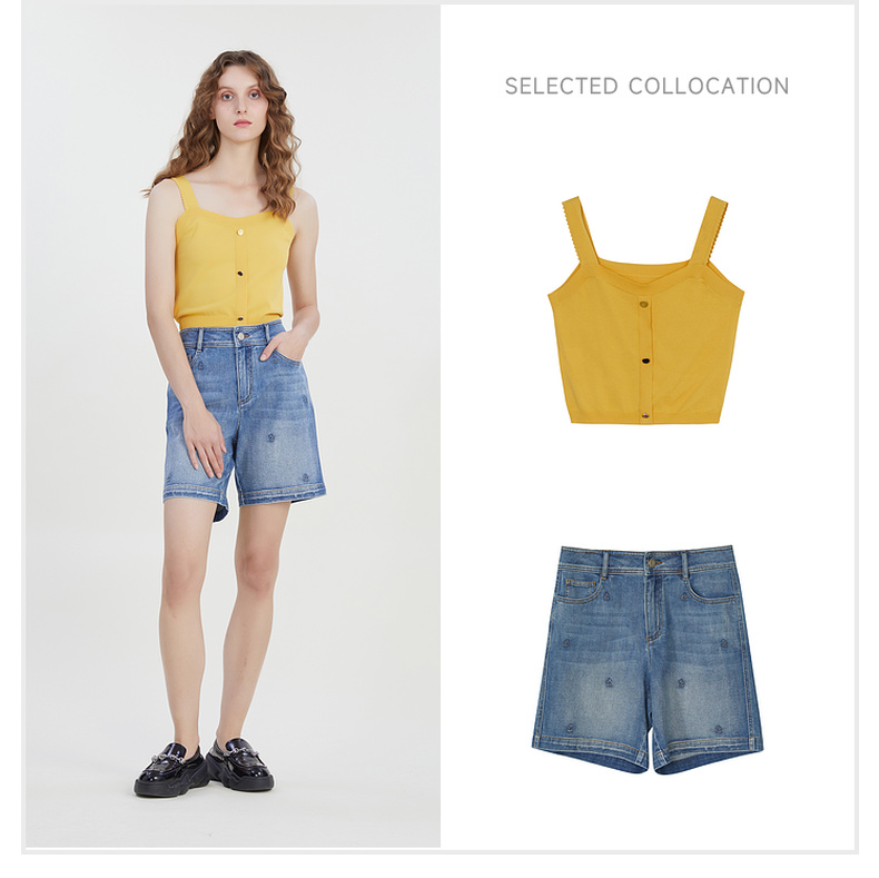 谜底2023夏新款针织衫背心女时尚百搭纯色吊带短款上衣232MZ0877