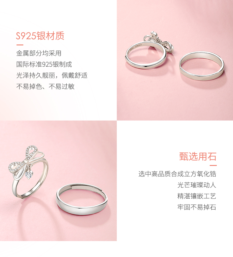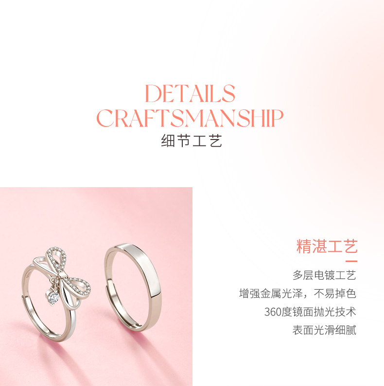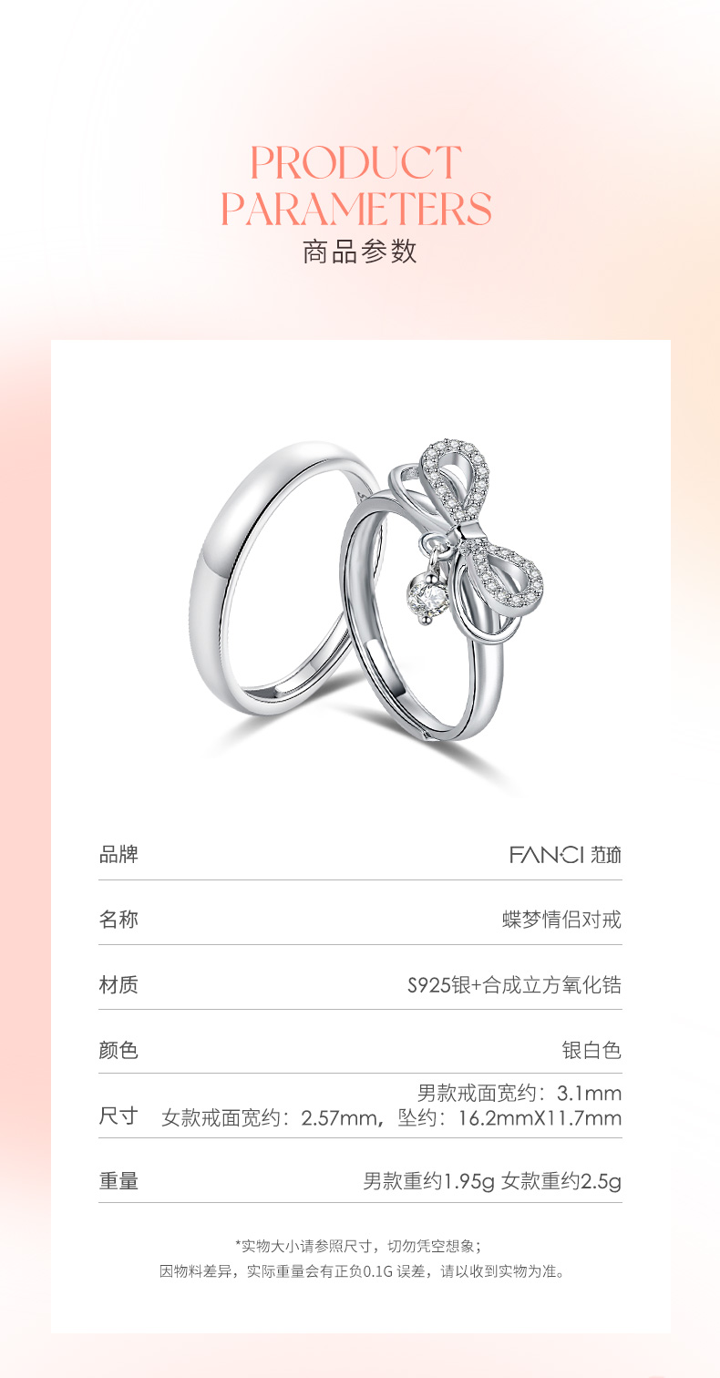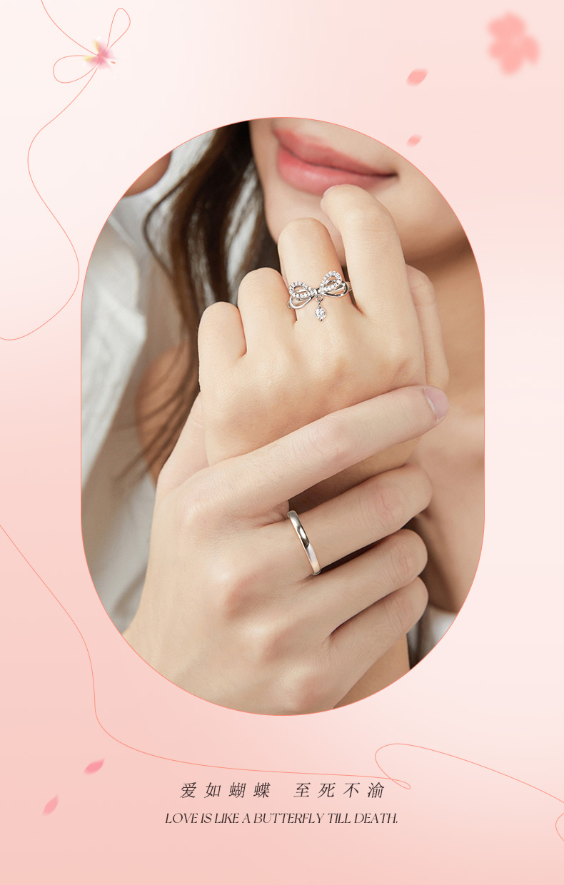 Fanci范琦紫藤花系列紫藤相惜戒指紫藤花对戒时尚纪念日送女友情侣礼物送男友