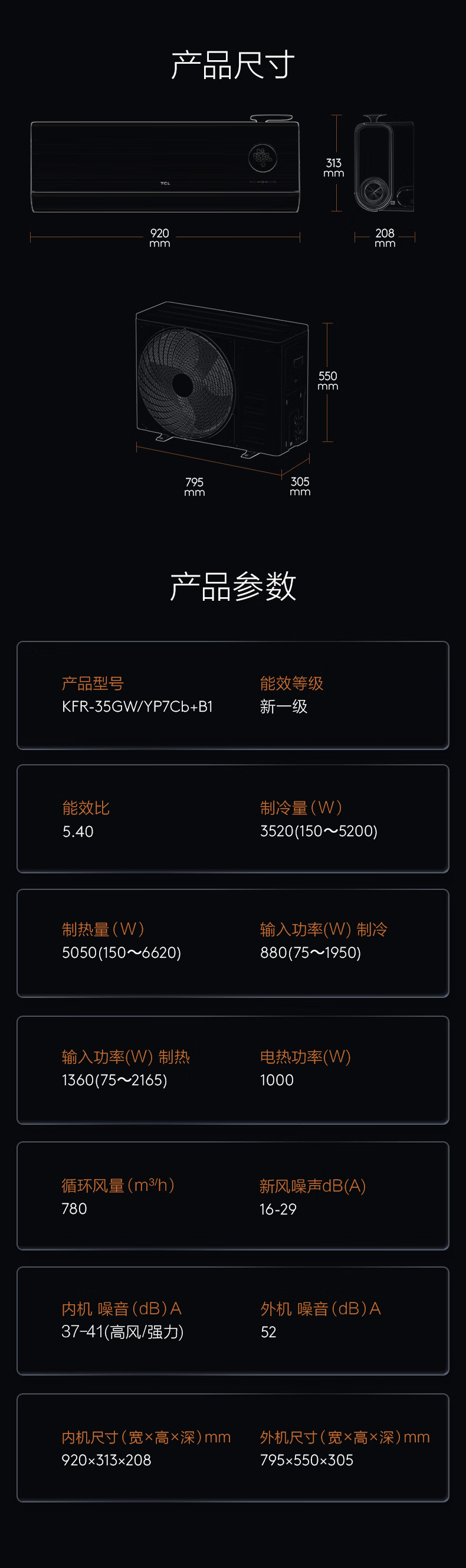 【国补15%】TCL新风空调KFR-35GW/YP7Cb+B1 新一级1.5匹冷暖语音30m³/h大新风量小蓝翼P7空调挂机