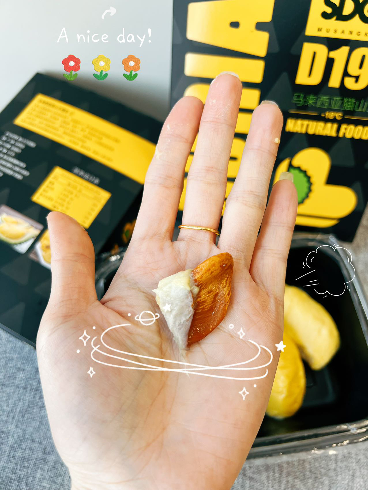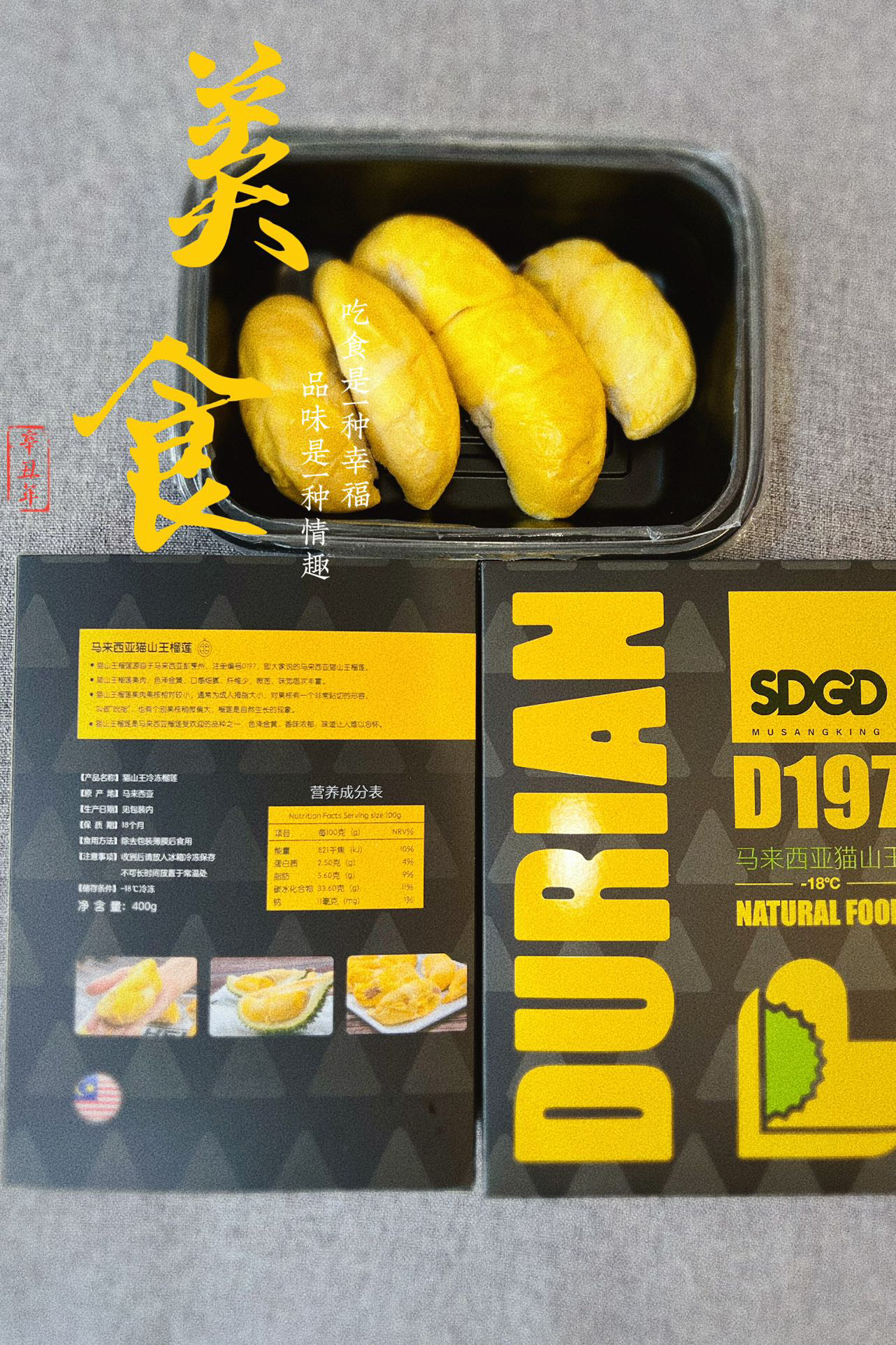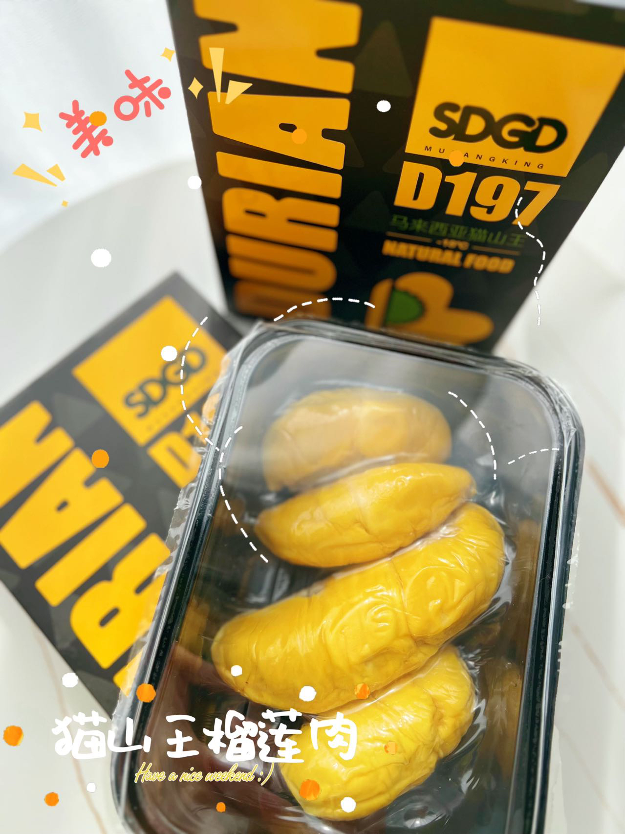 【猫山王榴莲肉外包装如下】