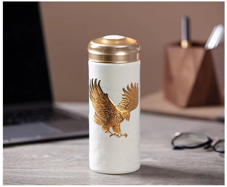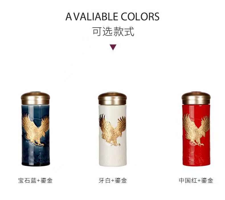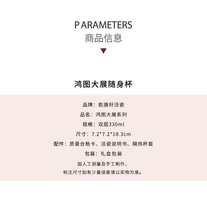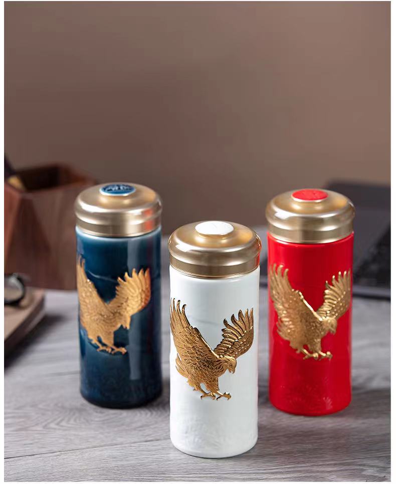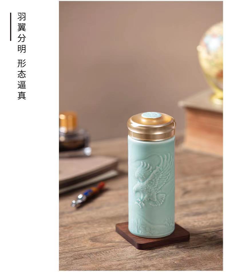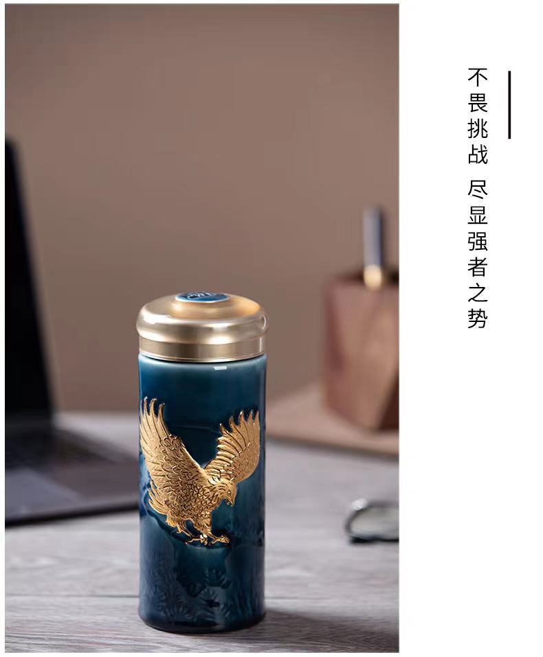 乾唐轩活瓷杯鸿图大展双层随身杯(宝石蓝描金330ML)