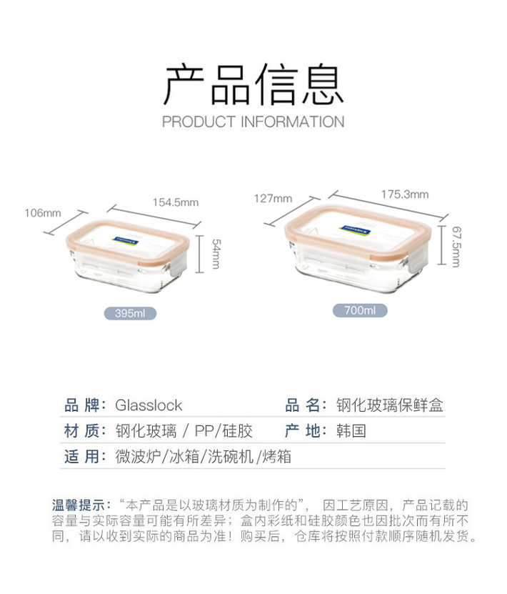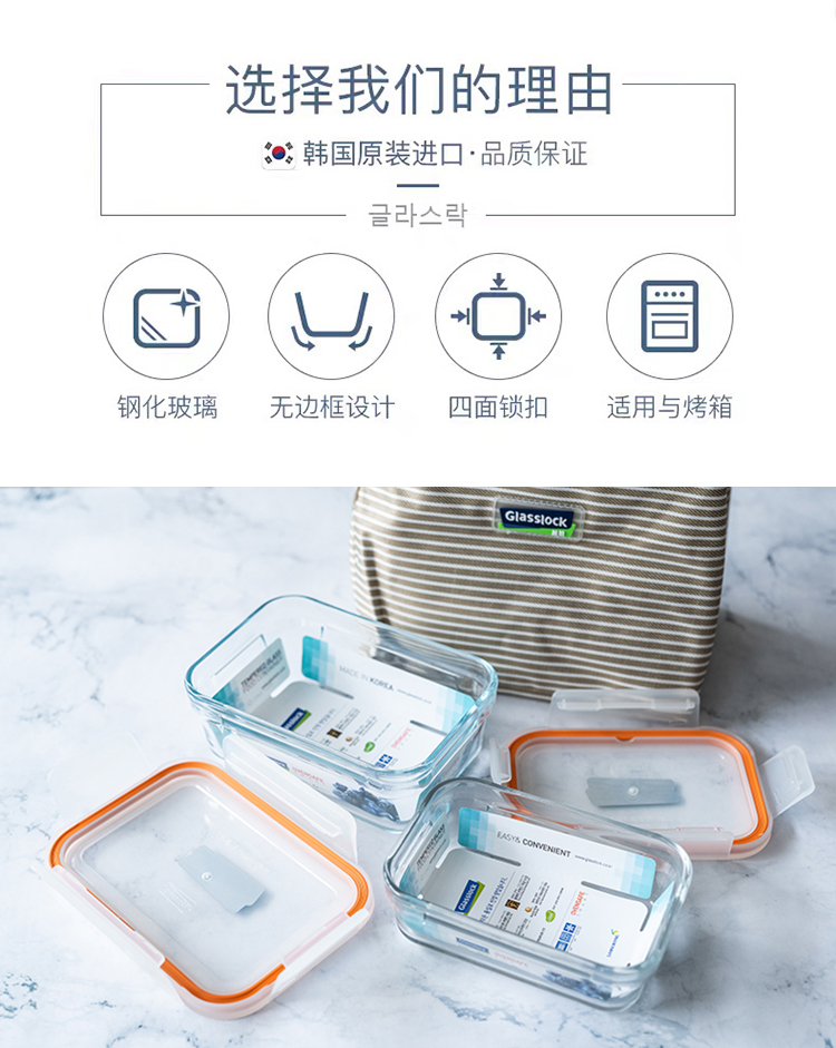glasslock韩国进口耐热钢化玻璃保鲜盒两件套(带包)