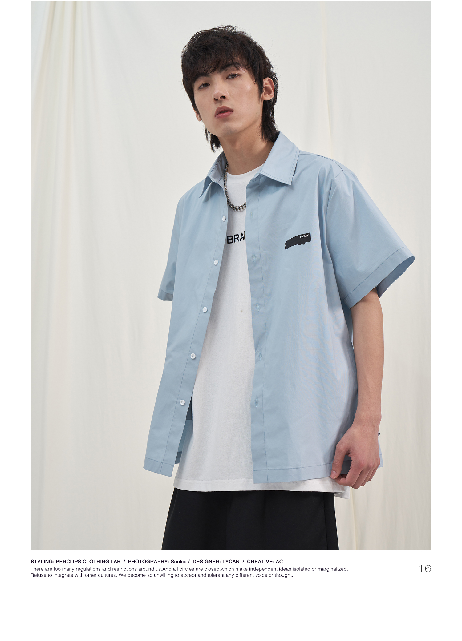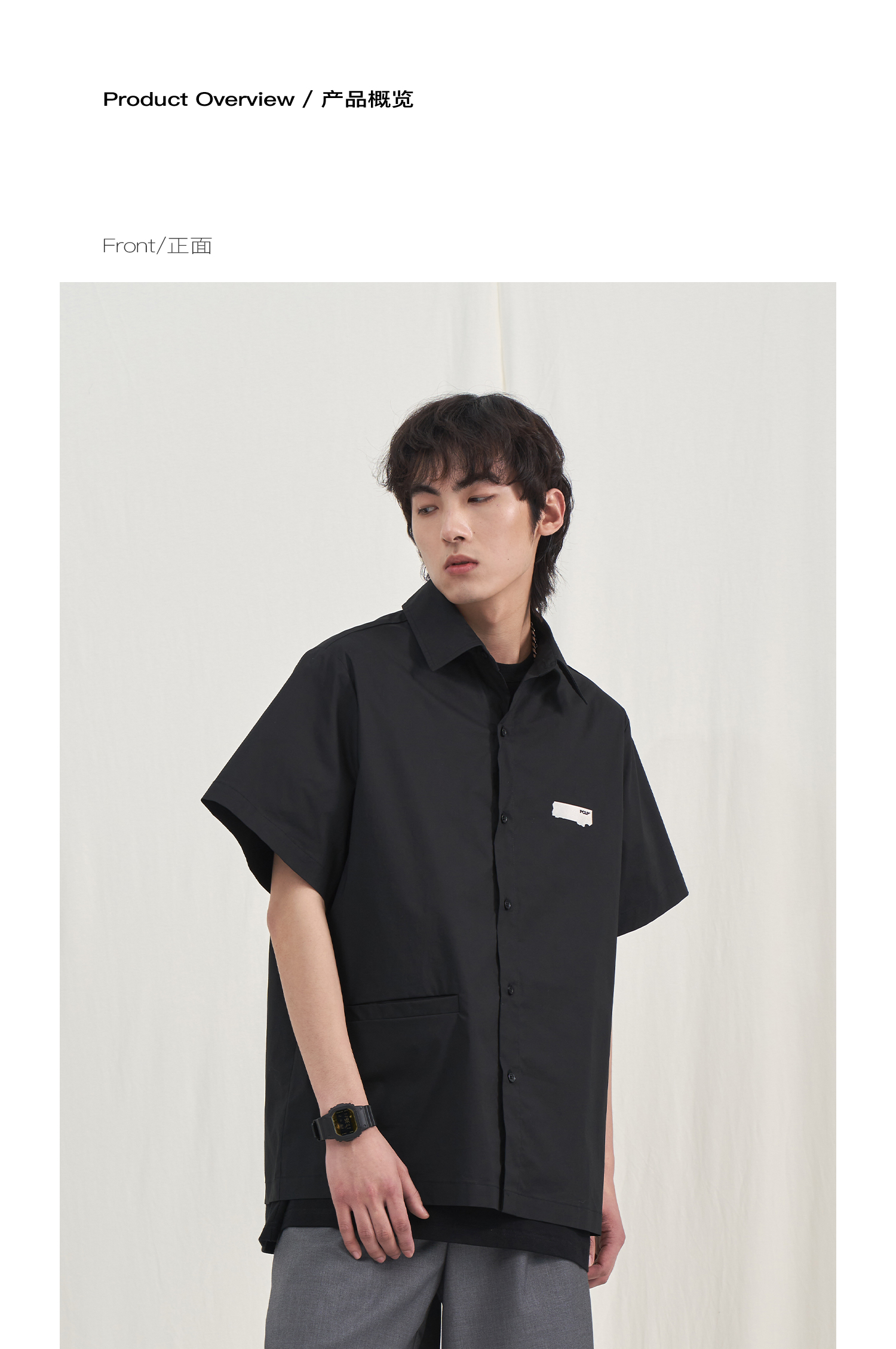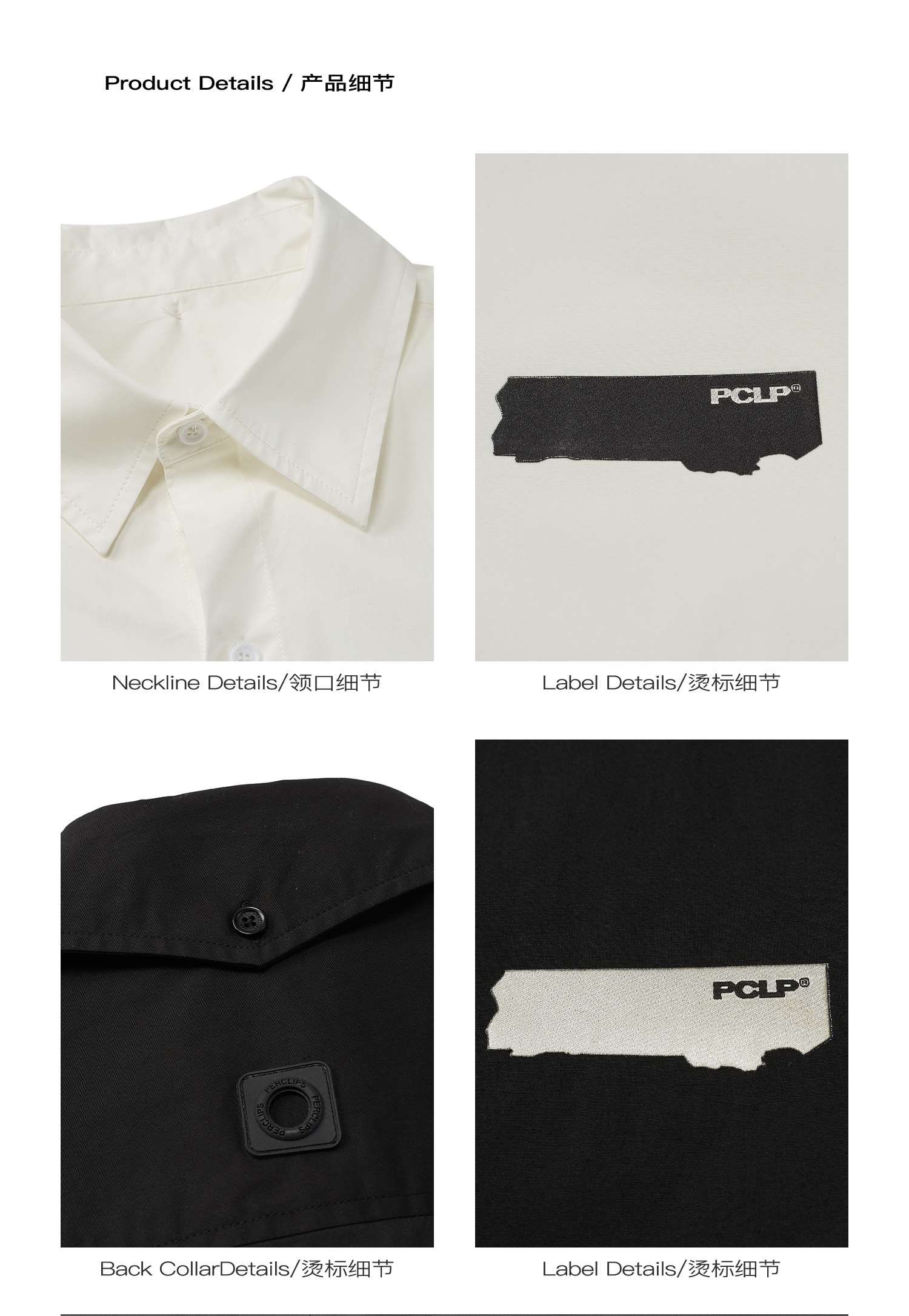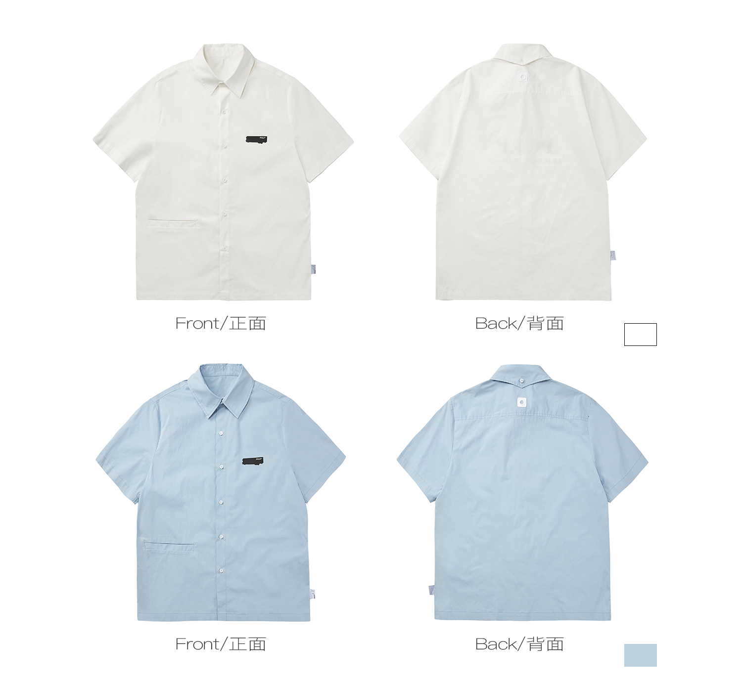 PCLP(PERCLIPS) 烫唛短袖衬衫 国潮牌休闲宽松纯色白色半袖衬衣男