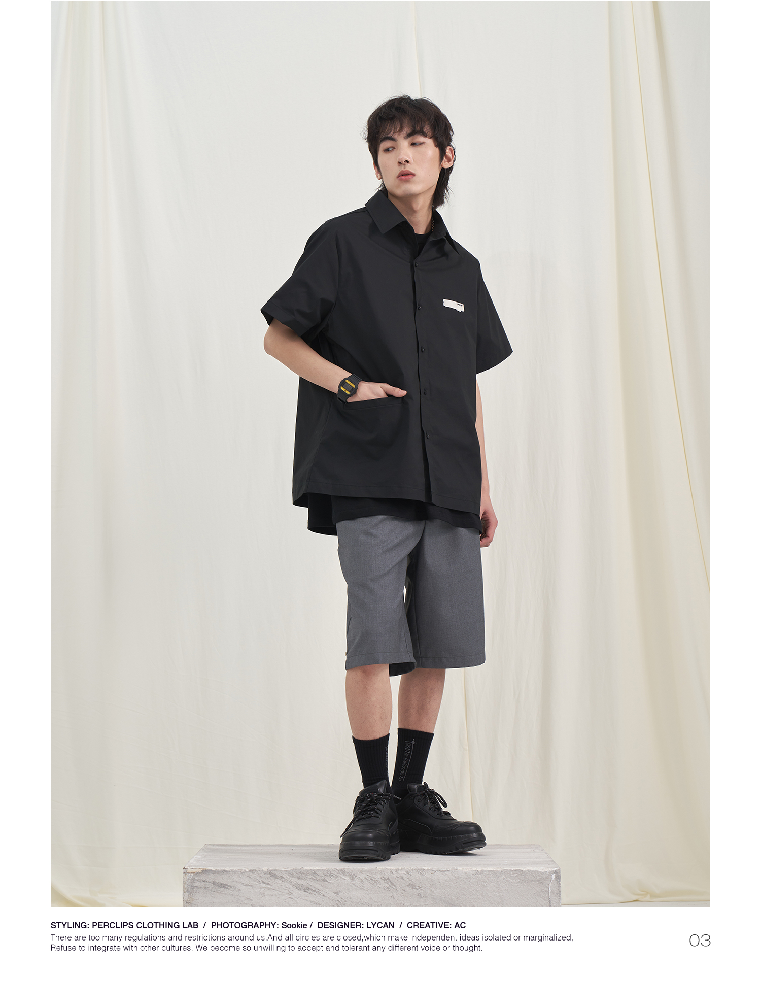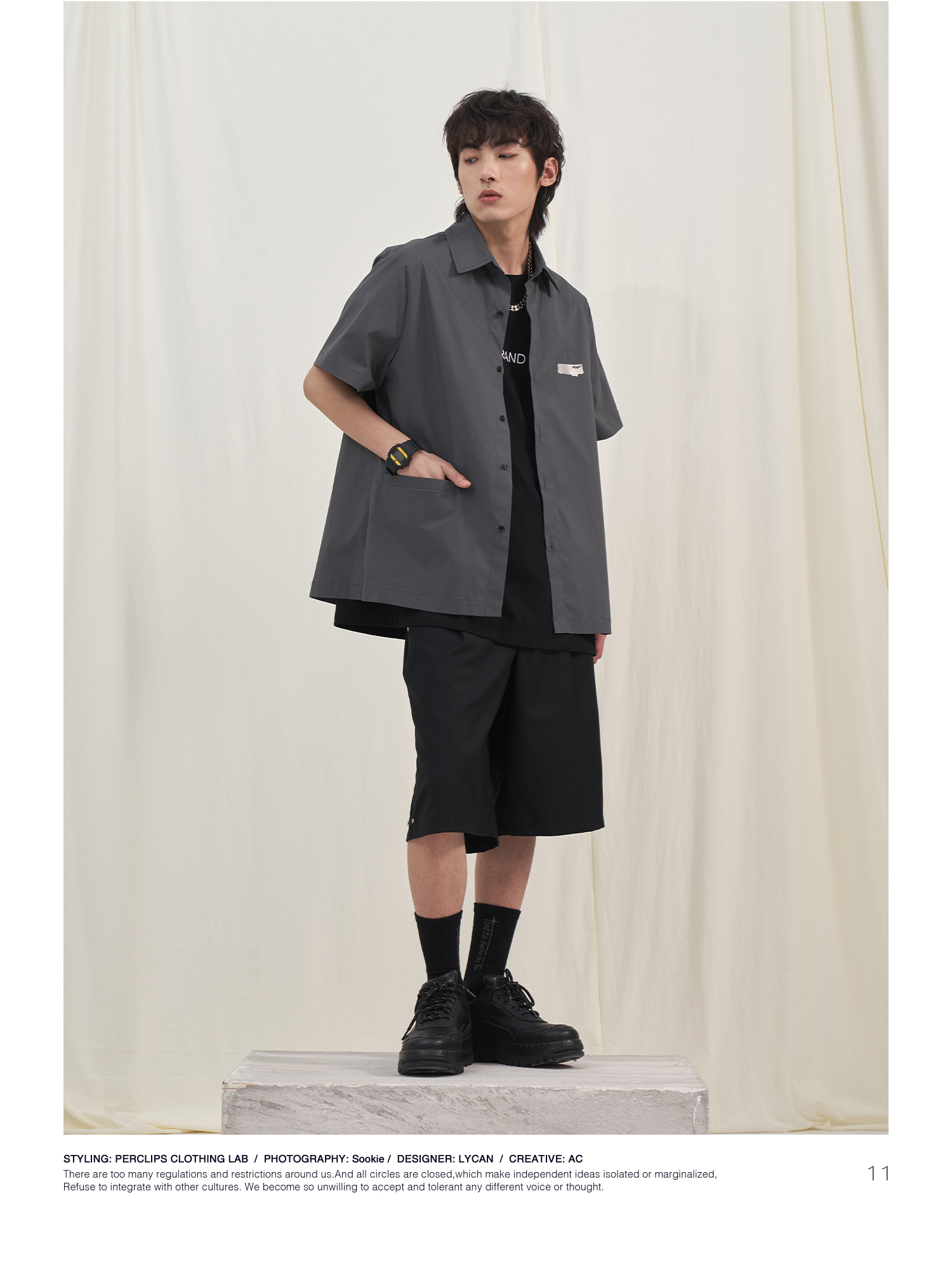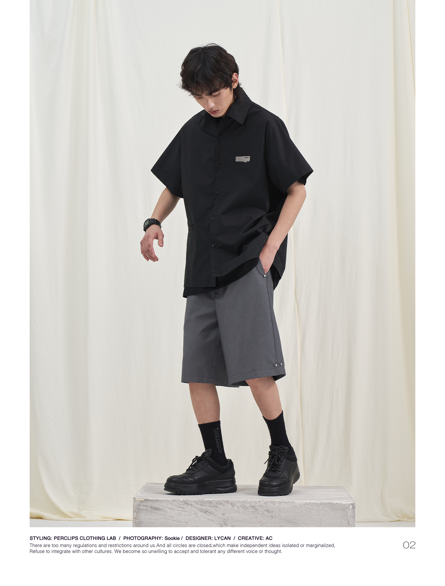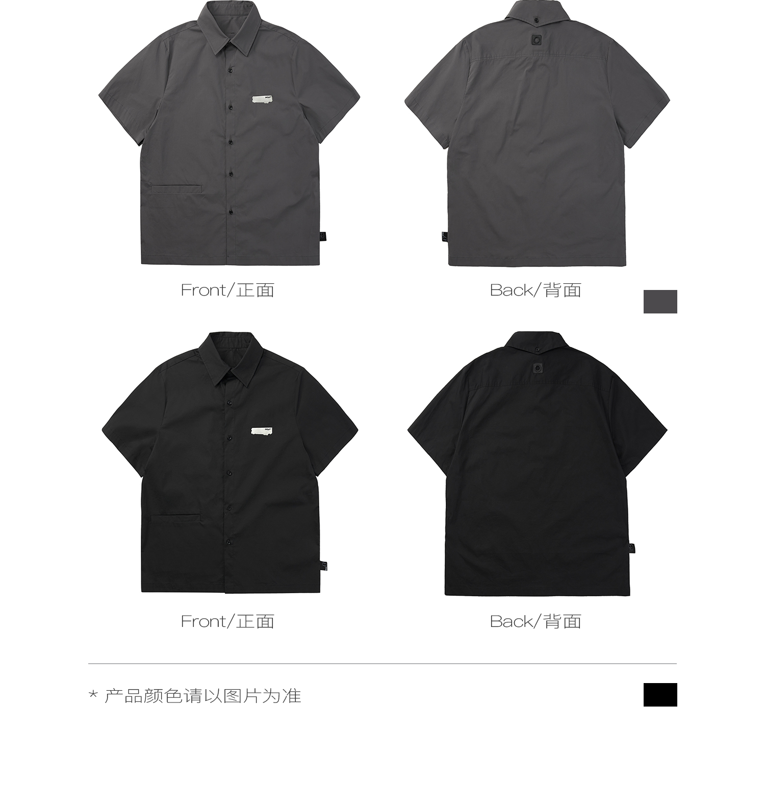 PCLP(PERCLIPS) 烫唛短袖衬衫 国潮牌休闲宽松纯色白色半袖衬衣男