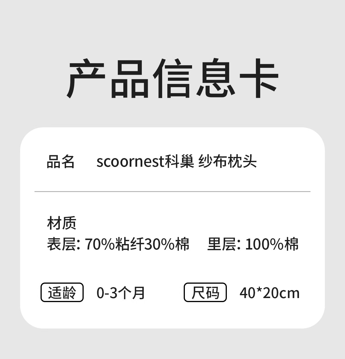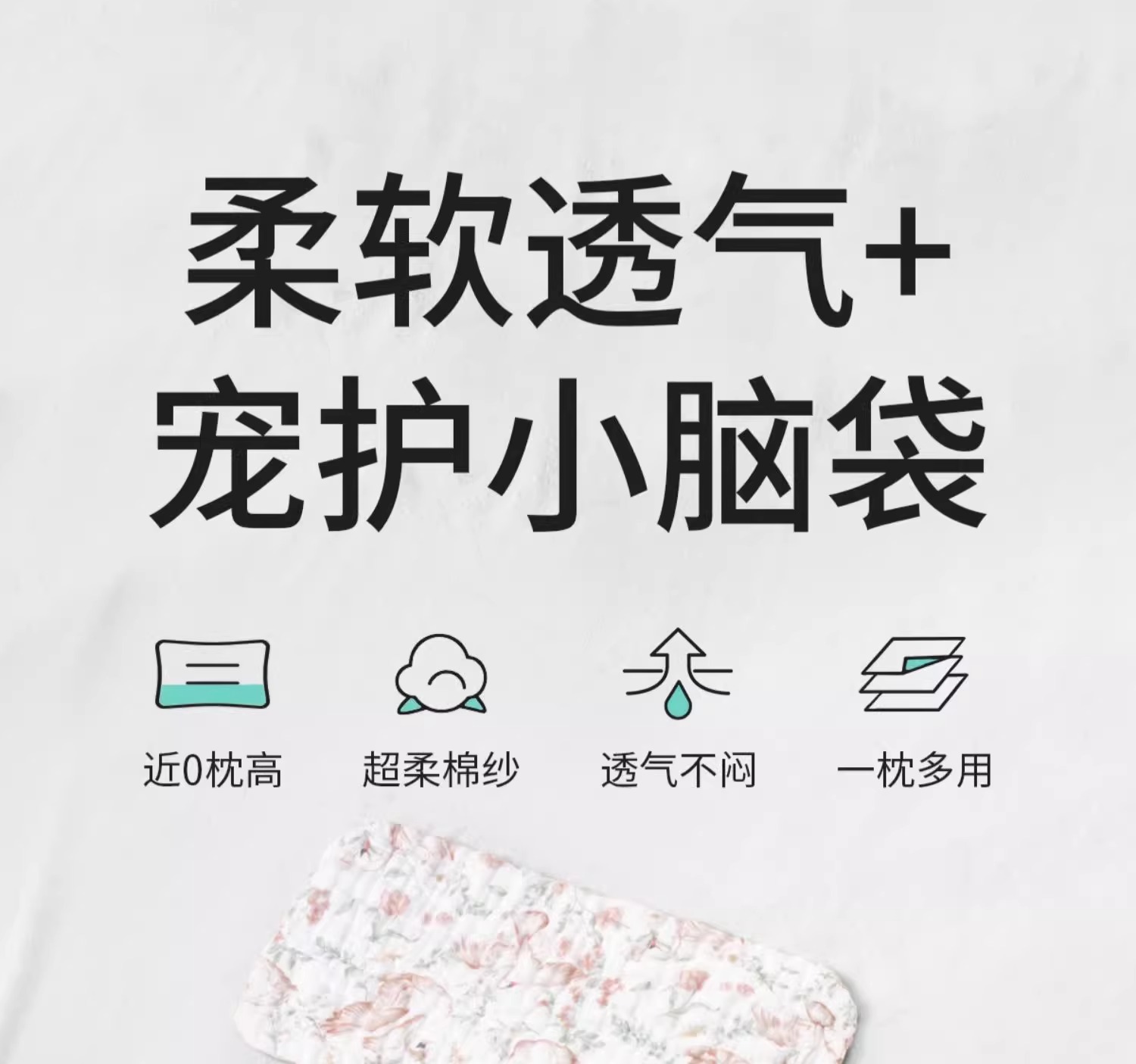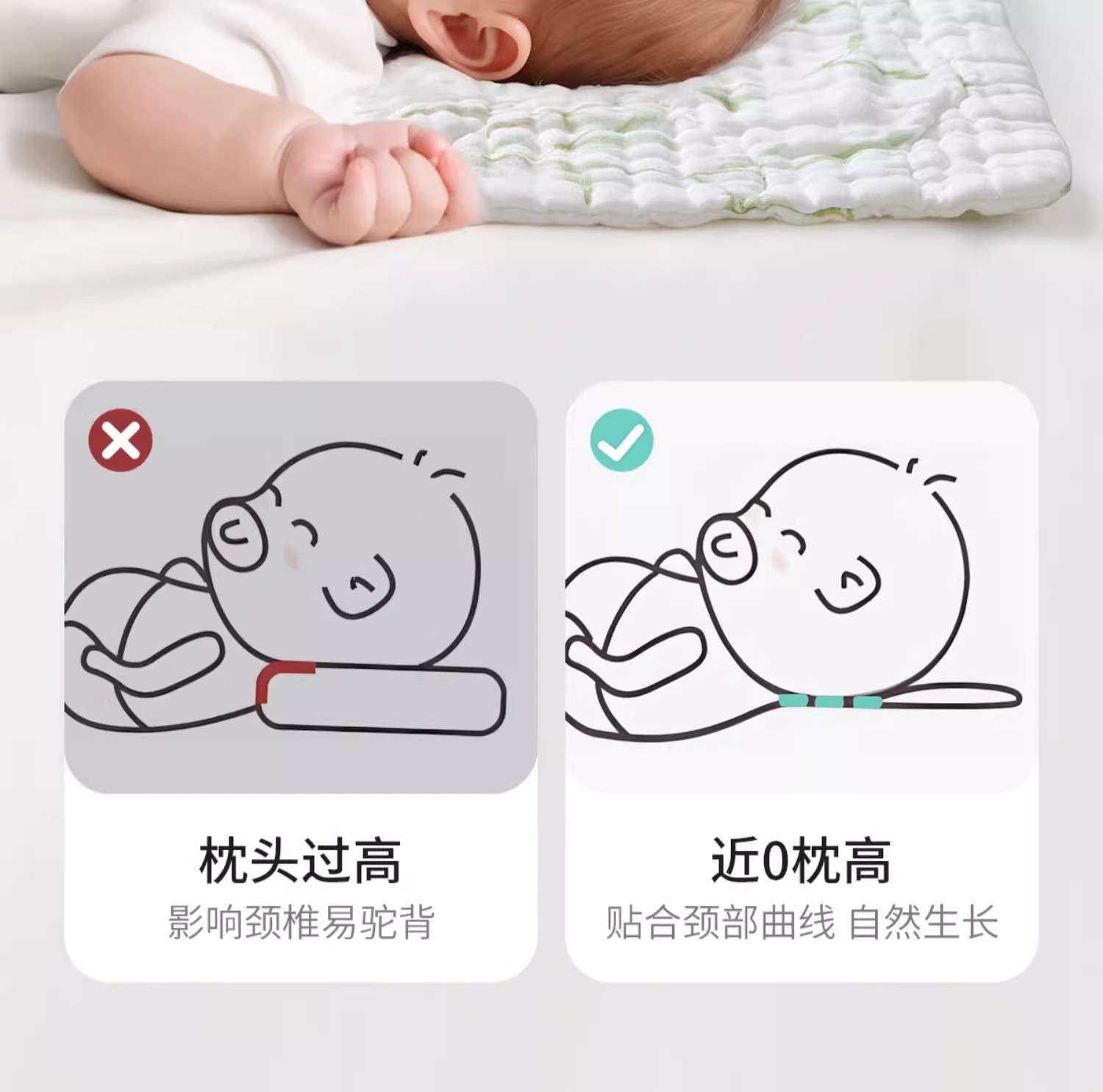 科巢新生儿云片枕头婴幼儿纱布透气吸汗四季宝宝枕头拍嗝巾0-3月