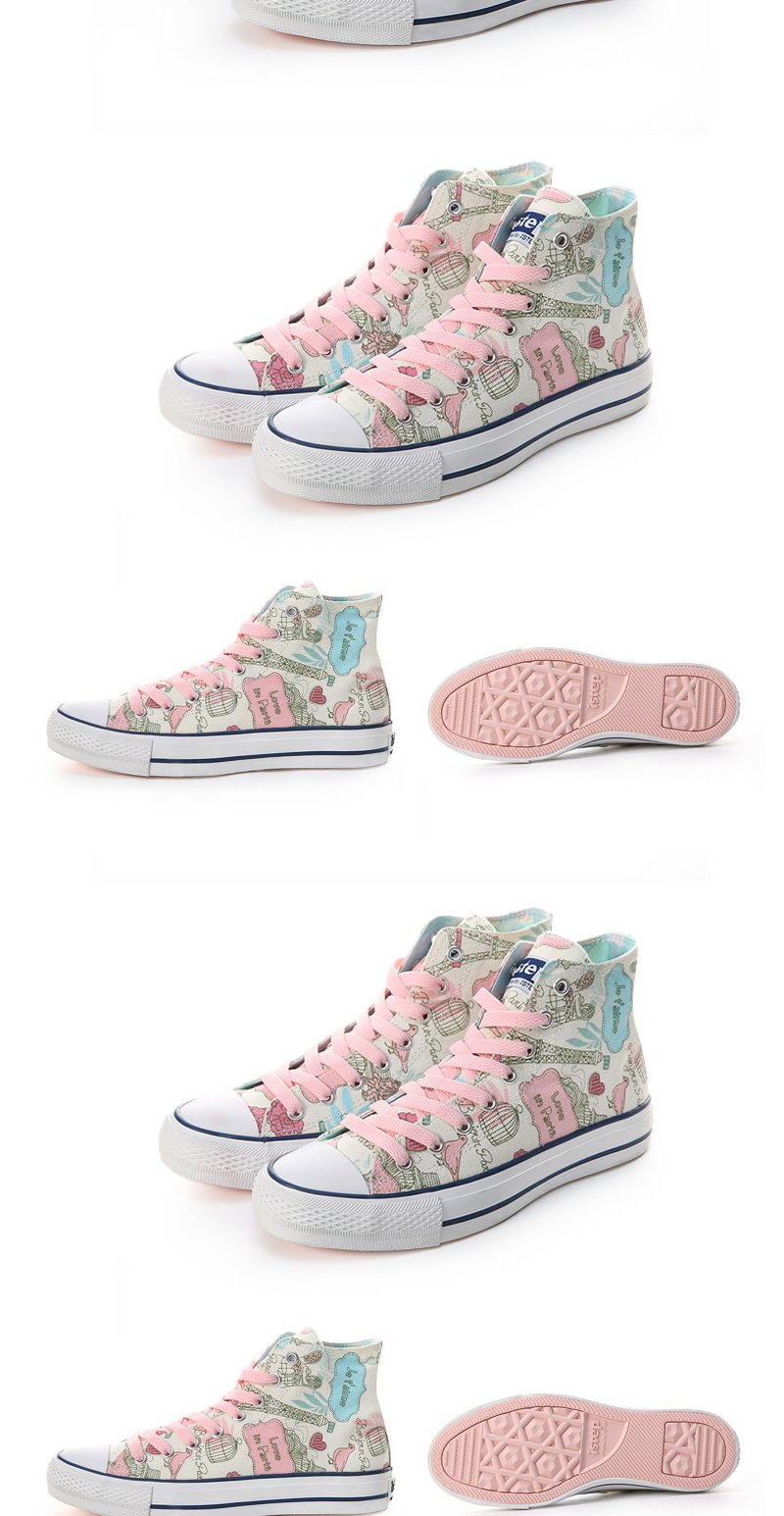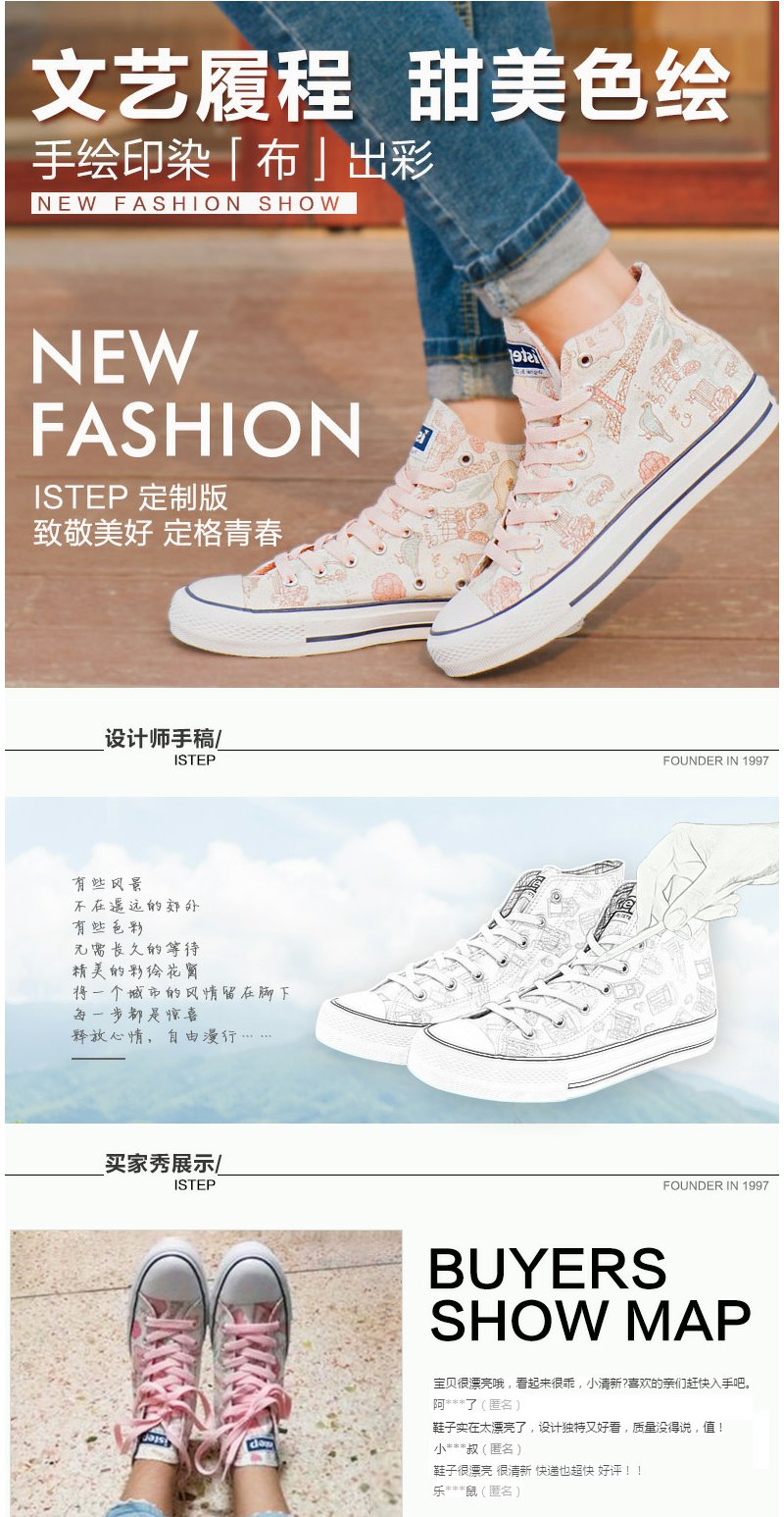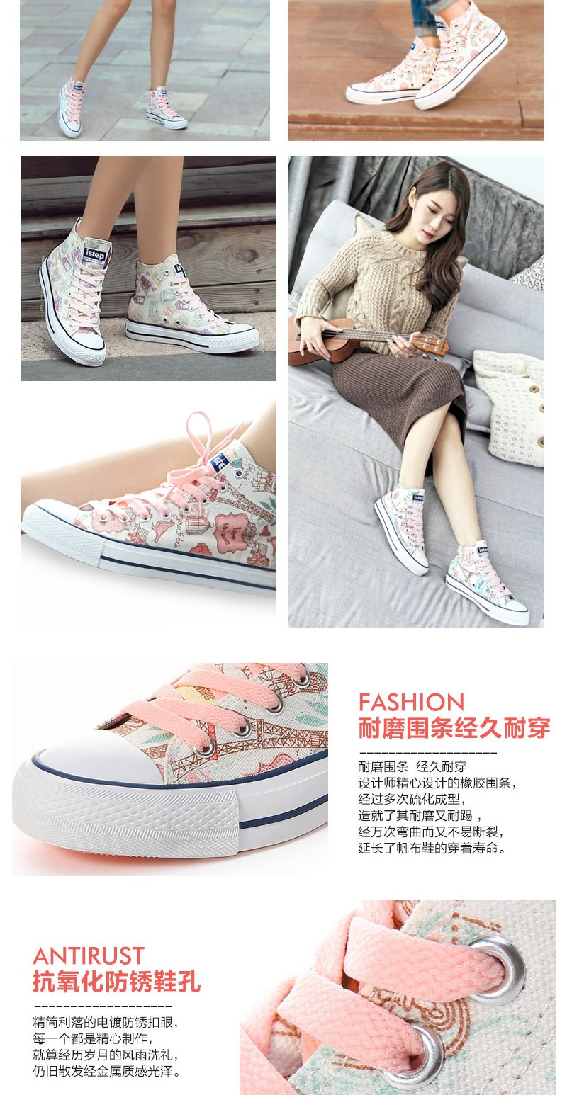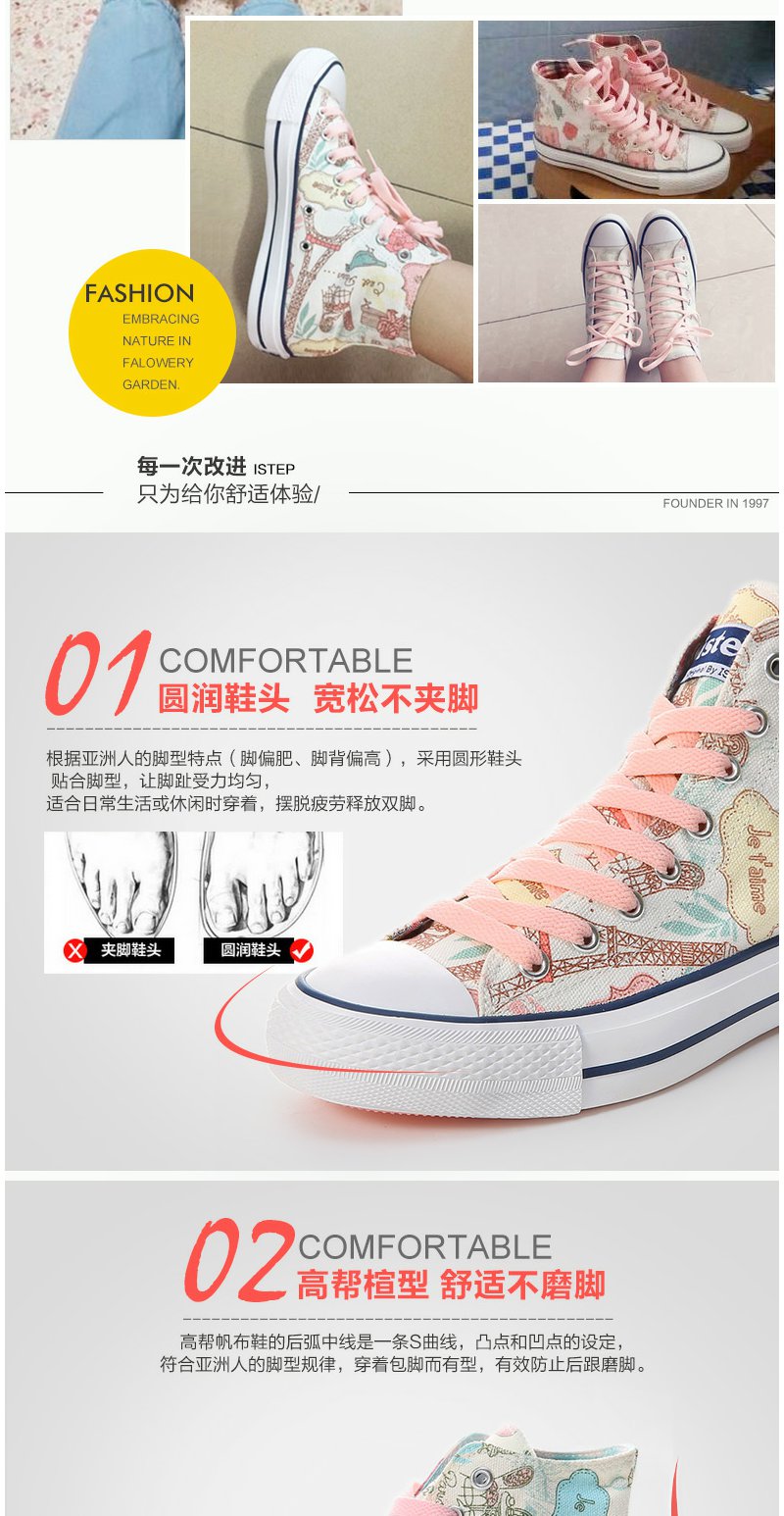 【正品】iSTEP涂鸦帆布鞋女秋季新款高帮隐形内增高原创手绘时尚休闲鞋女