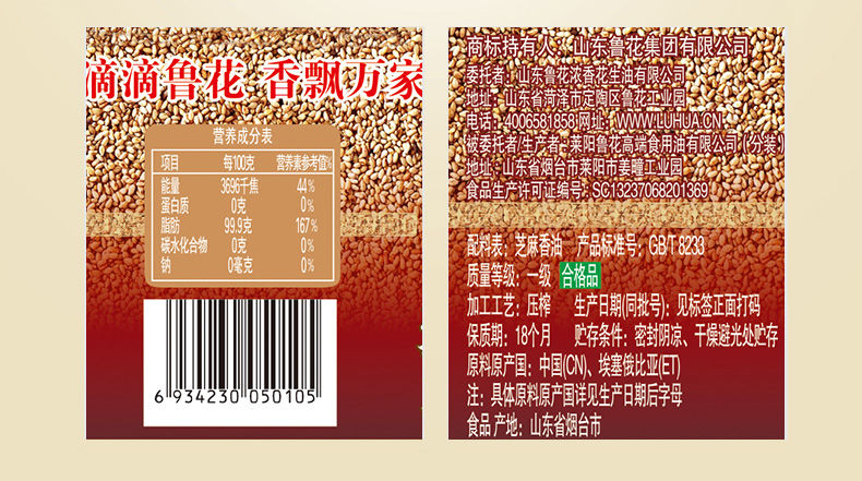 「两瓶装」新货鲁花芝麻香油180ml*2瓶 压榨麻油小瓶食用油凉拌菜调味粮油米面