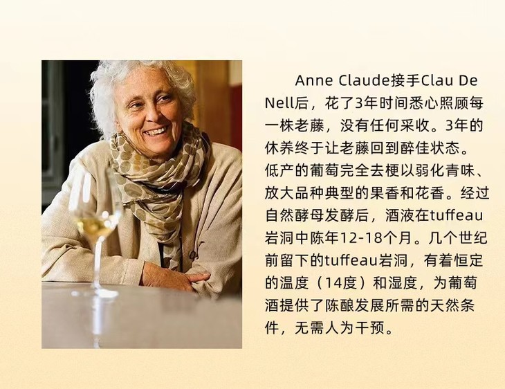 Claire Leflaive ,她出生于1992年,是Anne-Claude Leflaive和Christian Jacques最小的女儿。这个土生土长的年轻勃良第姑娘,在22岁那一年投身进入了与她的母亲相同的事业Claire对葡萄酒世界最大的热情和动力,源自于她被誉为世界级最佳白葡萄酒酿酒师的Anne-Claude Leflaive。经过系统的学习,Claire辗转于世界各地的优秀酒庄工作,专注于生物动力法和有机实践。如今,Claire回来接手了母亲留给她的Clau de Nell,致力于在卢瓦尔河谷这片充满个性、令人着迷的土地上,用她的双手续写出属于她的家族传奇。