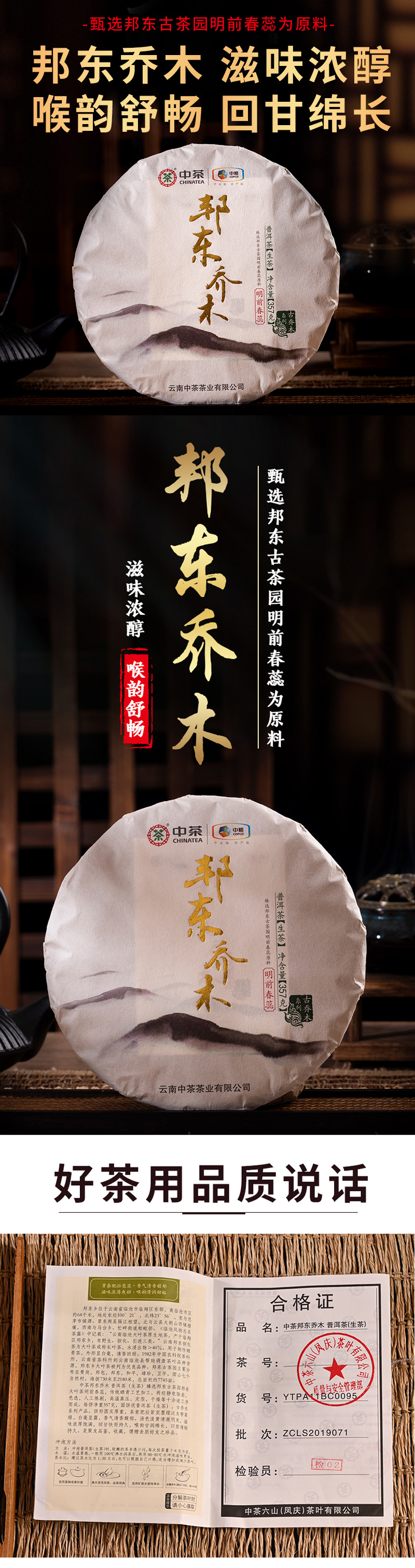 中粮-中茶2019年(生茶)邦东乔木普洱茶生茶 357g/饼 /云南干仓直发