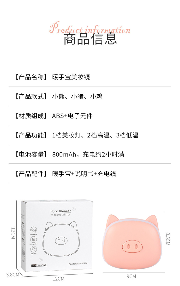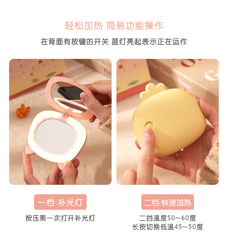 【萌宠在手,心安如镜】萌趣可爱“小仙女”暖手宝,一个化妆镜,一个暖手宝。补光明亮,加热保暖。三款造型可选,小巧便携,随时随地,温暖你的冬日!