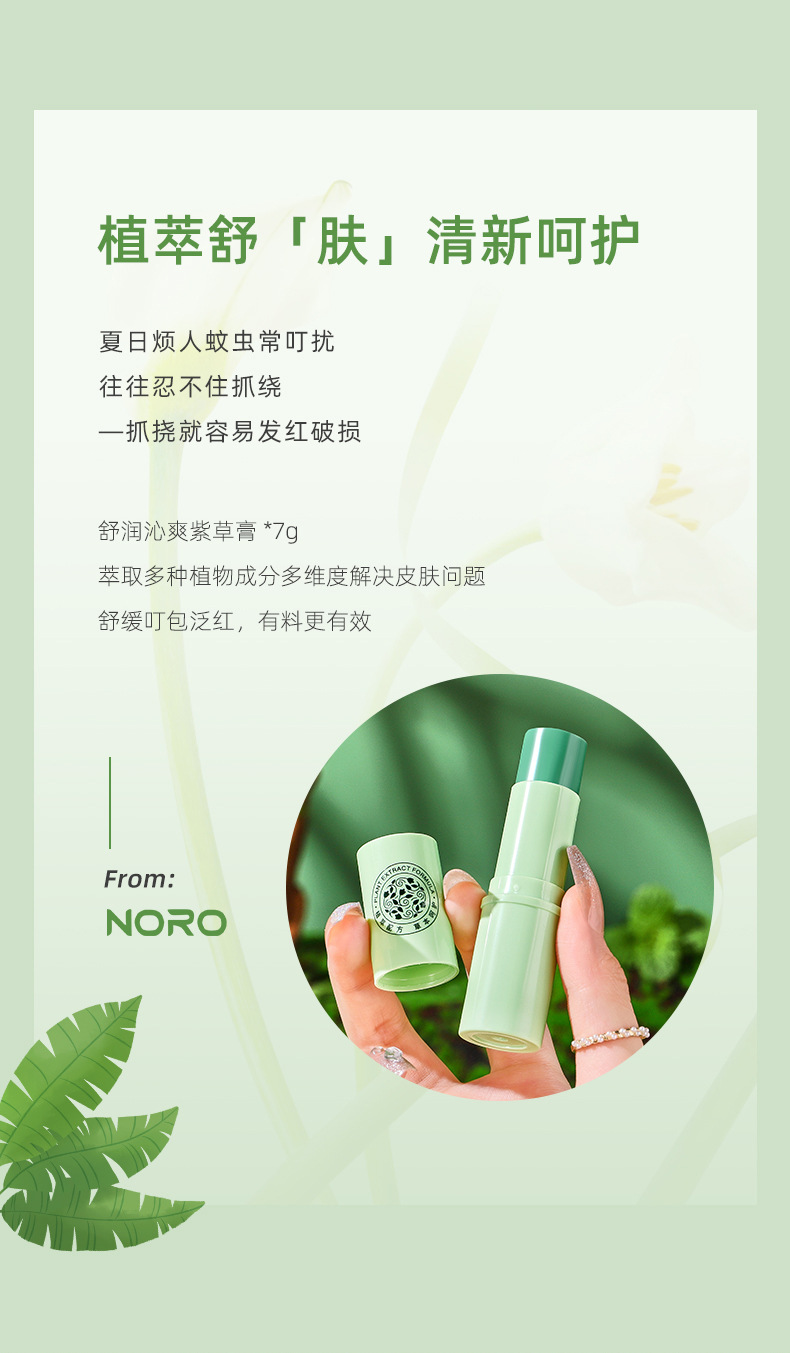 【第二件0元】夏天来了,蚊虫叮咬常有,不用担心!NORO舒爽紫草膏清凉舒缓,便携式7g,外出旅行必备!结合本草紫草的K菌功效,让宝宝远离蚊虫叮咬的烦恼!
