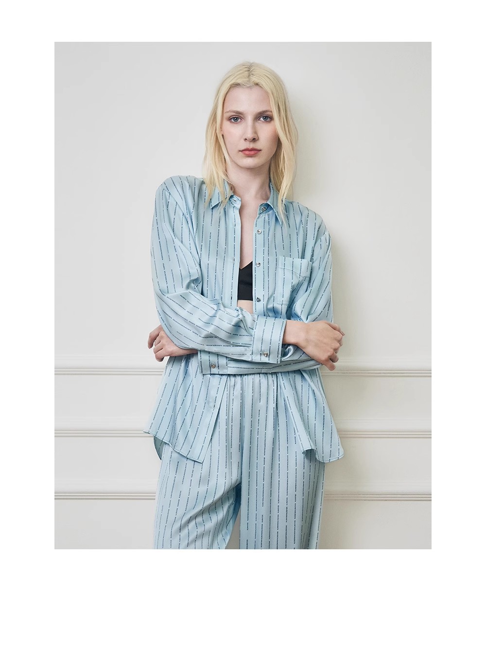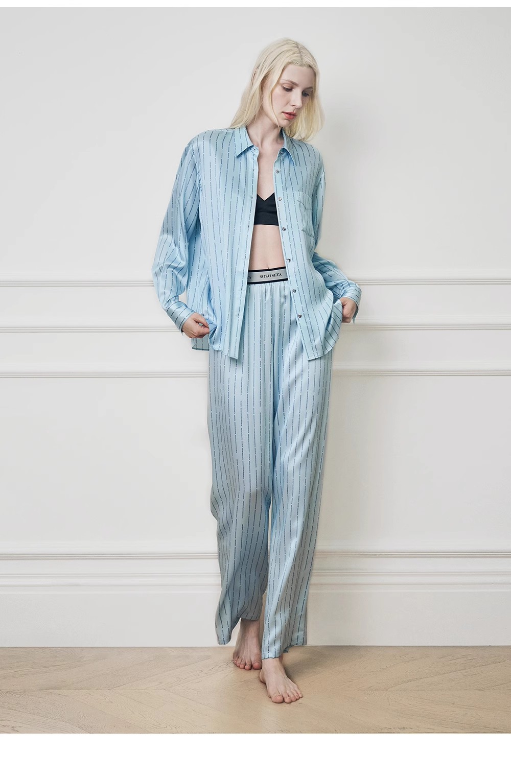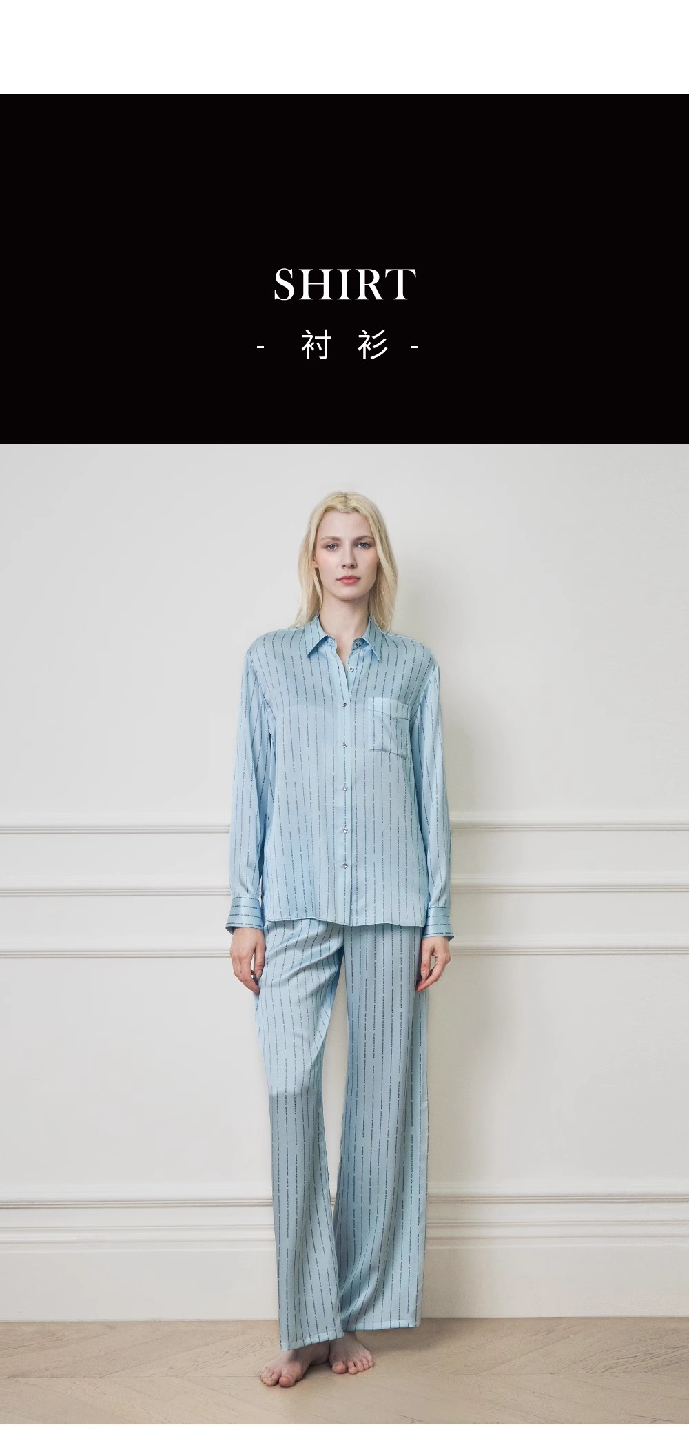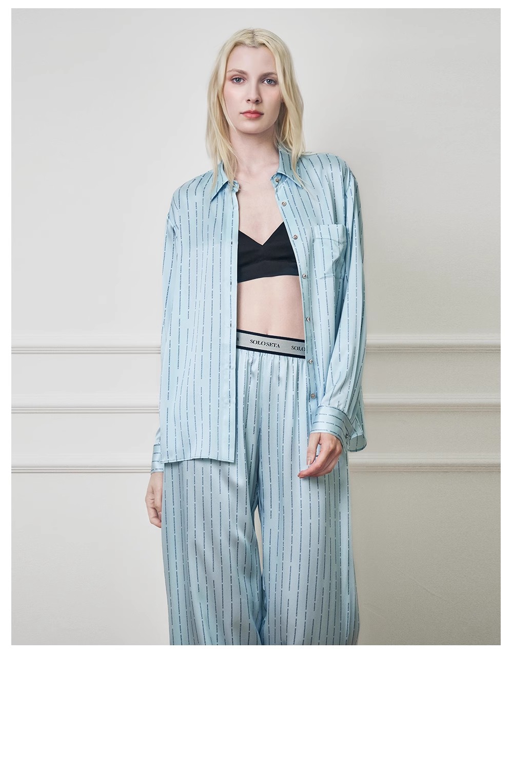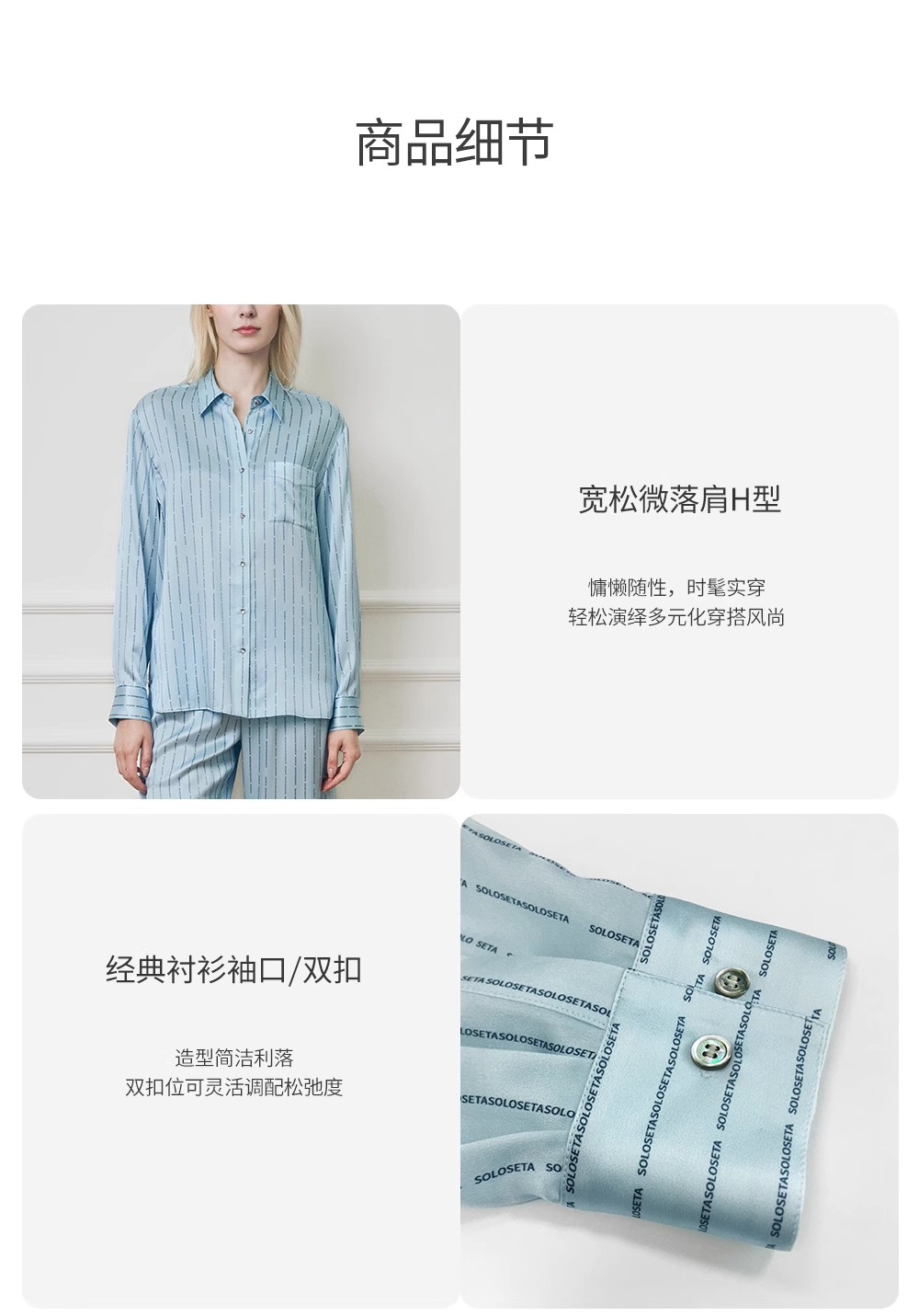 Solo seta22姆米女士真丝睡衣桑蚕丝印花衬衫长裤2025丝绸秋新款