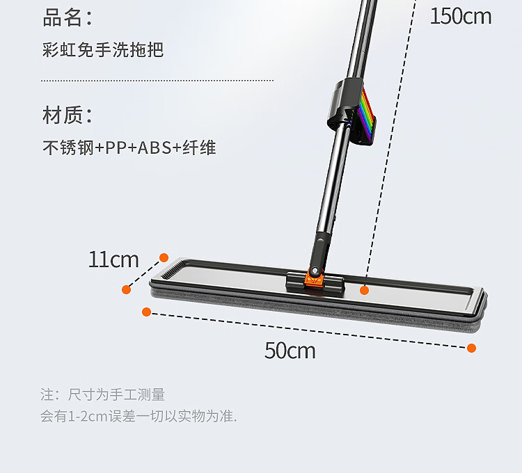 佳帮手 平板拖把 扫除道二代彩虹塑板免手洗平拖50-灰橙4布JBS-PBTB-CHJ150-GOG4P