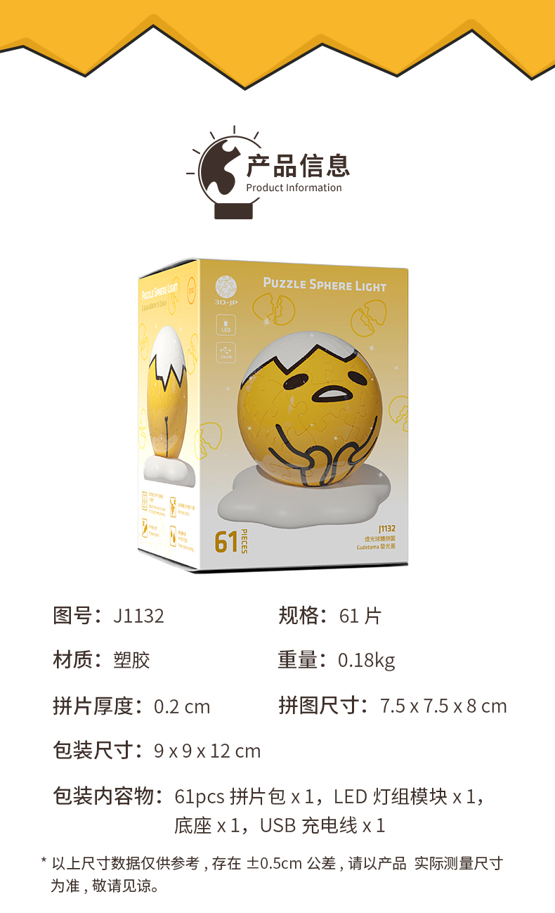 3寸61片 灯光球拼图 J1132 Gudetama 发光蛋