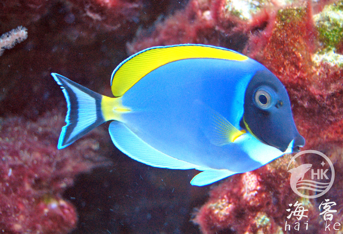 也叫粉吊。卵圆形的身体,颜色对比鲜明。以鲜明的色彩而备受欢迎。背鳍及胸鳍是鲜亮的黄色,头部及尾部呈现黑蓝色。