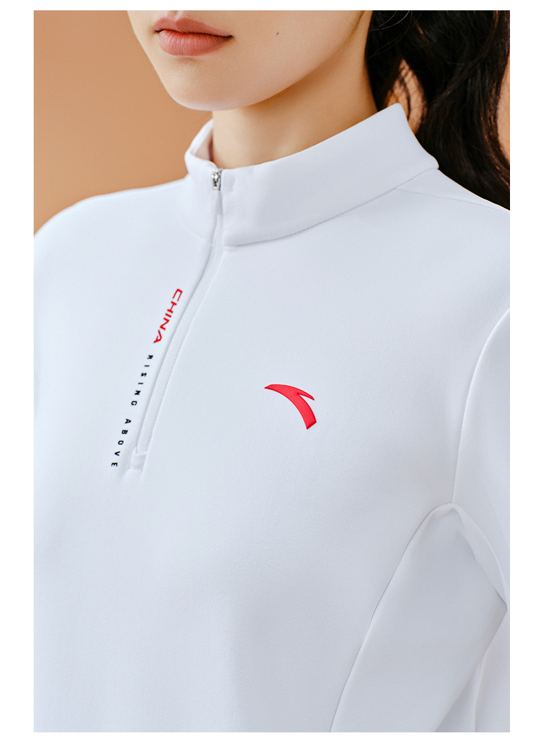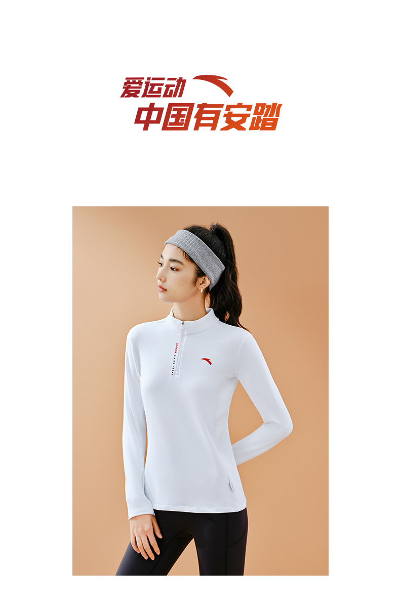 安踏空气麦芬T | 秋季女薄绒半拉链正肩修身长袖针织衫162547406