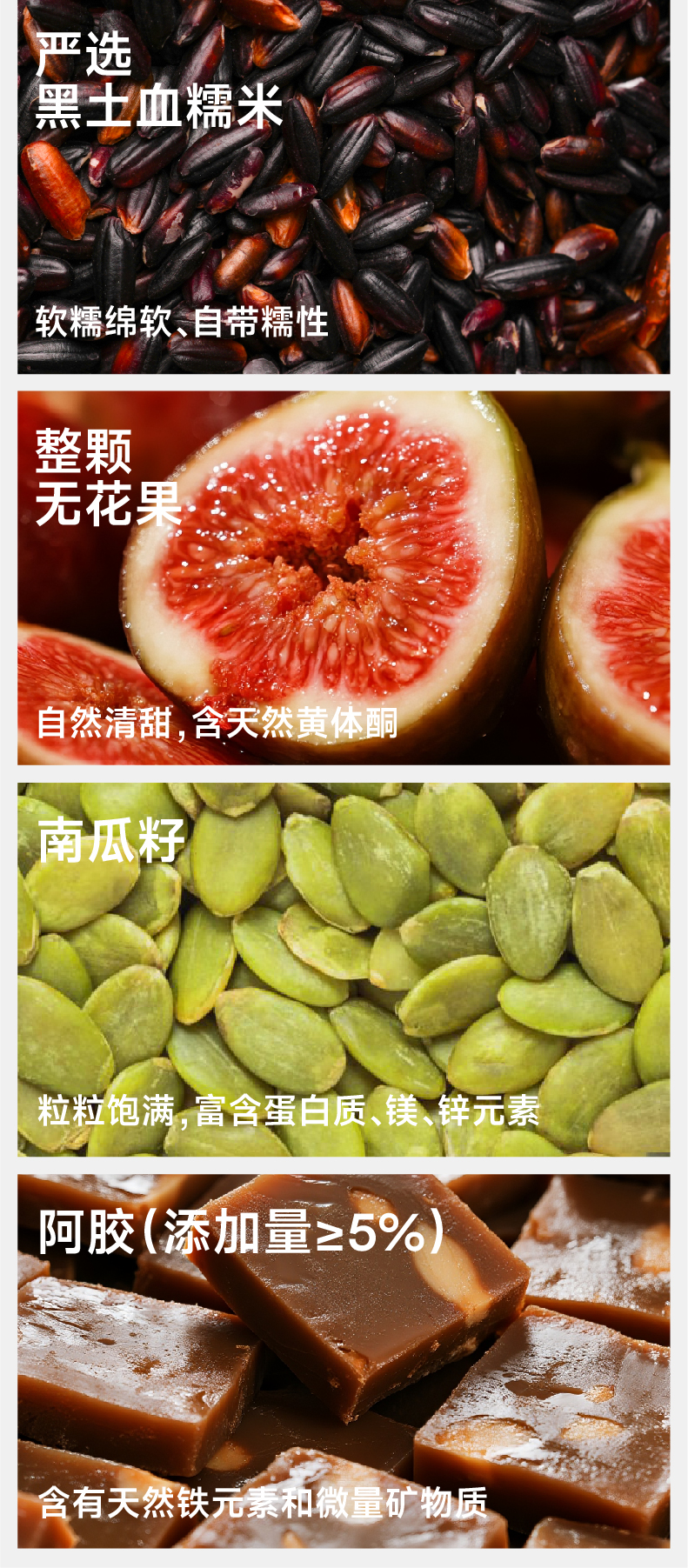 主要是血糯米、无花果、南瓜籽和阿胶等做成的